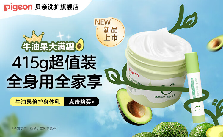 贝亲大绿罐牛油果保湿霜 身体乳 大白罐 婴儿宝宝儿童润肤乳 【升级款】保湿舒缓415g