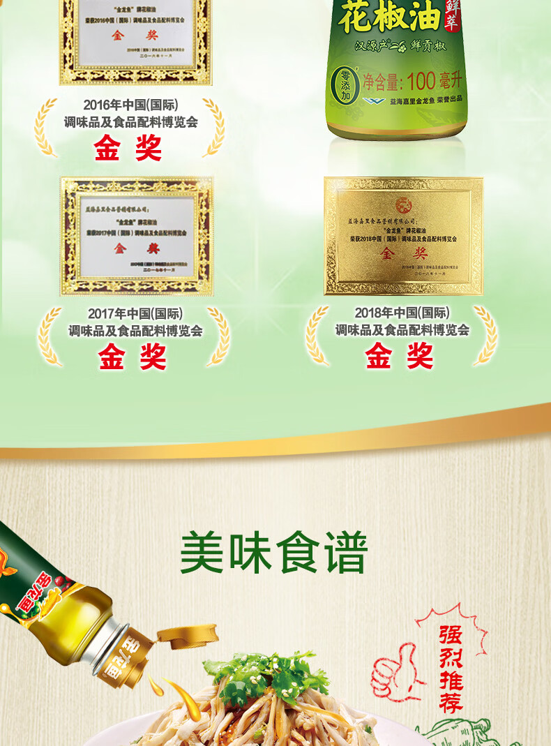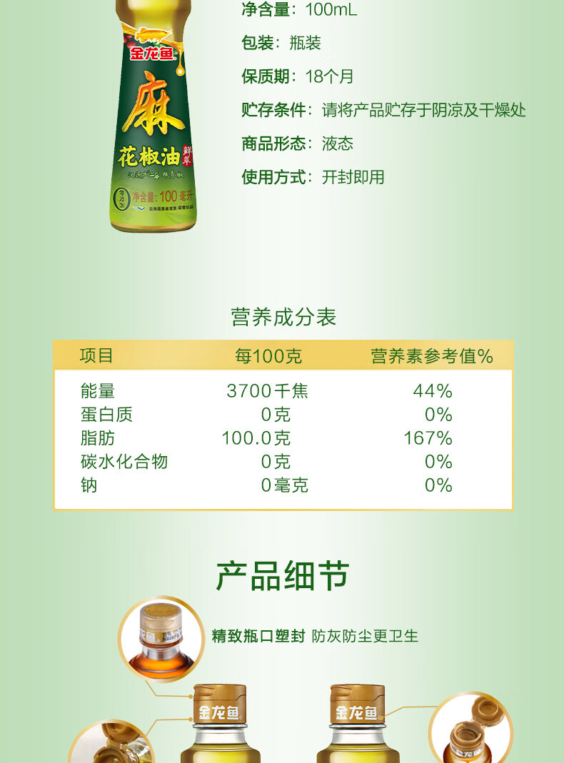 金龙鱼花椒油100ml青花椒 麻椒油 麻油 香油 米线 麻辣烫 火锅 调味油