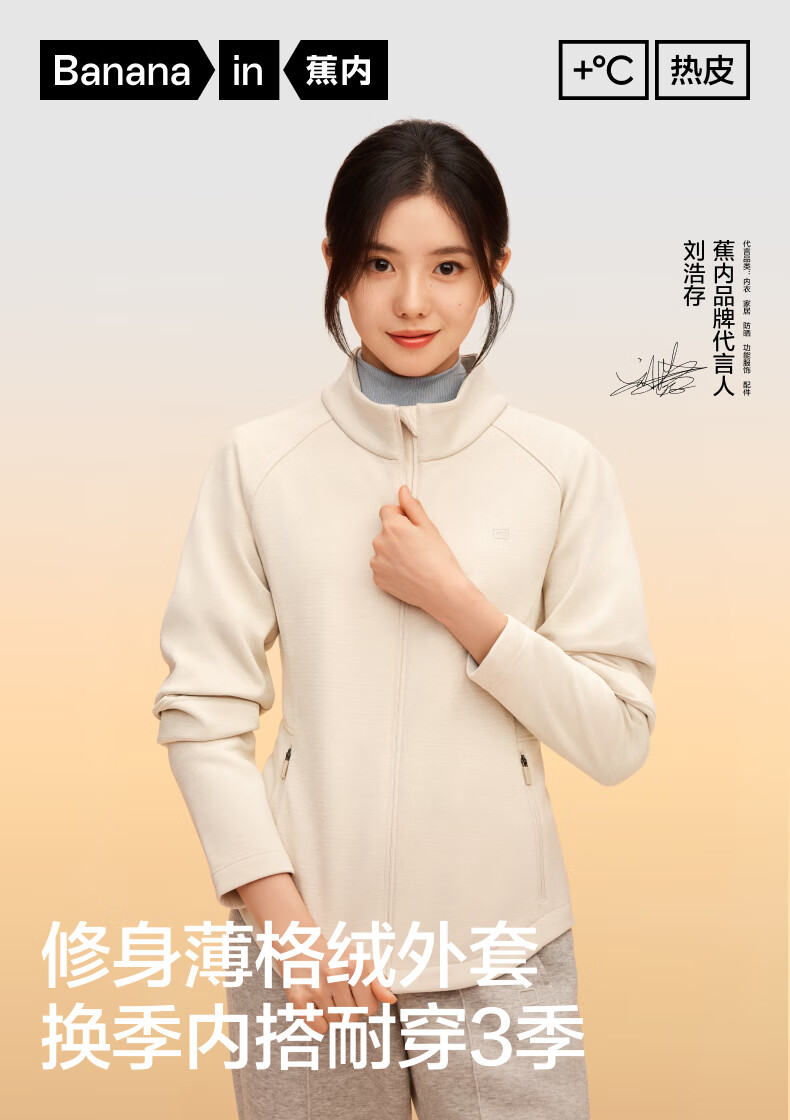 蕉内【刘浩存同款】热皮301+女士立领修身机能外套运动户外上衣秋装新