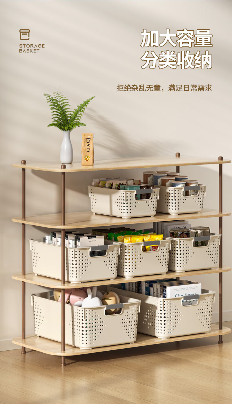 金隆兴桌面收纳盒零食杂物收纳筐玩具文件整理收纳箱厨房浴室收纳篮中号