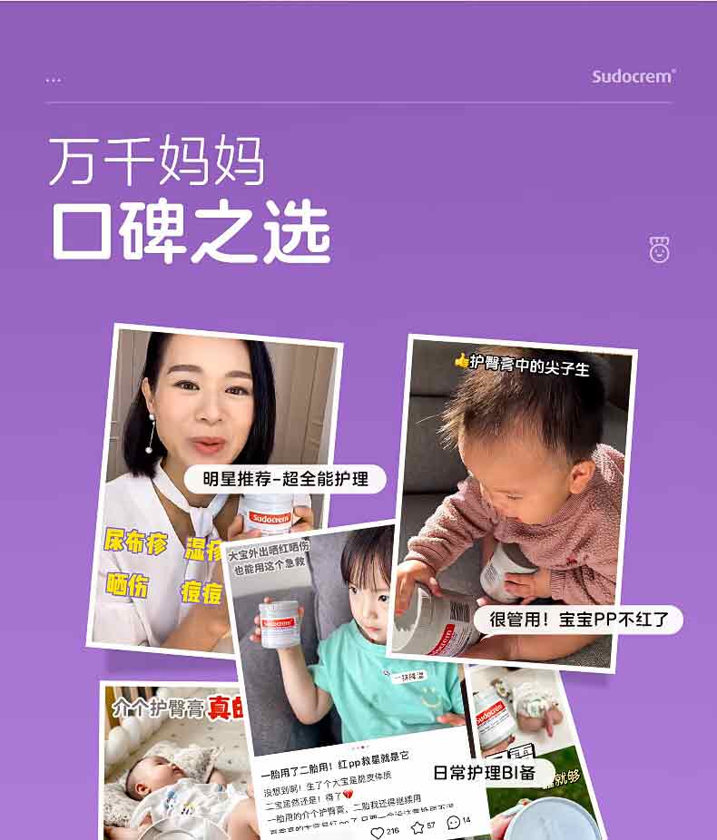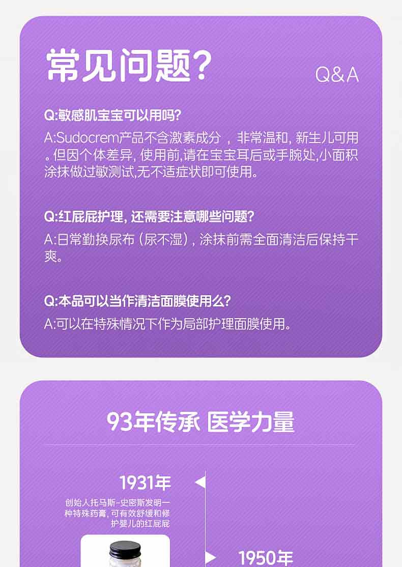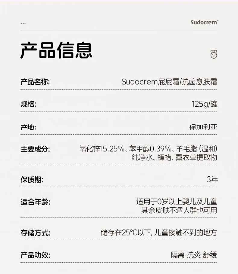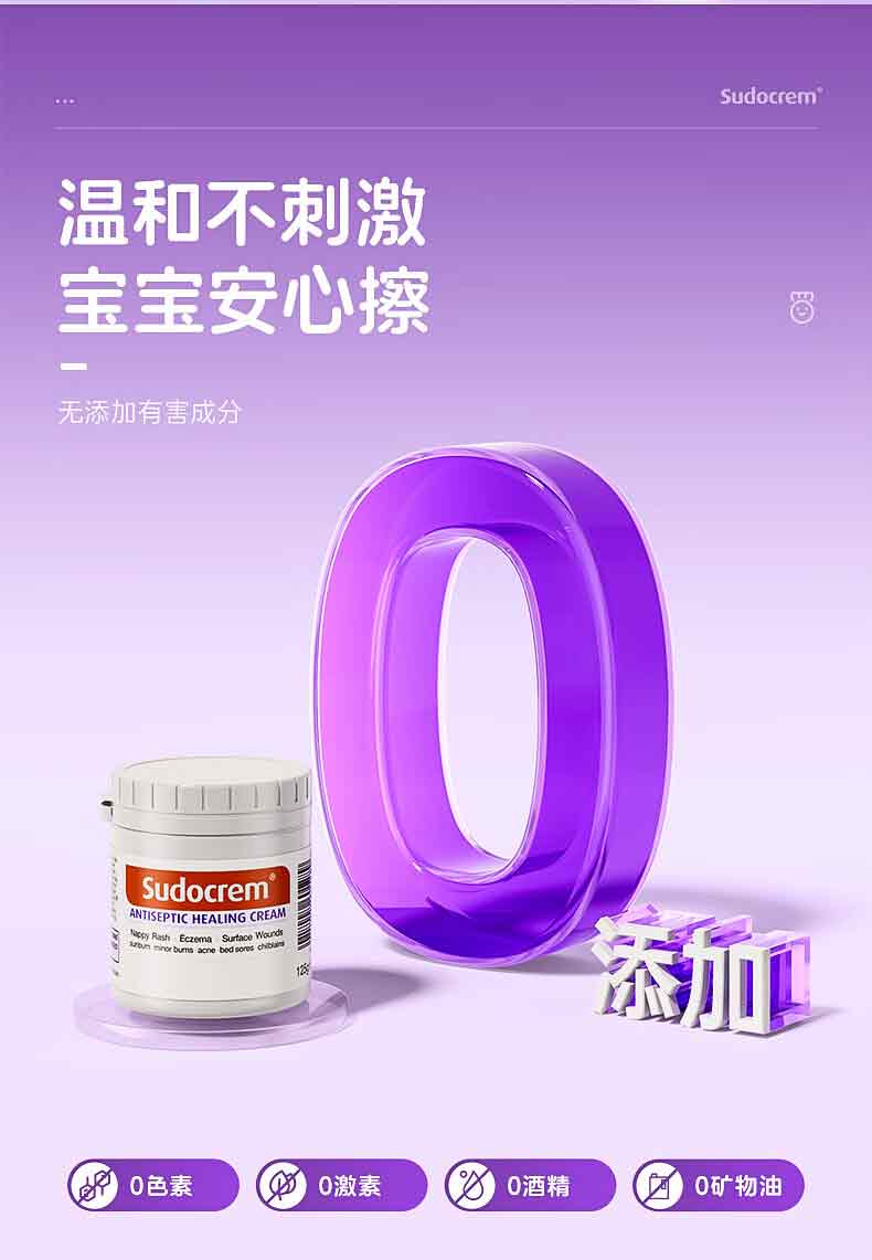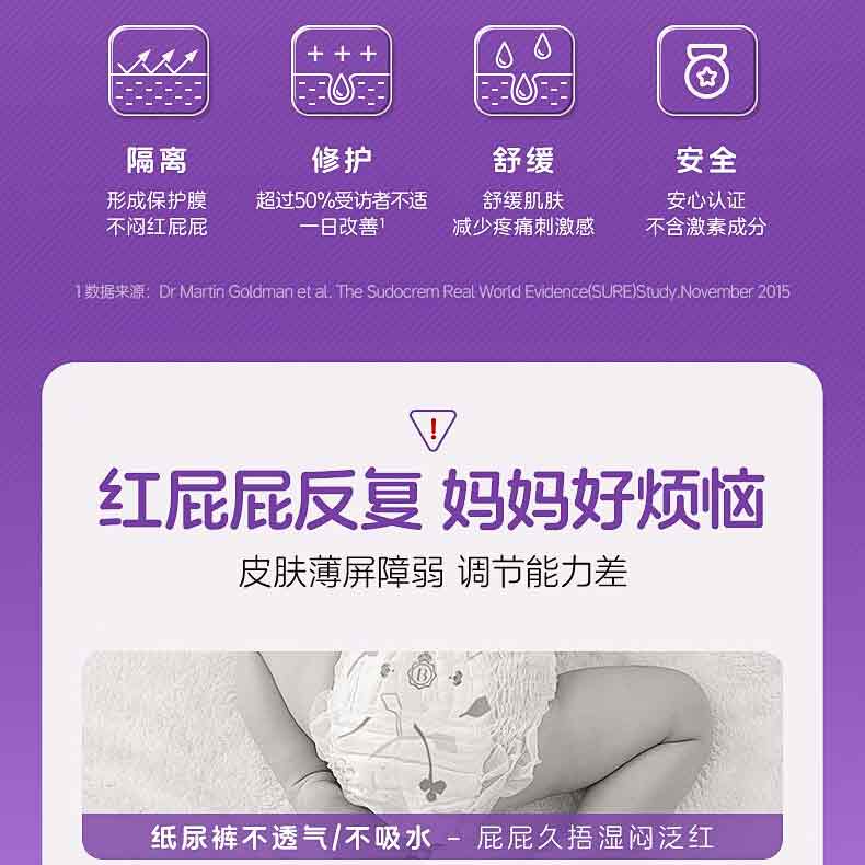 Sudocrem新生婴幼儿护臀膏含氧化锌英国屁屁乐宝宝红屁股护理修复专用霜 英版125g【爆款推荐】护臀膏