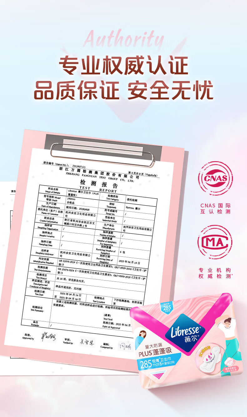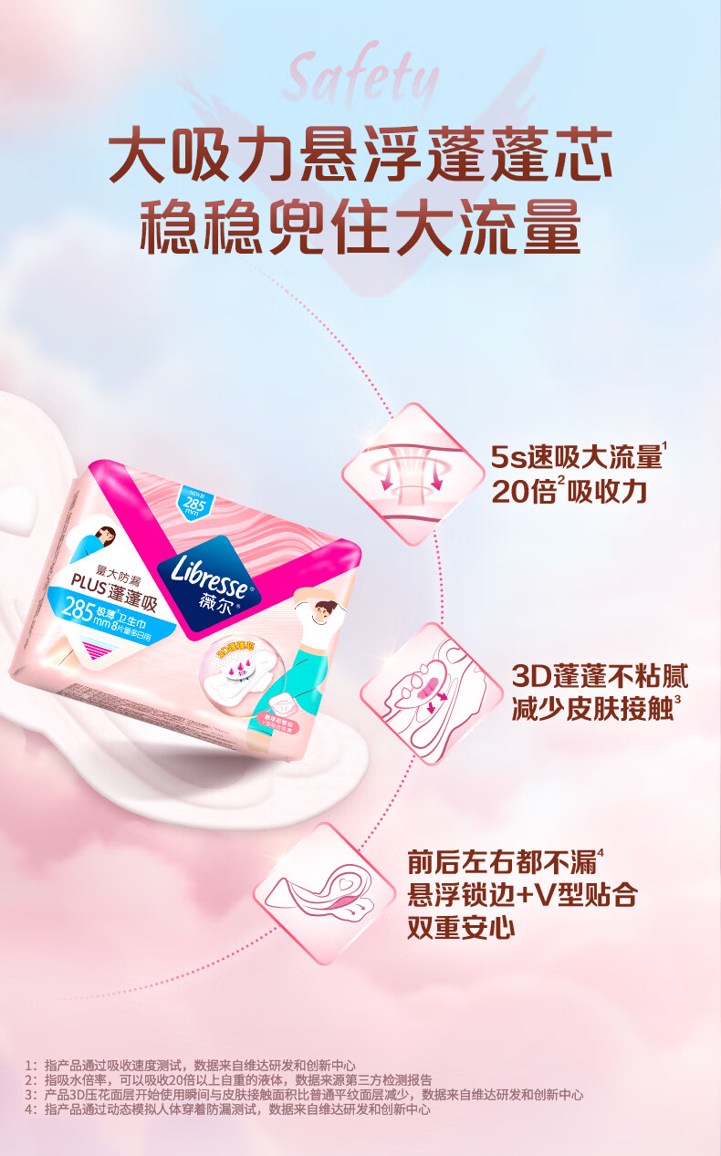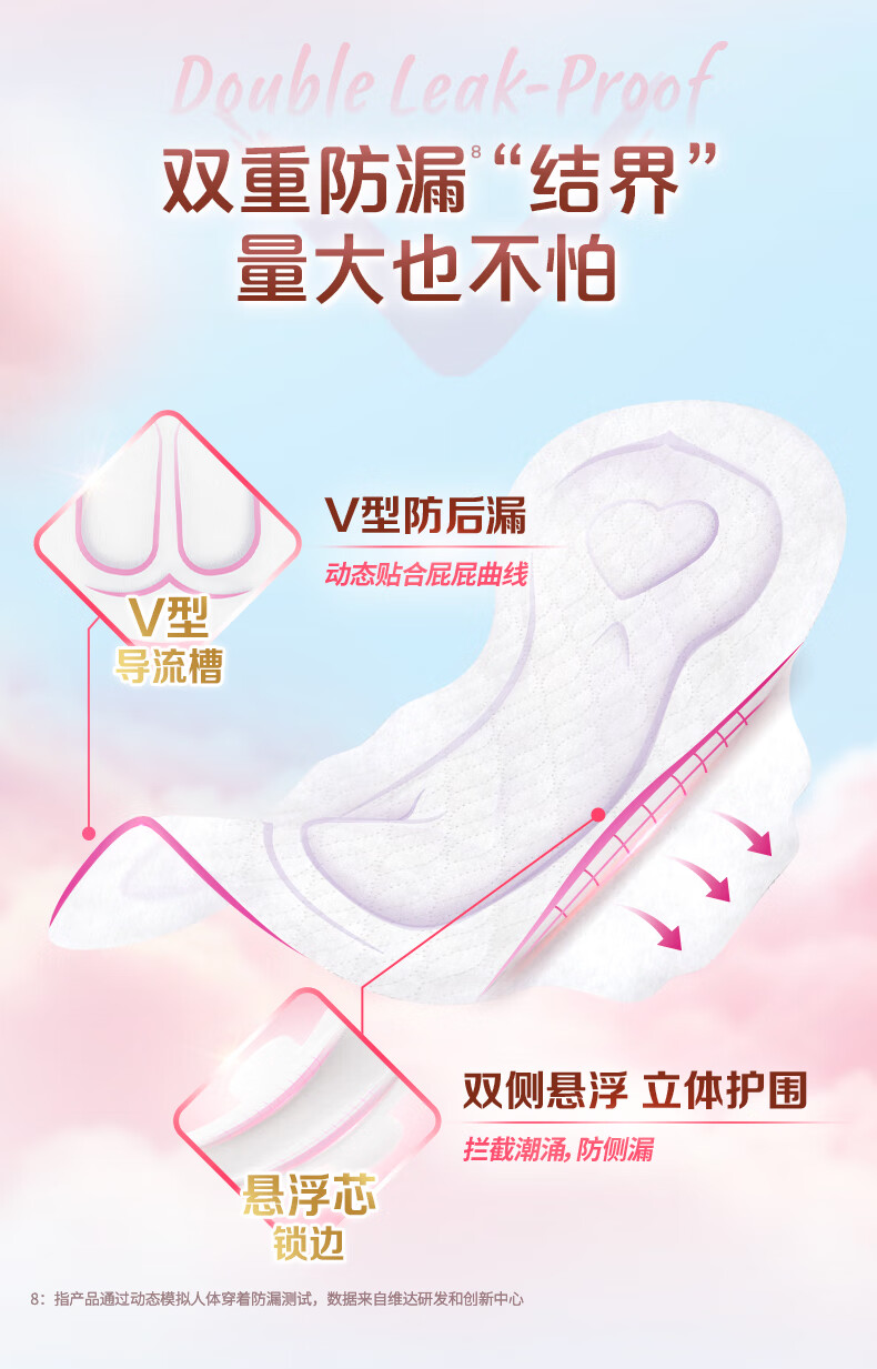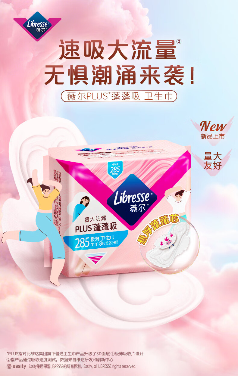 薇尔蓬蓬吸超薄贴合透气防漏285mm*8片加长日用卫生巾