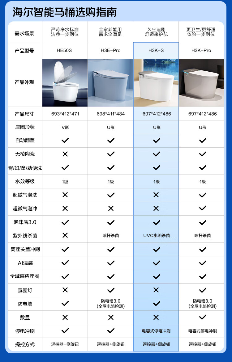 海尔(Haier)智能马桶 U形大座圈感应翻盖泡沫防溅全功能马桶H3K 【UVC水路杀菌】H3KS 385以上选 400mm
