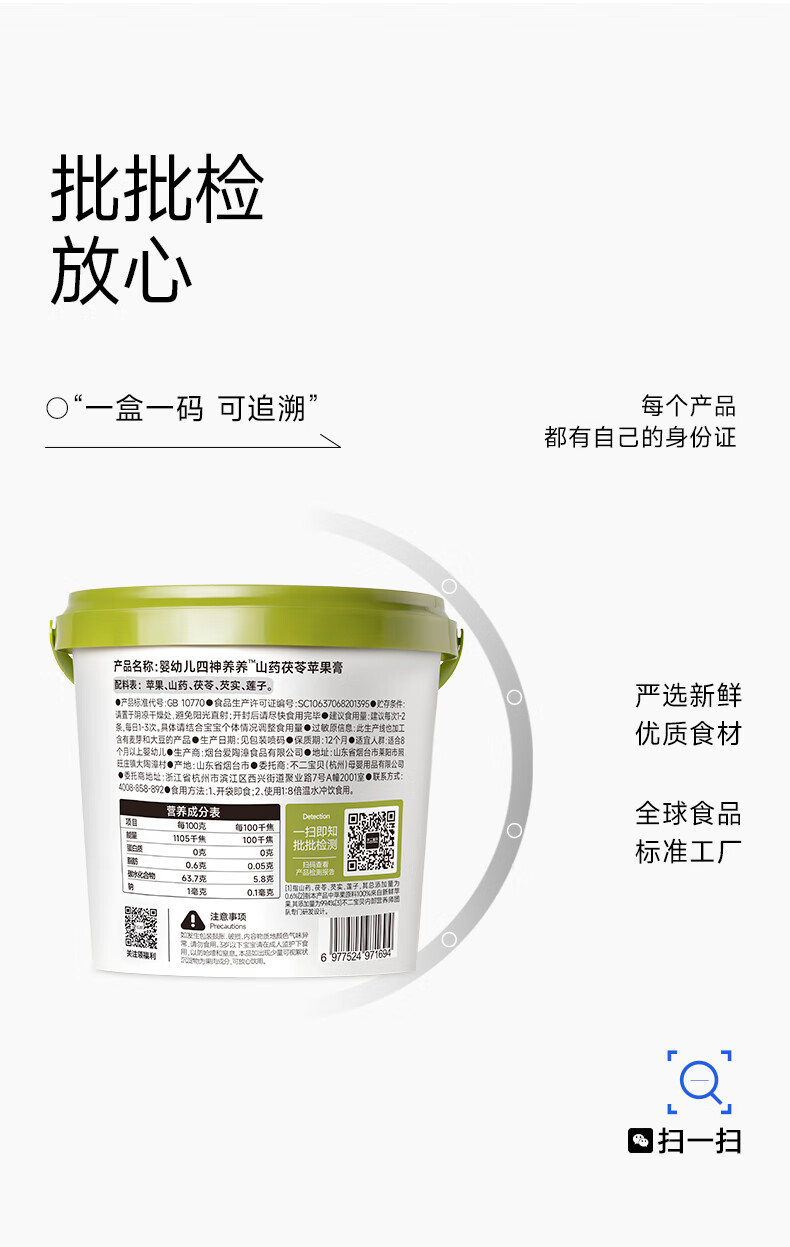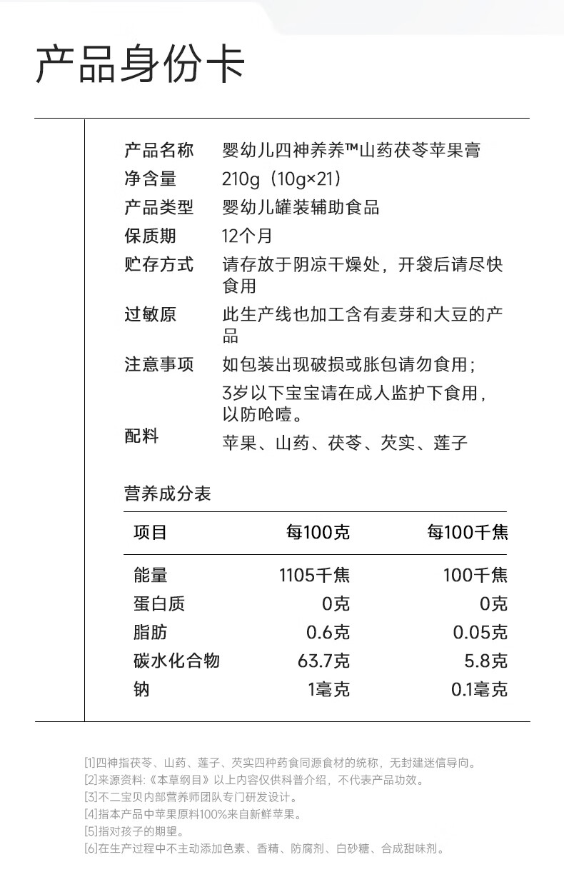 不二宝贝婴标四神养养无添加搭宝宝零食山药茯苓苹果膏 【1桶21条|赠尝鲜*2条】婴幼儿四神膏 210g*1罐