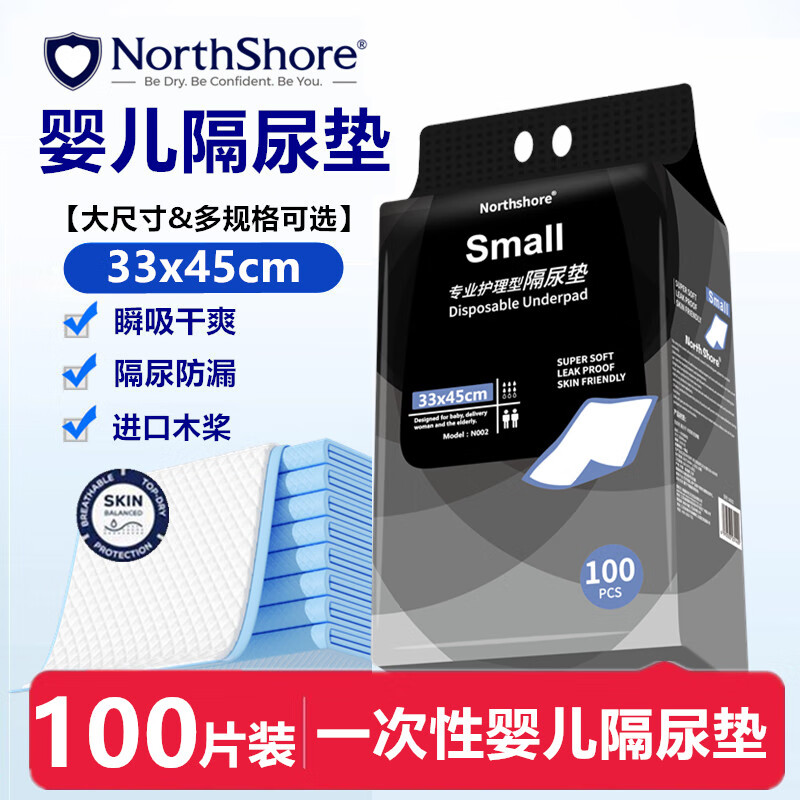 NORTHSHORE婴儿一次性隔尿垫100片33x45cm 新生儿宝宝护理垫 防水透气