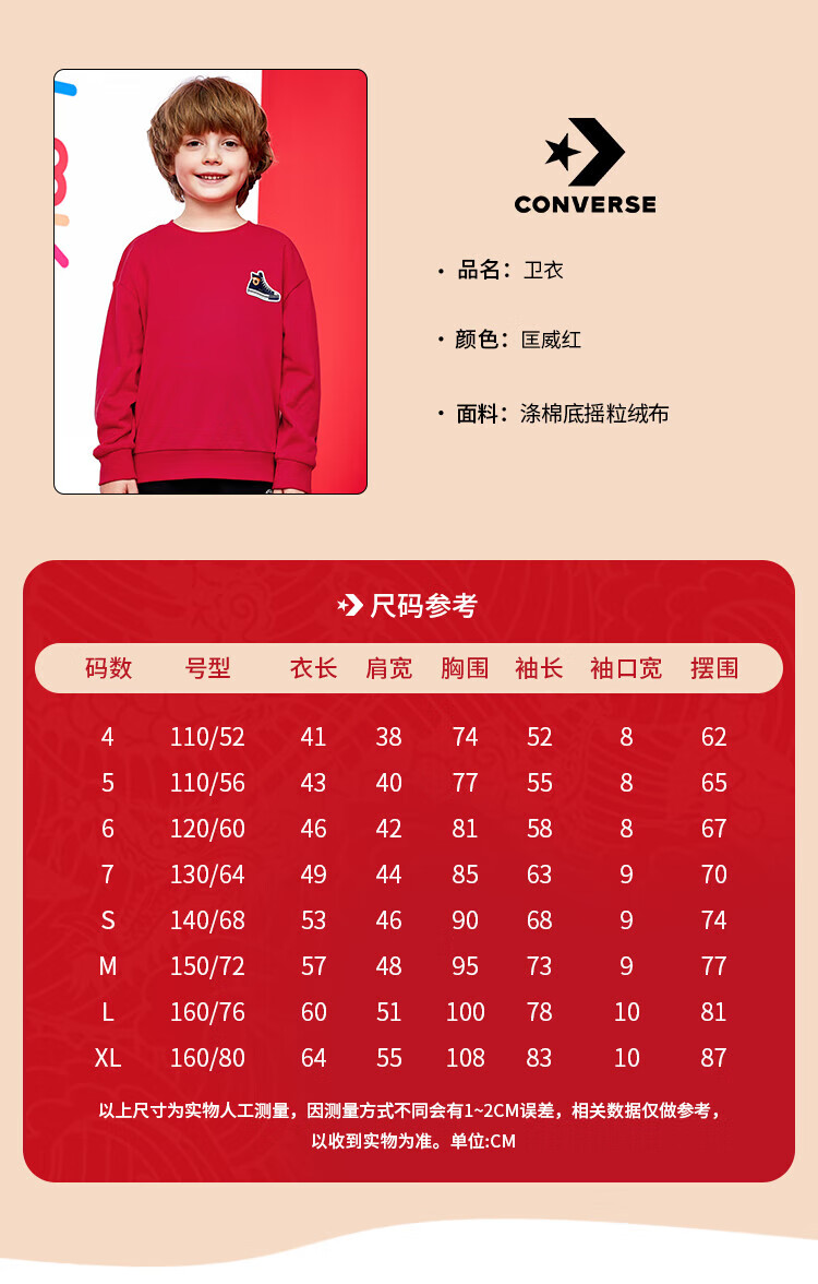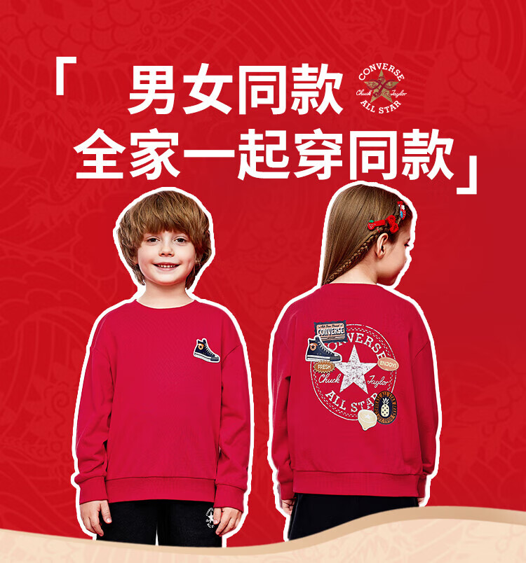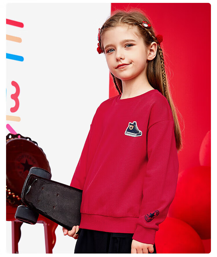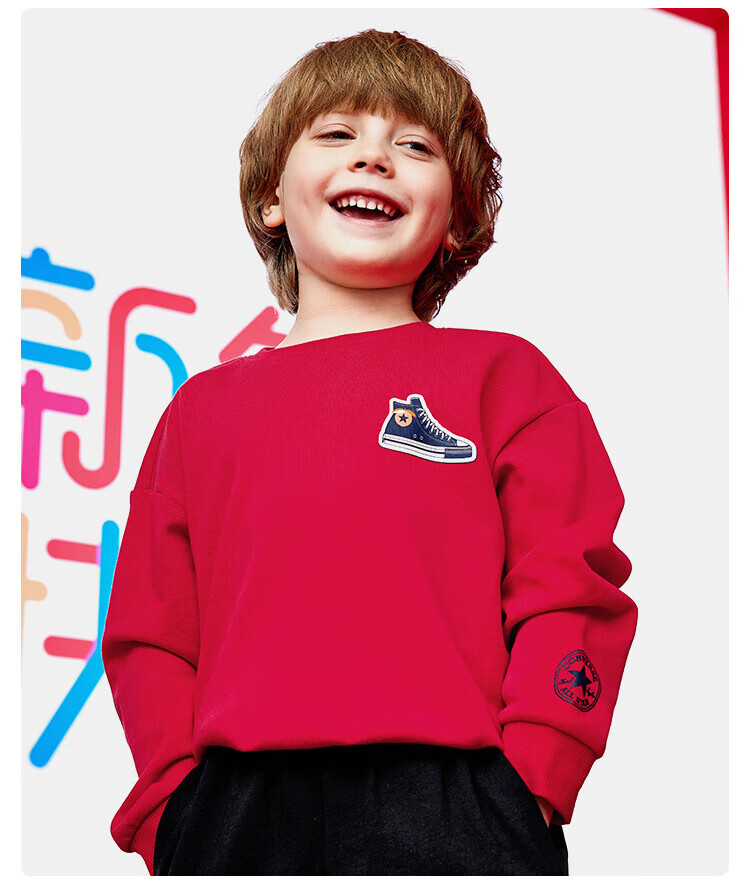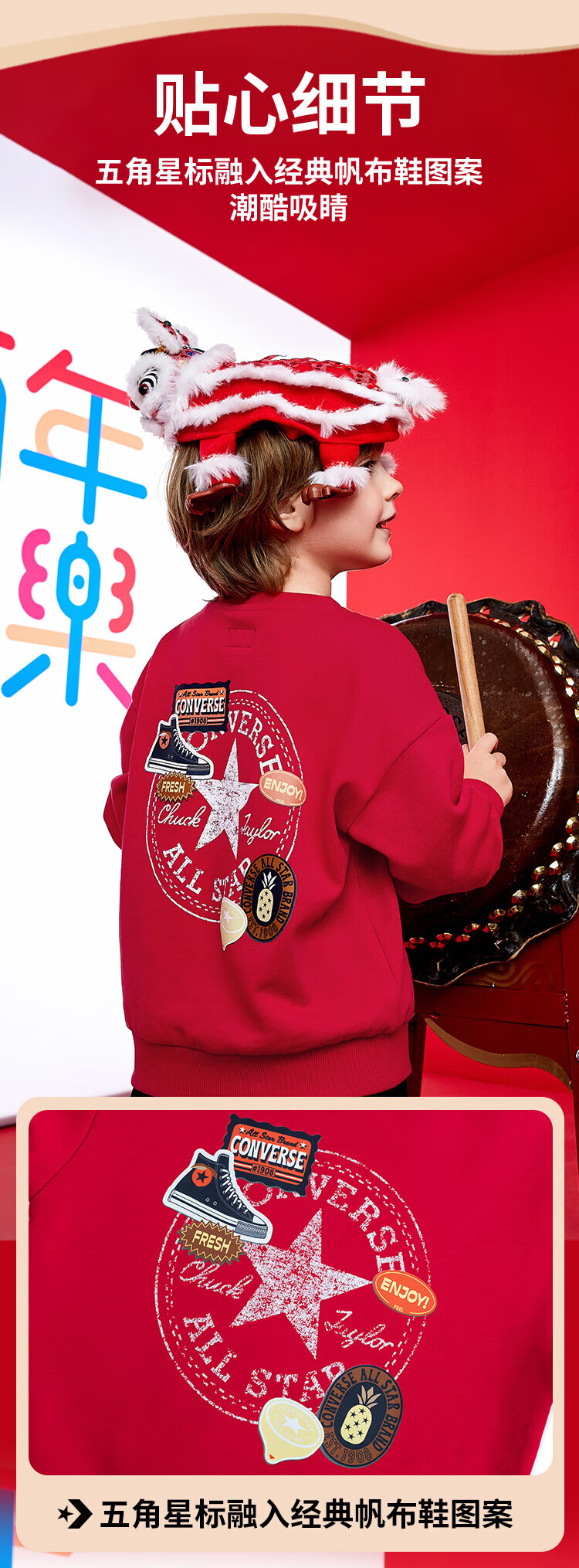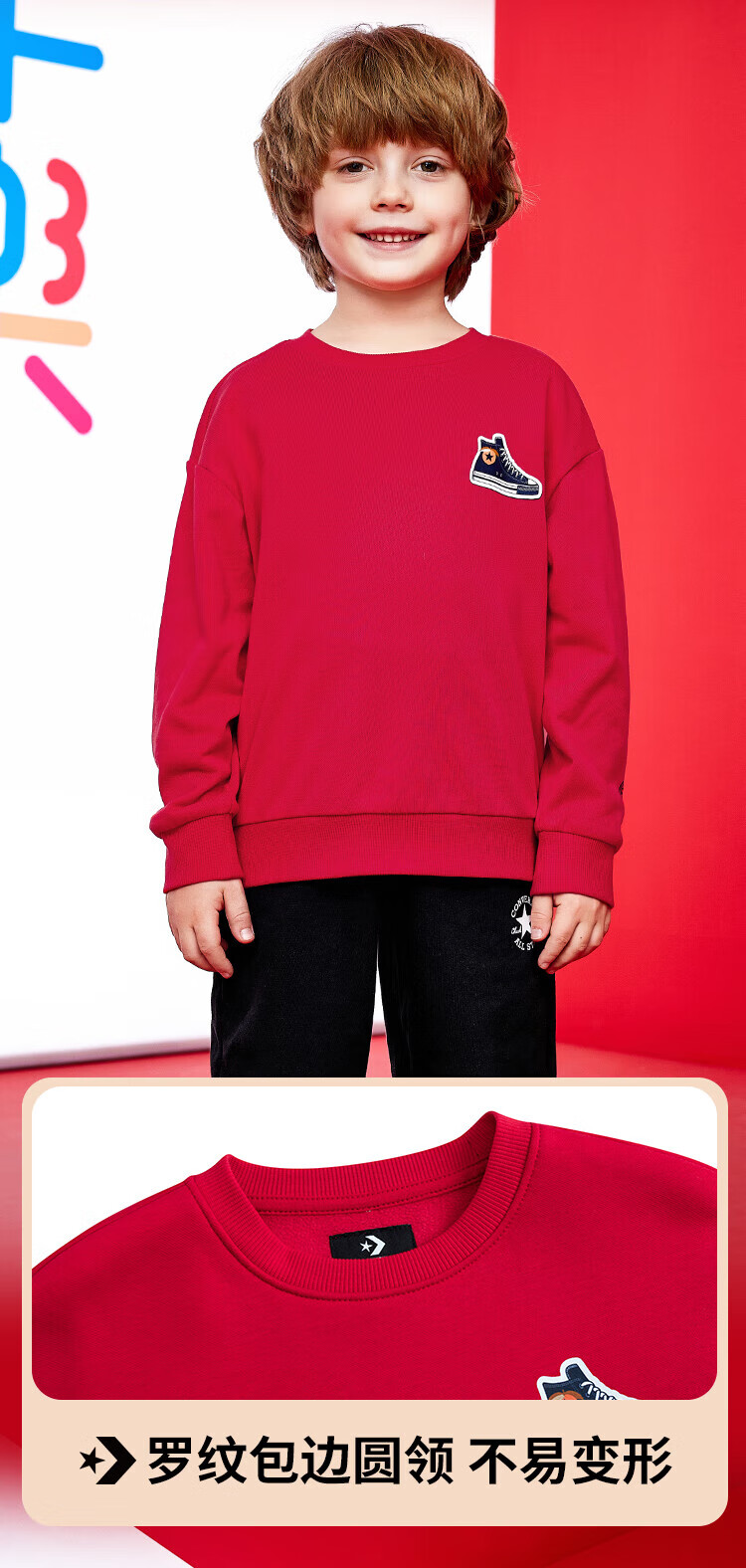 Converse匡威儿童装2025新春中大童加绒打底衫男女童卫衣本命年红色拜年服 匡威红 加绒款 140 /68 【建议身高128-140cm】