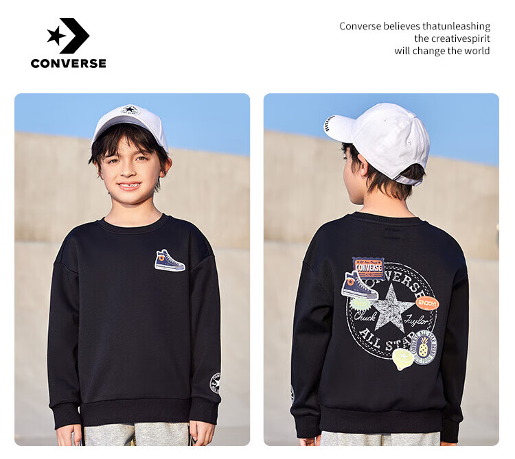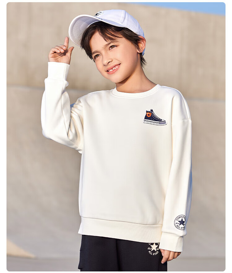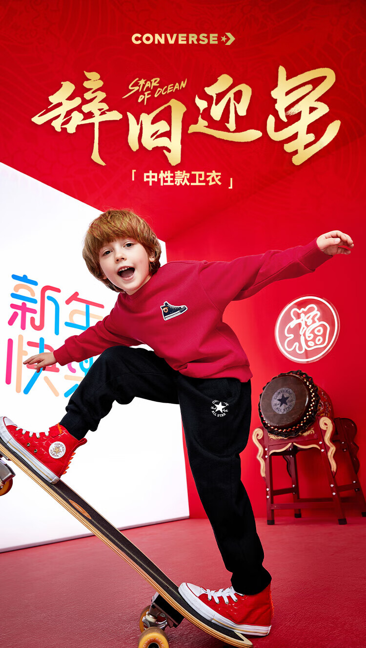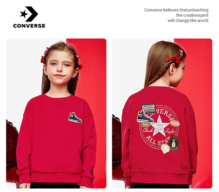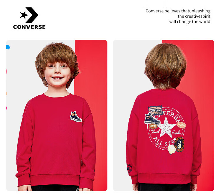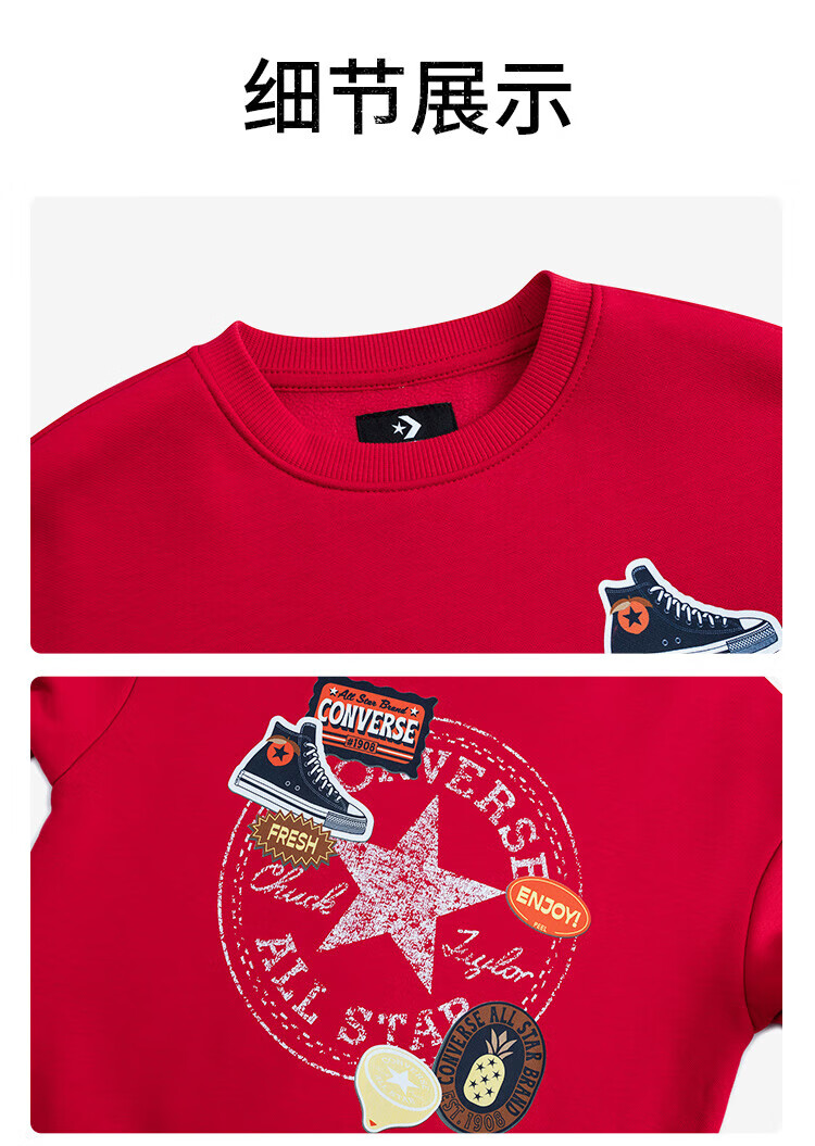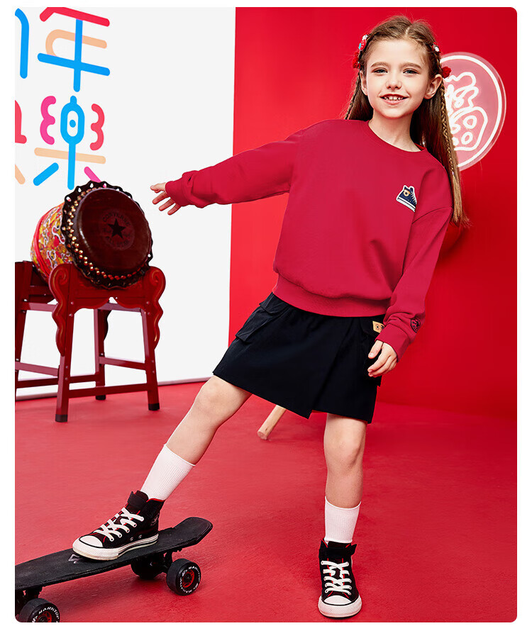 Converse匡威儿童装2025新春中大童加绒打底衫男女童卫衣本命年红色拜年服 匡威红 加绒款 140 /68 【建议身高128-140cm】