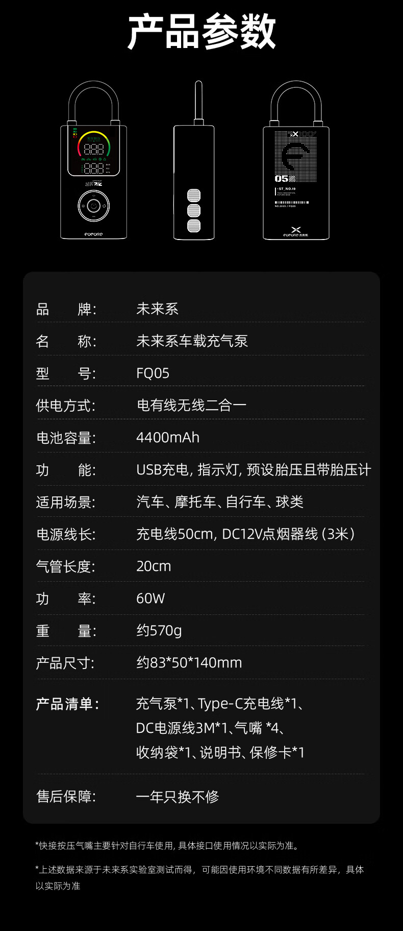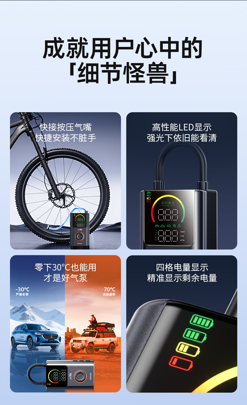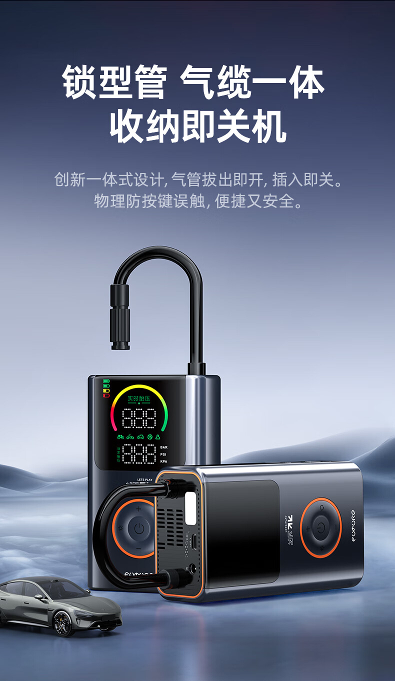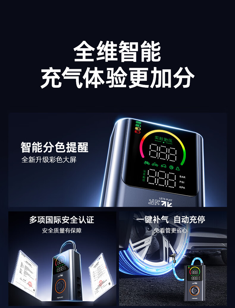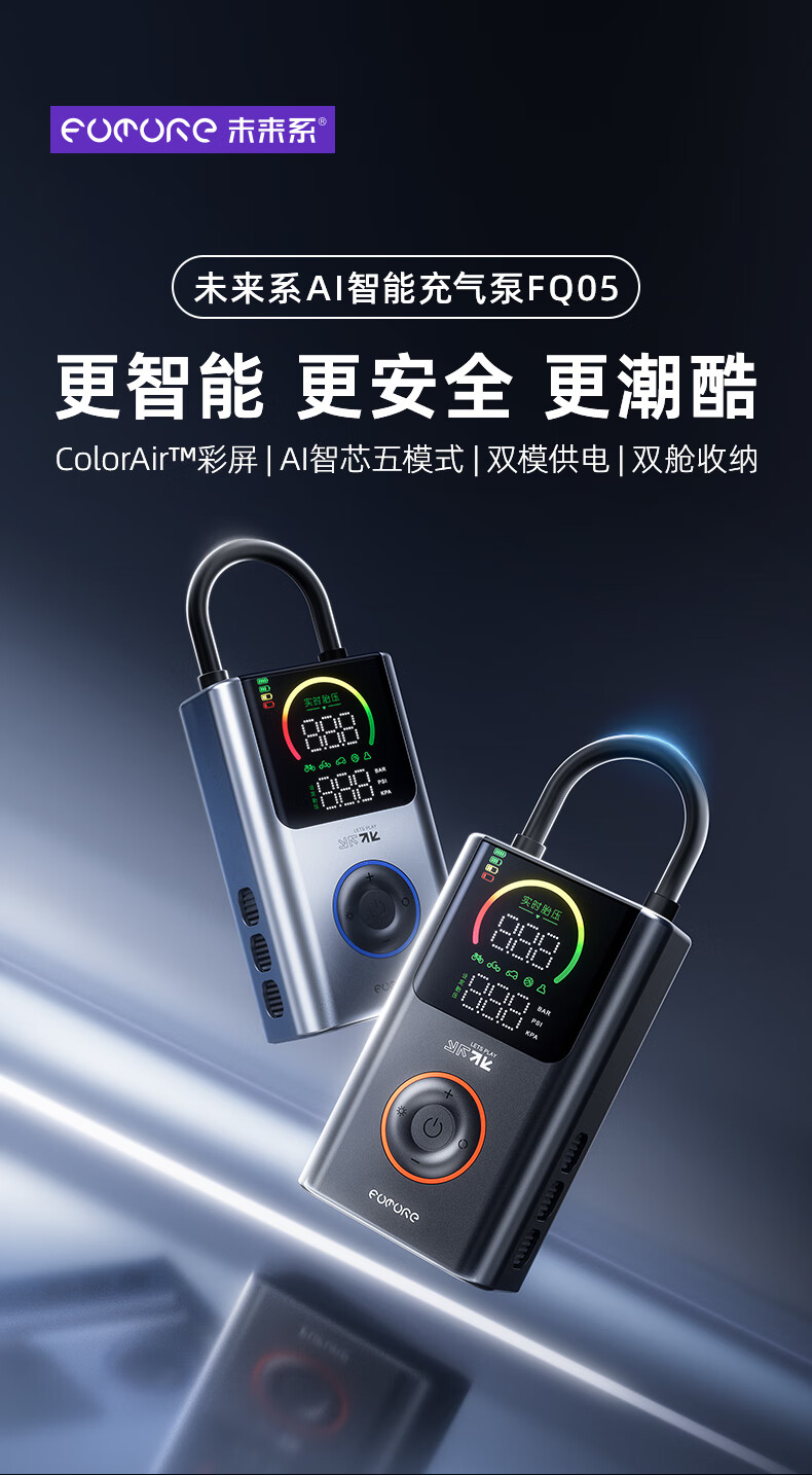 未来系无线充气泵彩屏车载打气泵电动充气宝汽车自行公路车轮胎测压高压