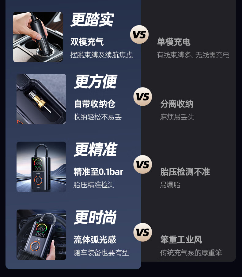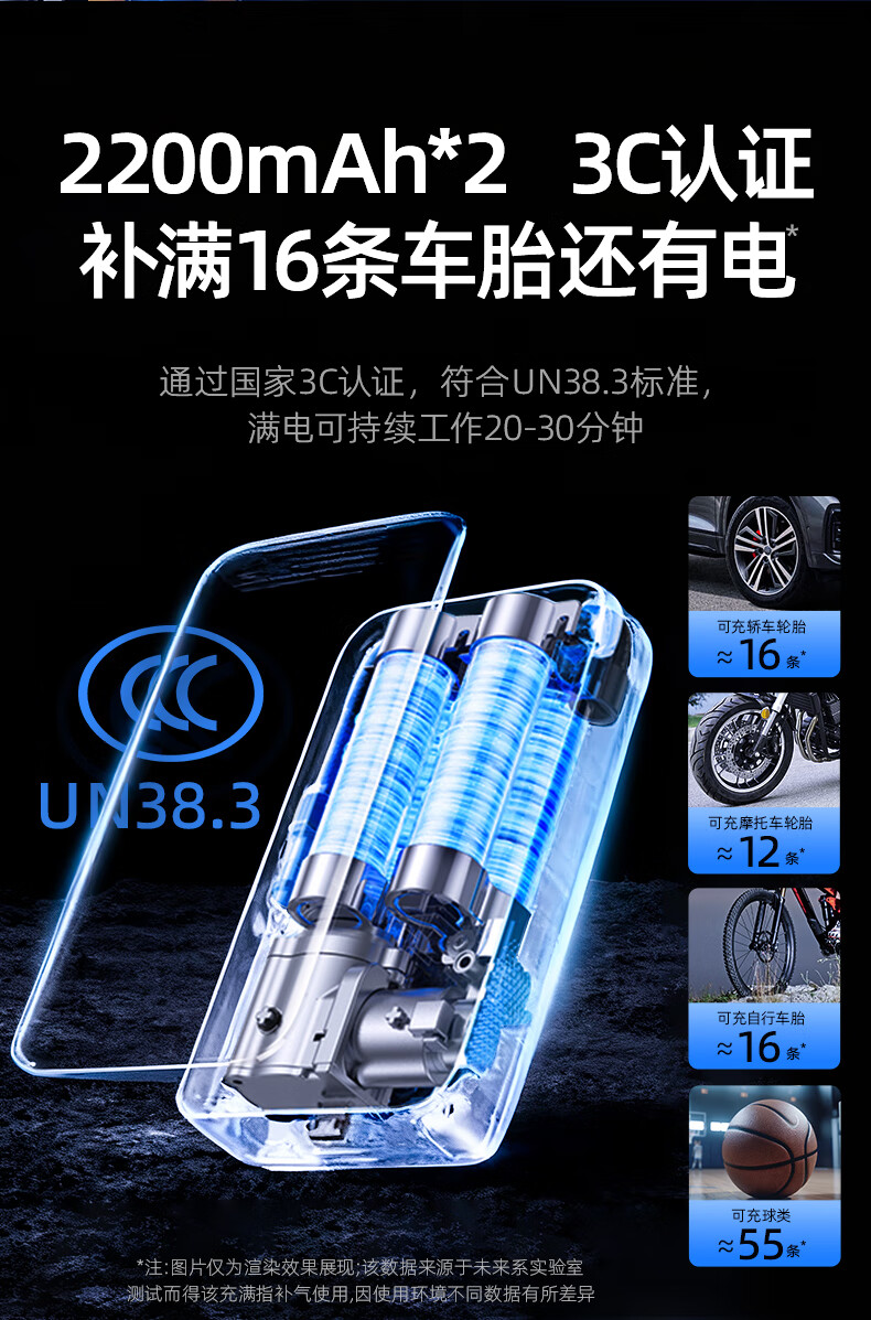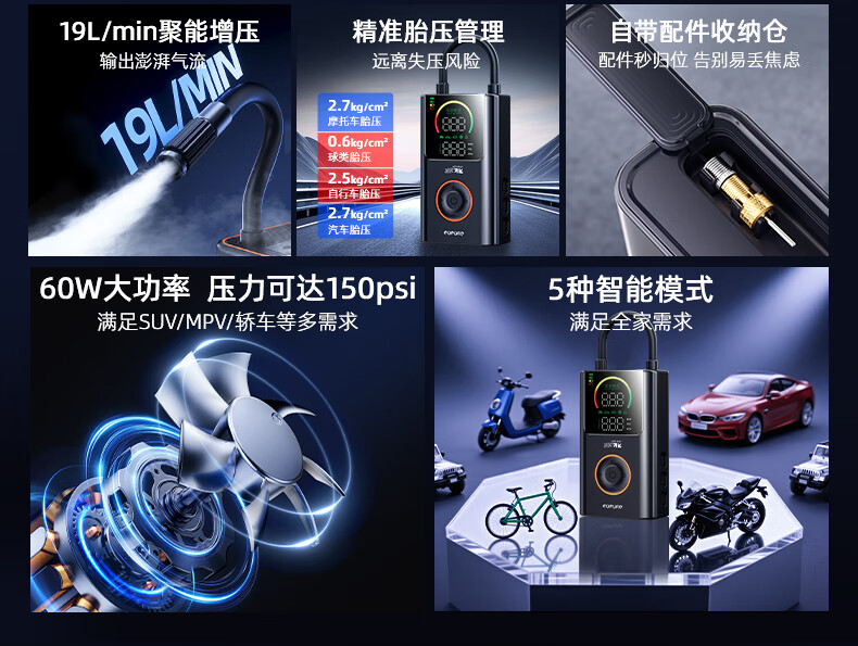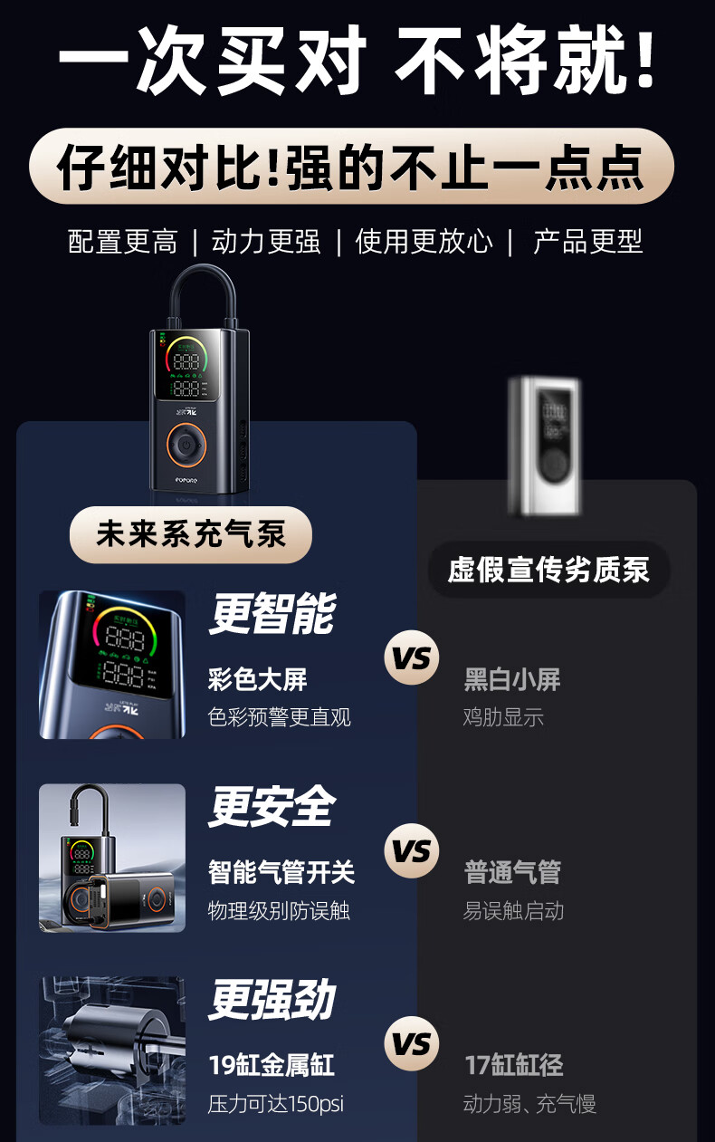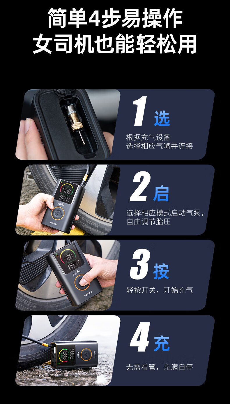 未来系无线充气泵彩屏车载打气泵电动充气宝汽车自行公路车轮胎测压高压