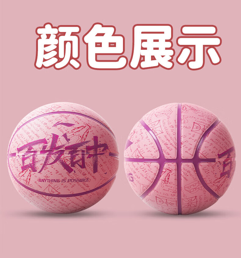 李宁(LI-NING)篮球5号儿童女小学生7号青少年室内外训练专用耐磨五号礼物蓝球 百发百中-天蓝色 五号