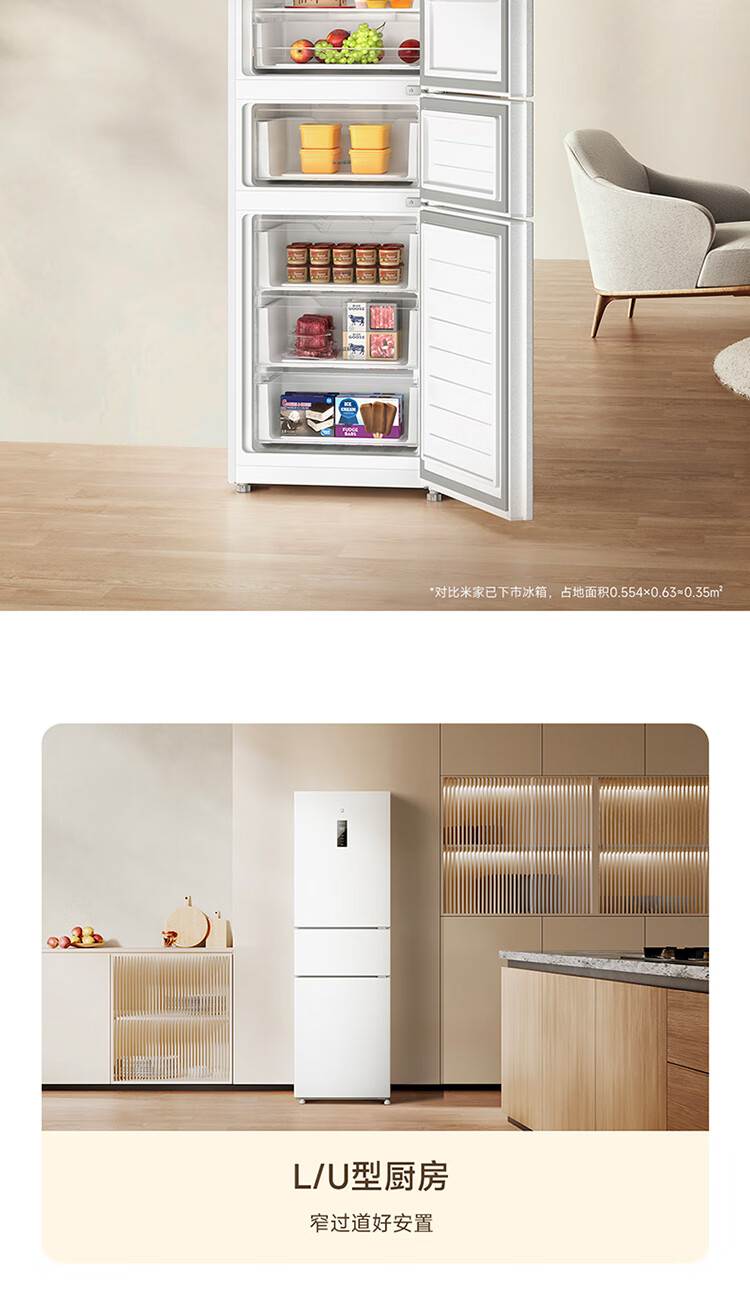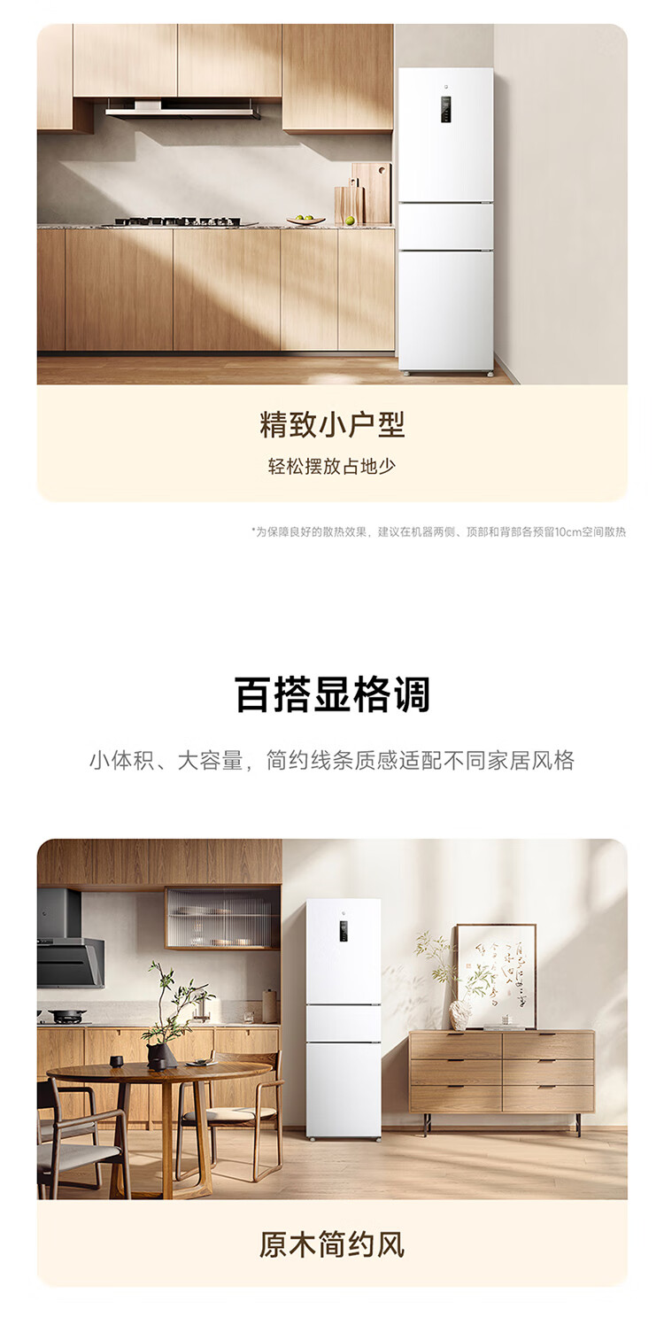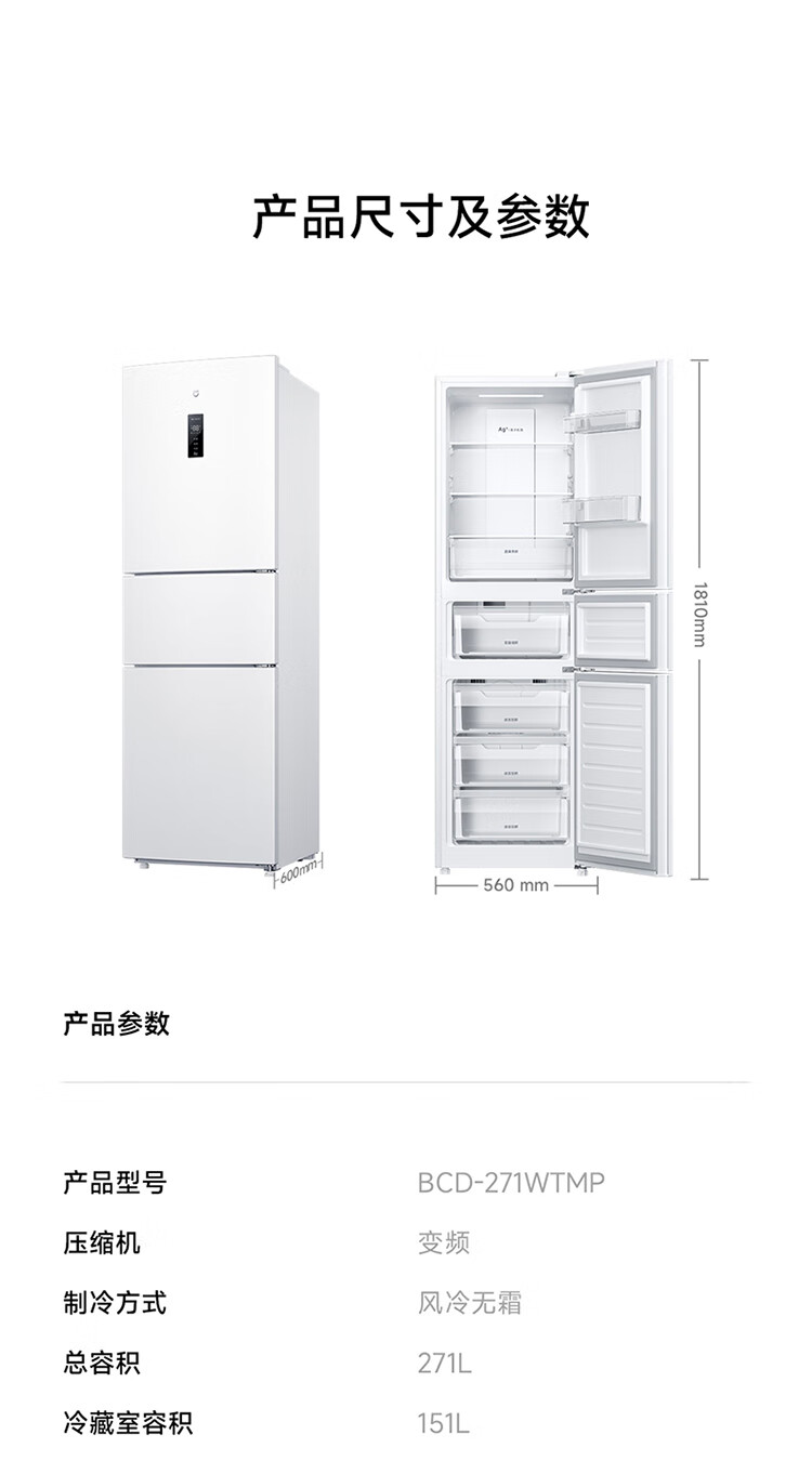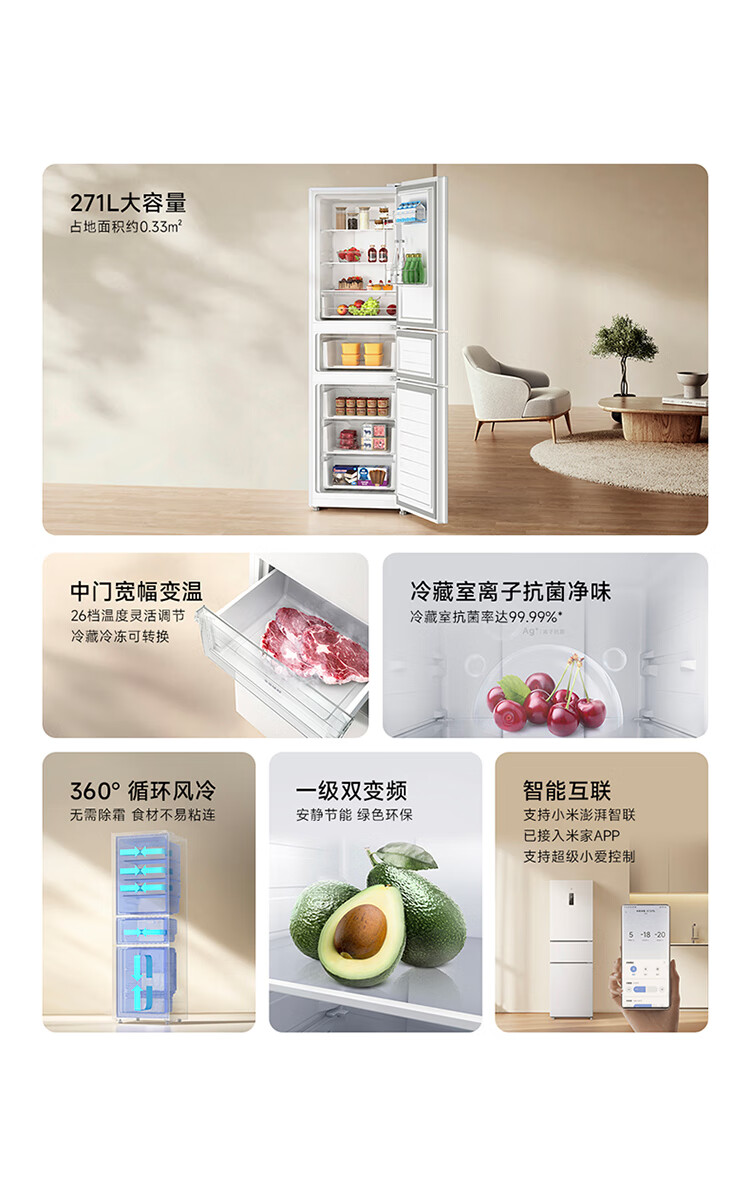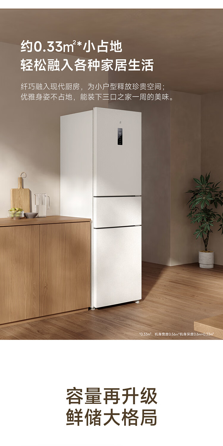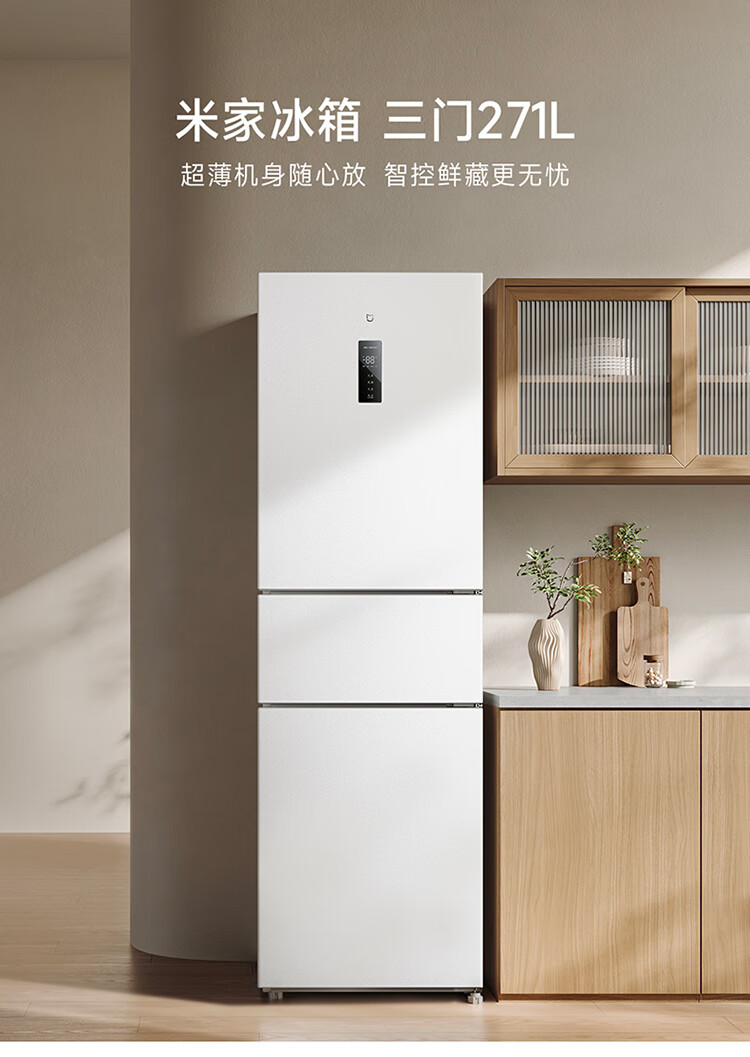 米家小米271L三门冰箱小型家用风冷无霜节能安静运行一级能效租房宿舍BCD-271WTMP国家补贴