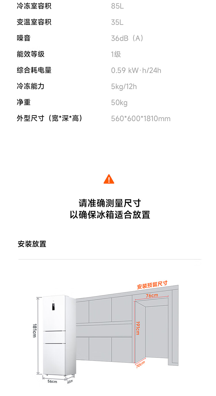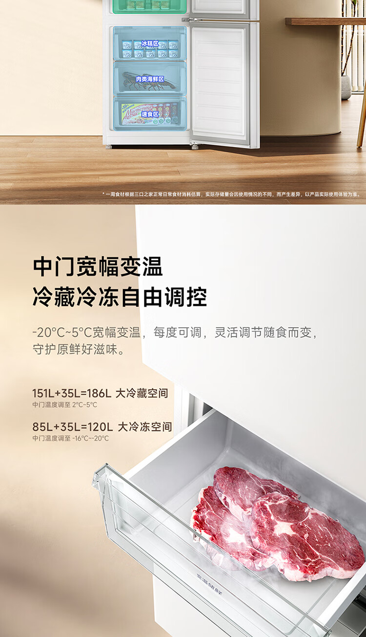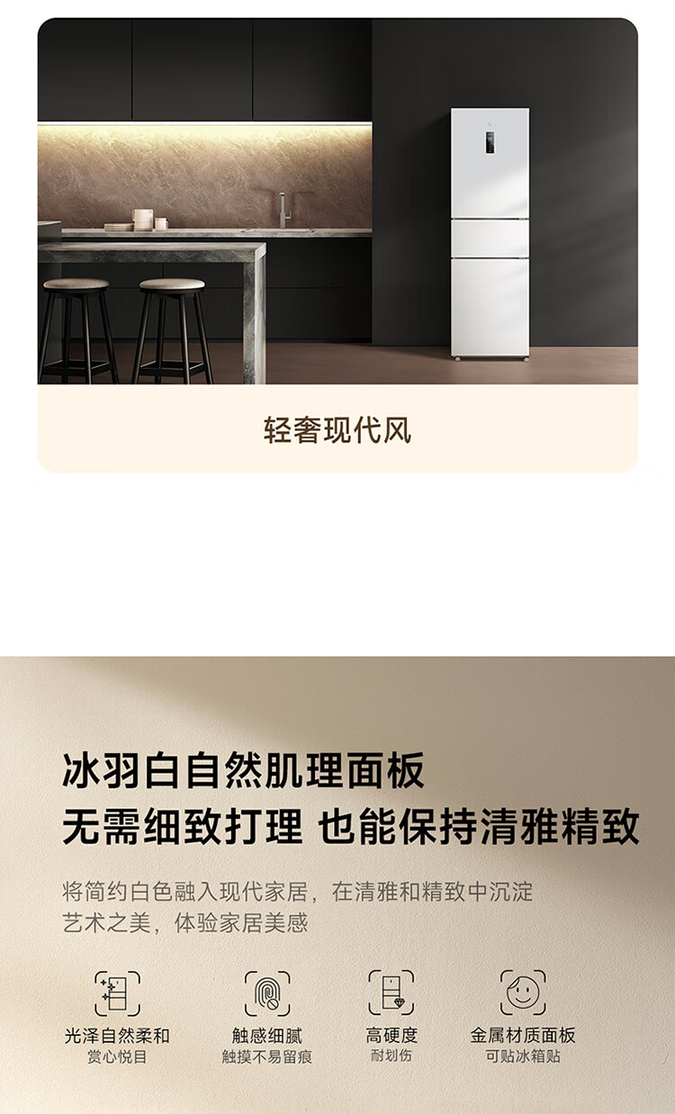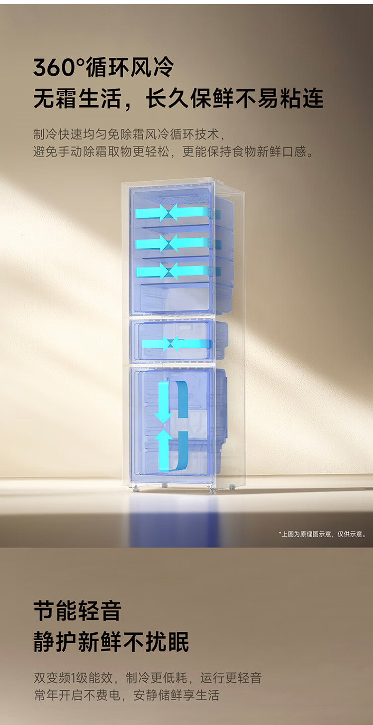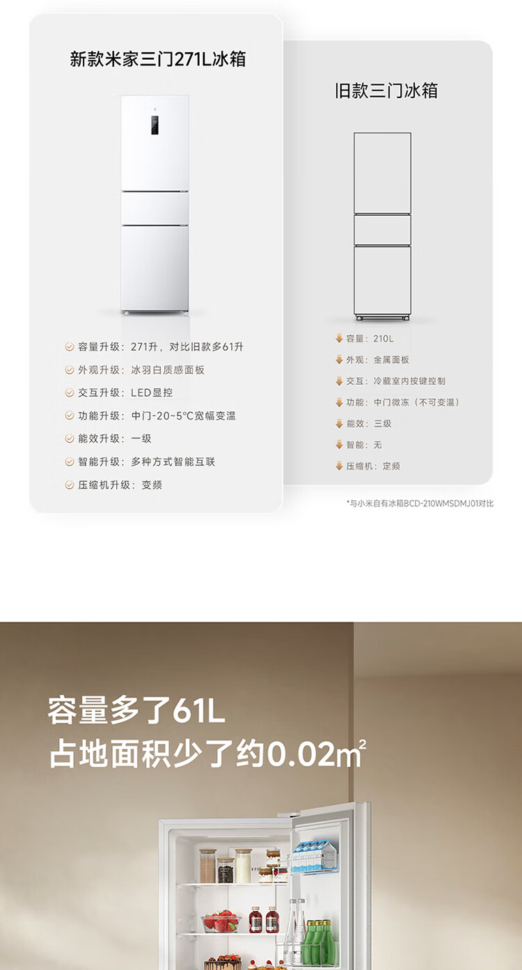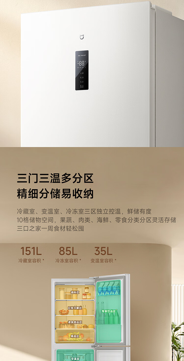 米家小米271L三门冰箱小型家用风冷无霜节能安静运行一级能效租房宿舍BCD-271WTMP国家补贴
