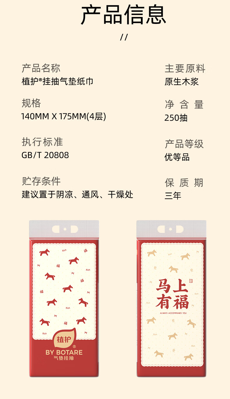 植护大包悬挂式抽 壁挂式餐巾纸 家用厕纸擦手用纸 卫生纸巾 蓝色 4层 250抽*8提 (配挂钩)