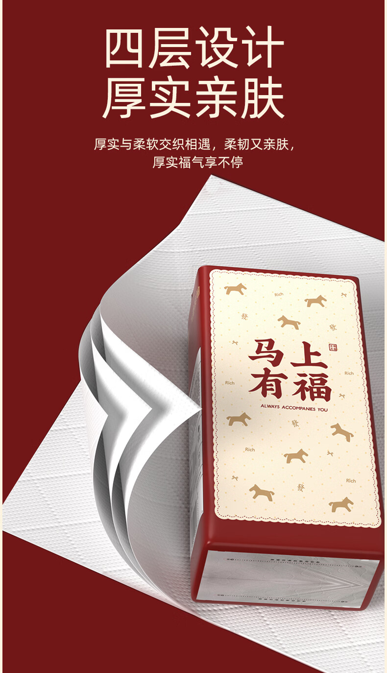 月半弯三色系高端高密抽纸5层500张12包家用餐巾纸巾可湿水面巾纸卫生纸