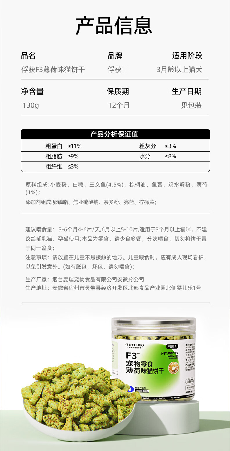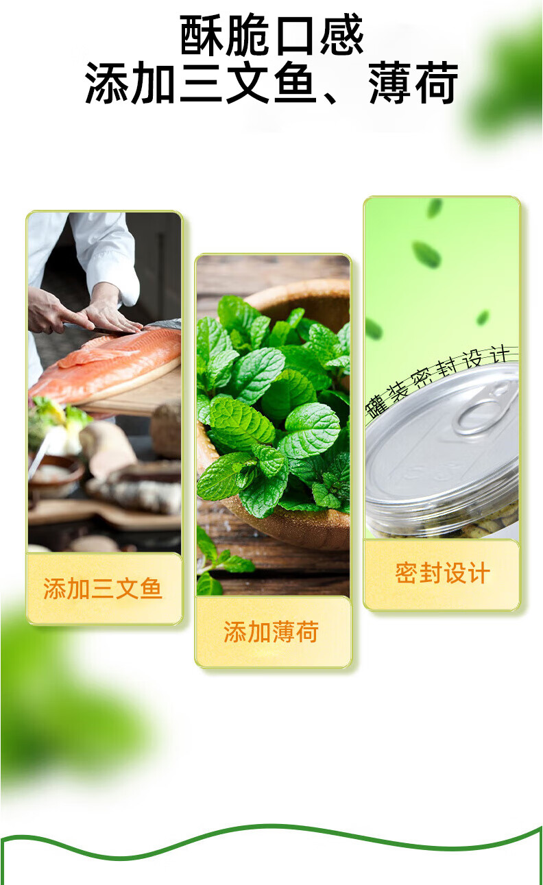 俘获F3薄荷味猫饼干小鱼饼干成幼猫猫咪零食猫零食 【试吃体验】5袋(共75g) 薄荷味猫饼干