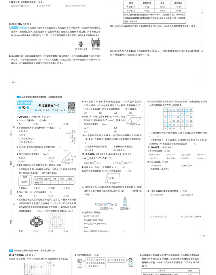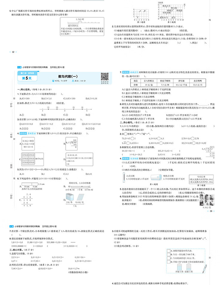 2025秋 一本小学数学15天期末考前冲刺卷五年级上册人教版 小学数学考点复习巩固真题训练必刷题期末押题模拟试卷 五年级上册数学人教版