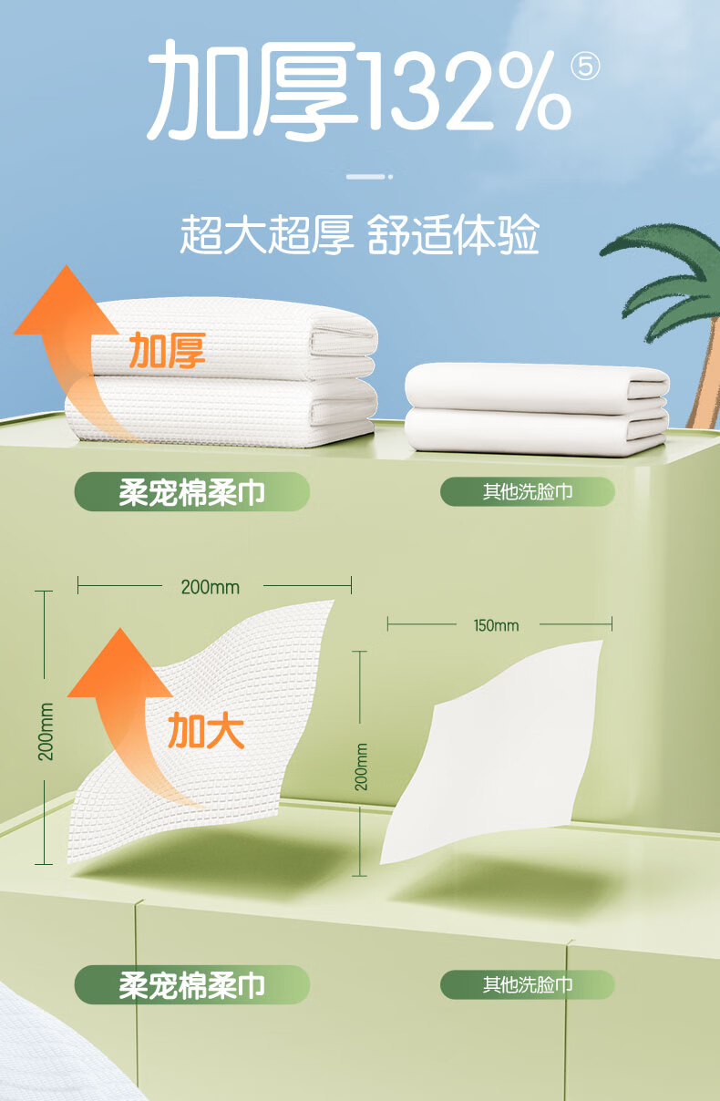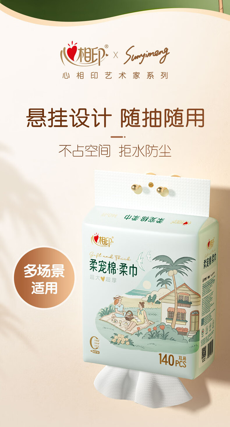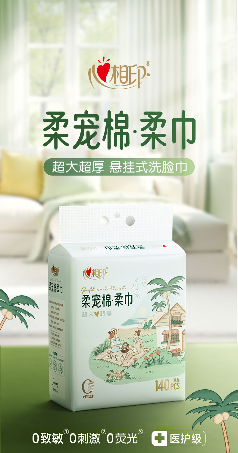 心相印柔宠棉洗脸巾140片一次性悬挂式 90克高克重壁挂式擦脸巾