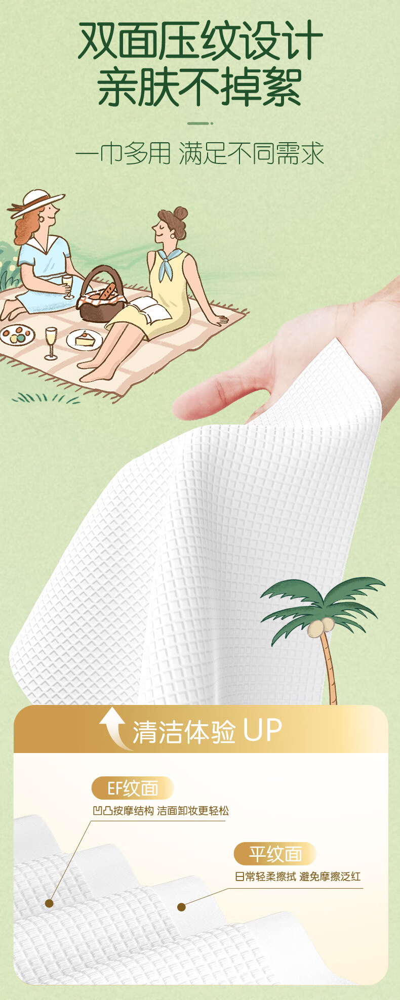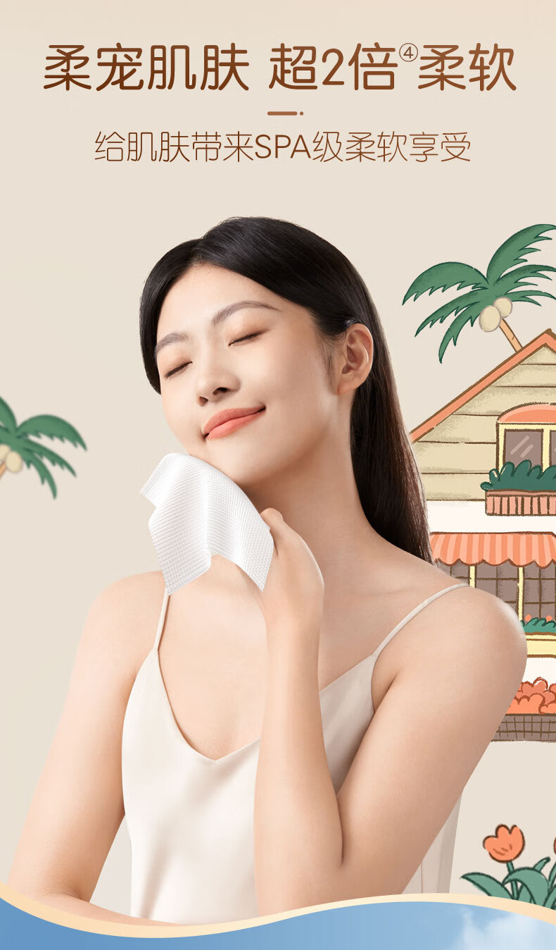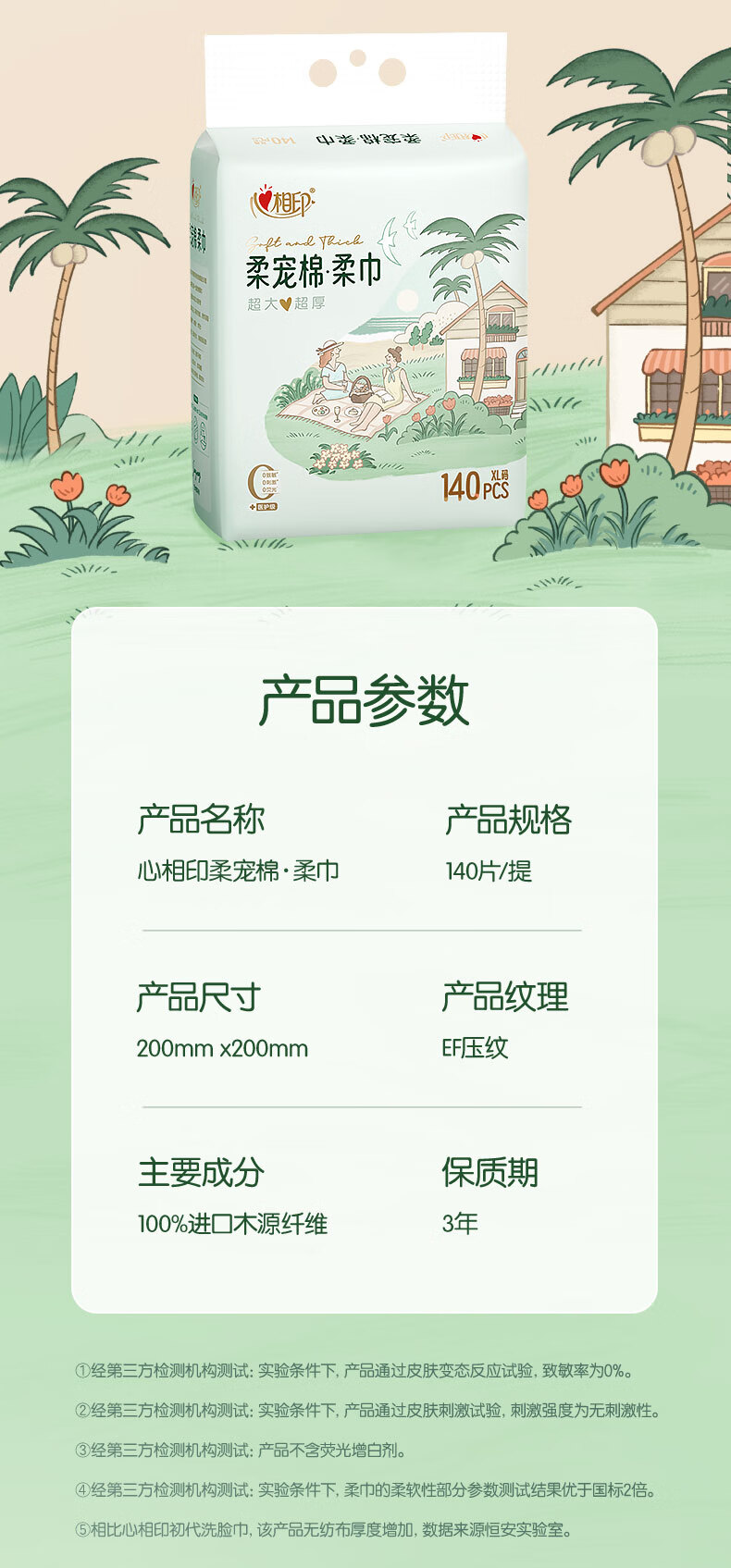 心相印柔宠棉洗脸巾140片一次性悬挂式 90克高克重壁挂式擦脸巾