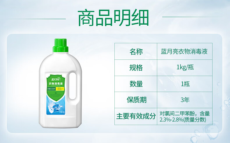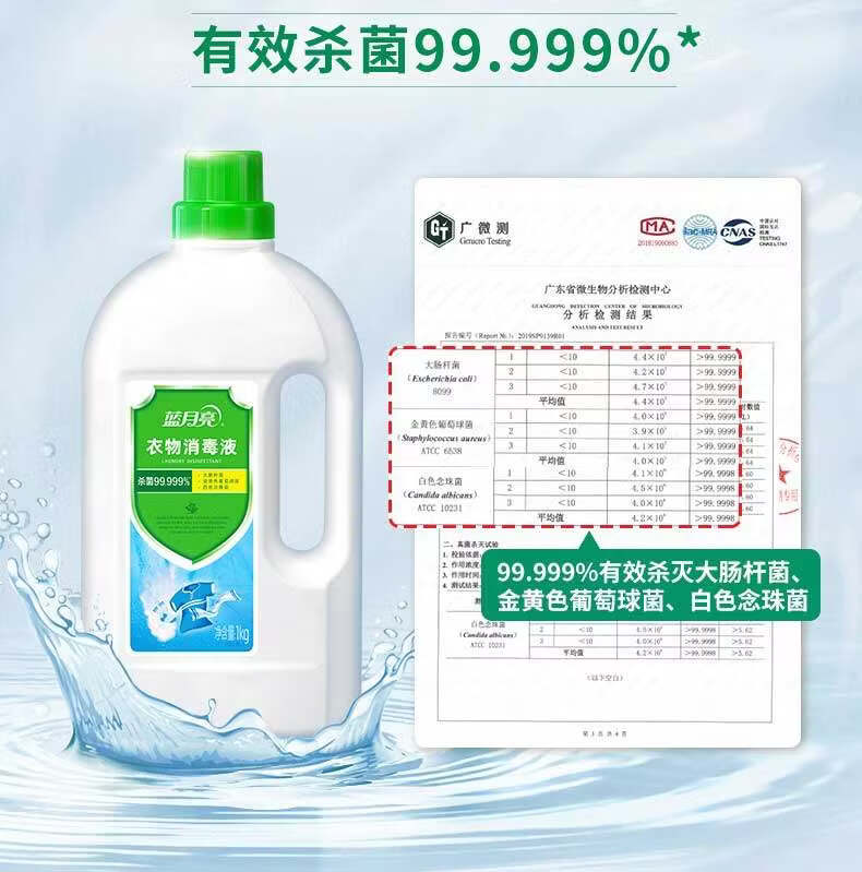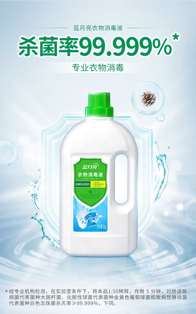 蓝月亮衣物消毒液 松木清香 1kg瓶 杀菌率99.999% 专业消毒
