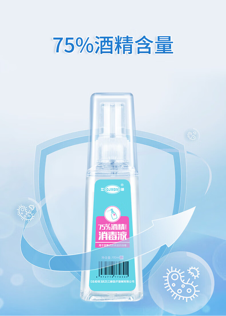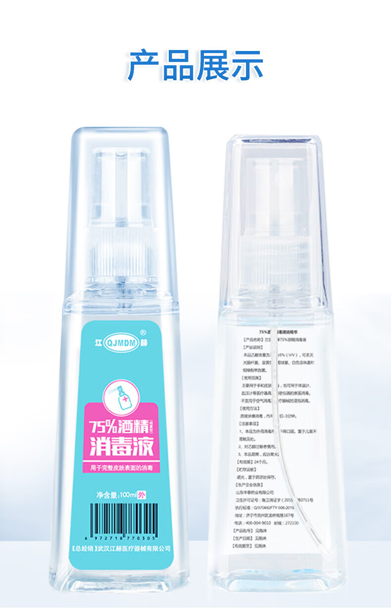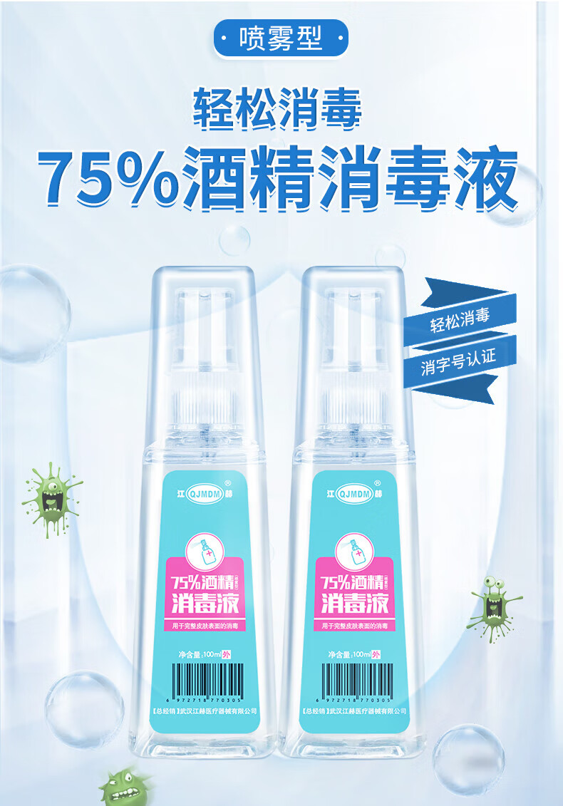 江赫酒精喷雾75%度消毒家用医用皮肤物品清洁杀菌乙醇消毒水健康小瓶 酒精喷雾100ml【3瓶】 100ml/瓶