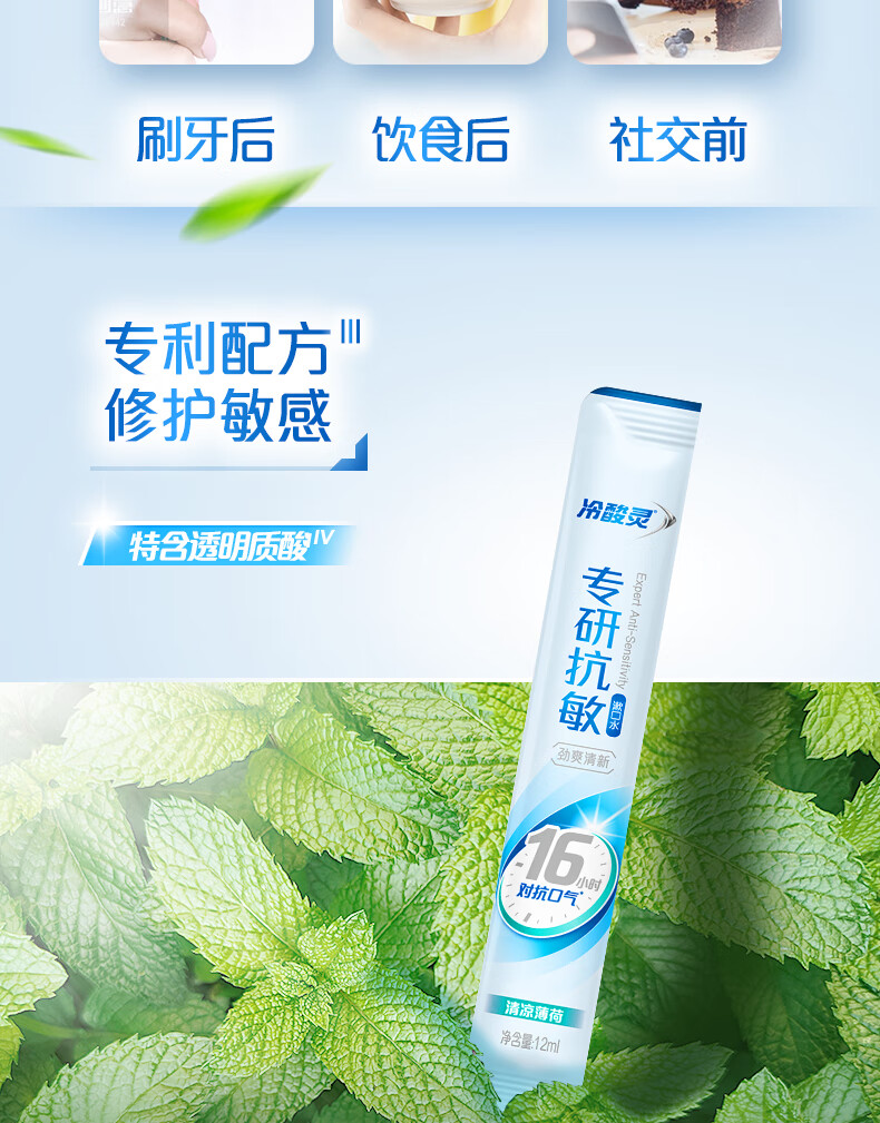 冷酸灵漱口水专研抗敏减少90%以上口腔细菌 清洁口气清除异味 国货老牌 条状便携装(12ml*3条) 36ml*1袋