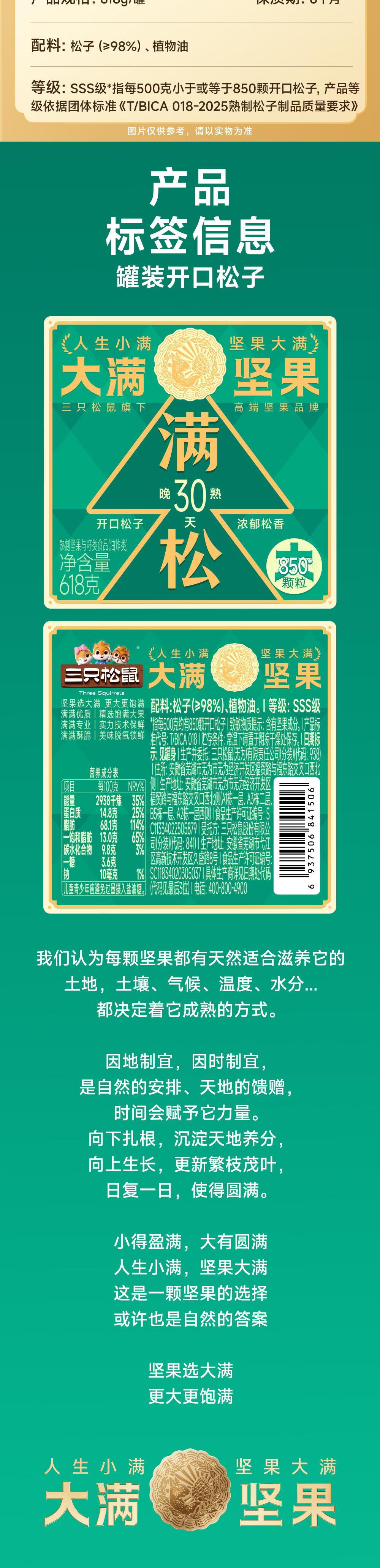 三只松鼠【大满坚果】开口松子618g/罐 鲜采手剥坚果休闲零食年货送礼