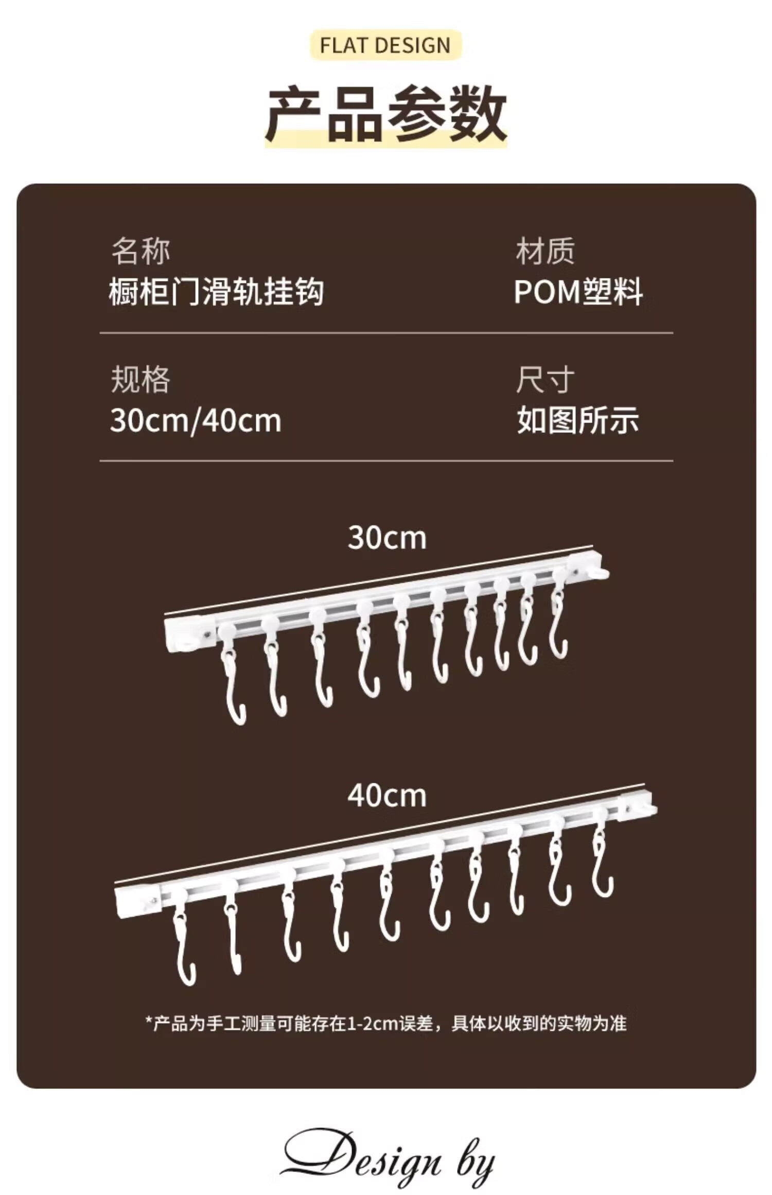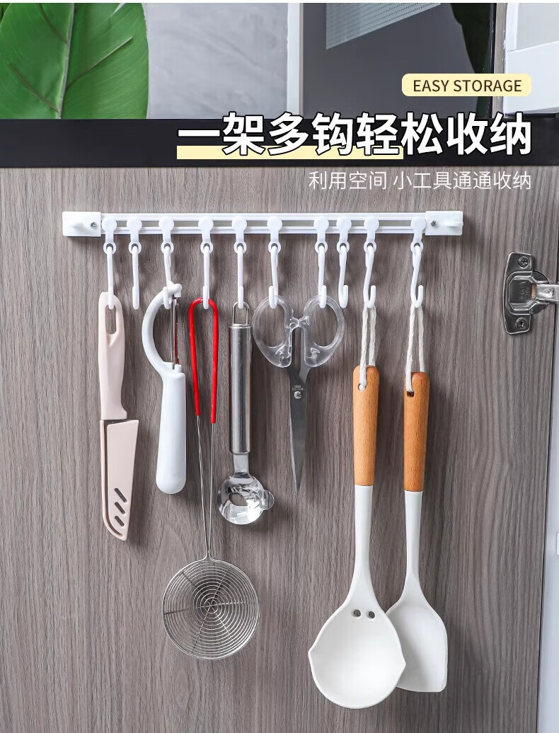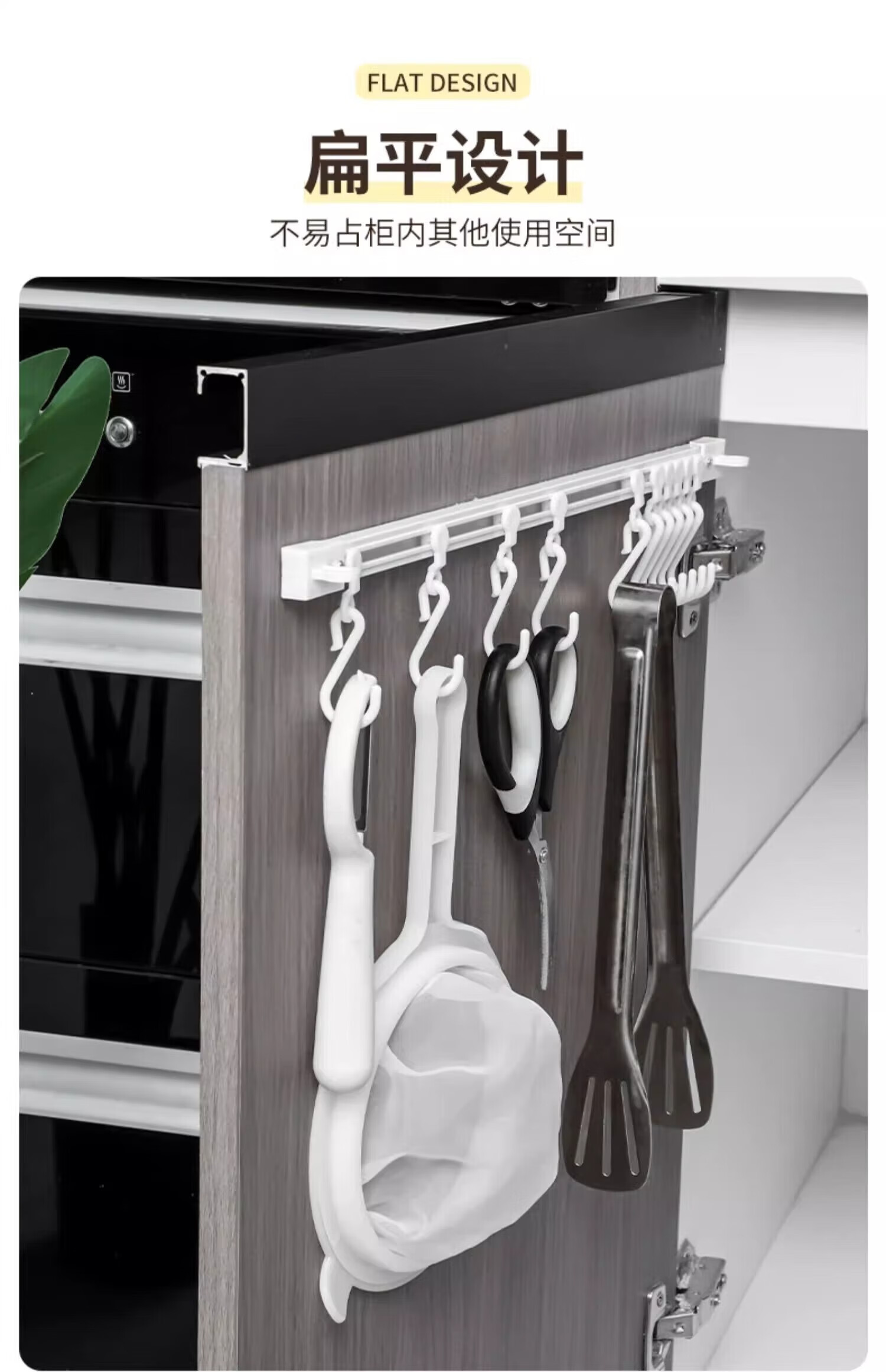 【甄选】厨房收纳滑动轨道挂钩柜门收纳挂钩免打孔橱柜门后收纳置 (1个装)30CM【送10个白色钩】