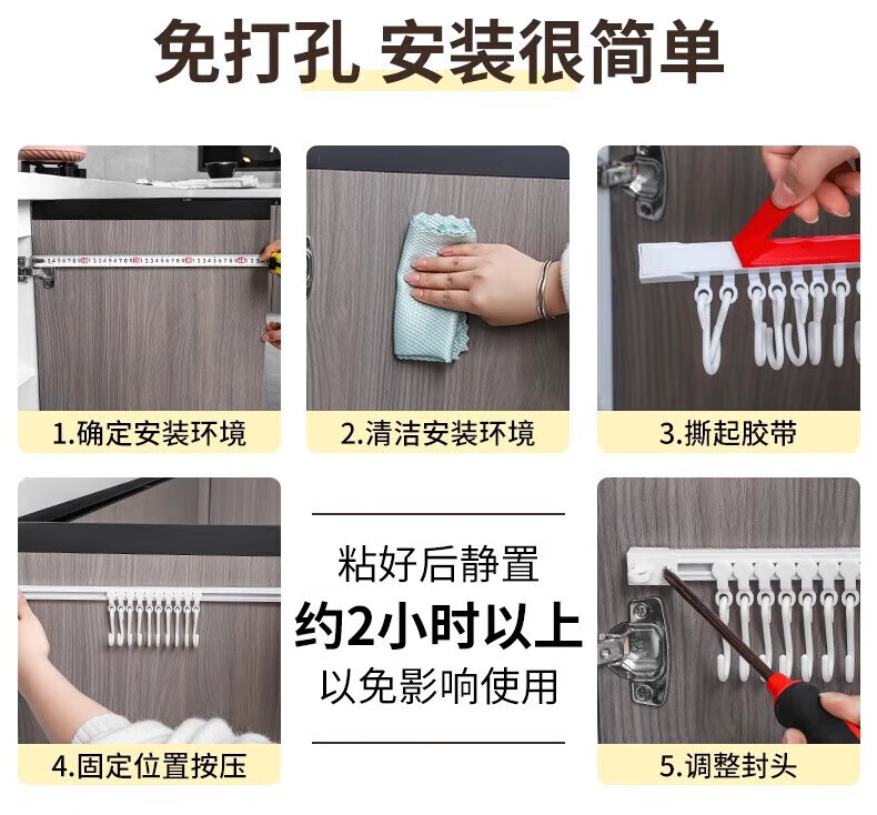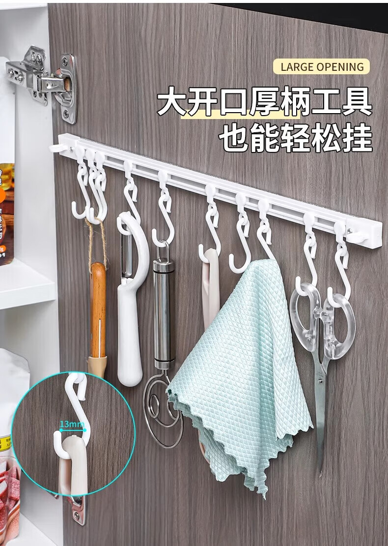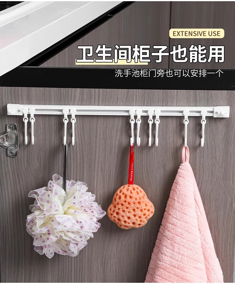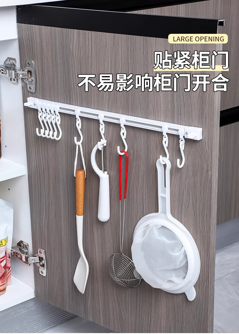 【甄选】厨房收纳滑动轨道挂钩柜门收纳挂钩免打孔橱柜门后收纳置 (1个装)30CM【送10个白色钩】