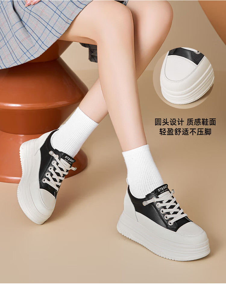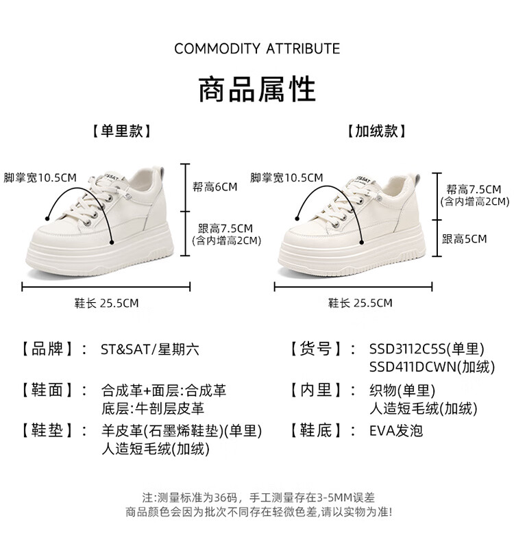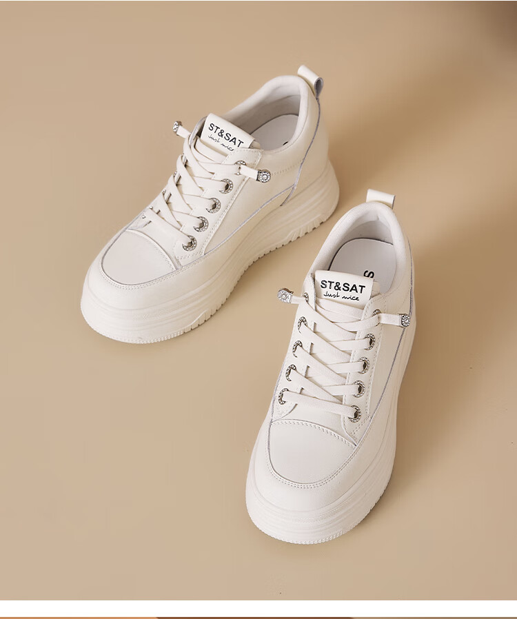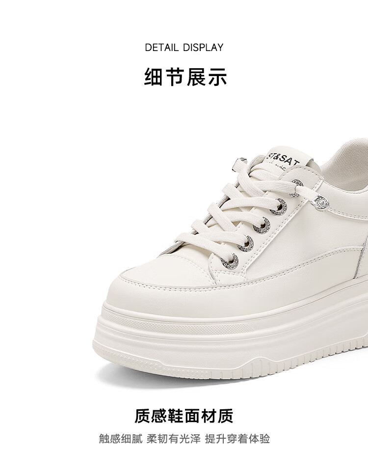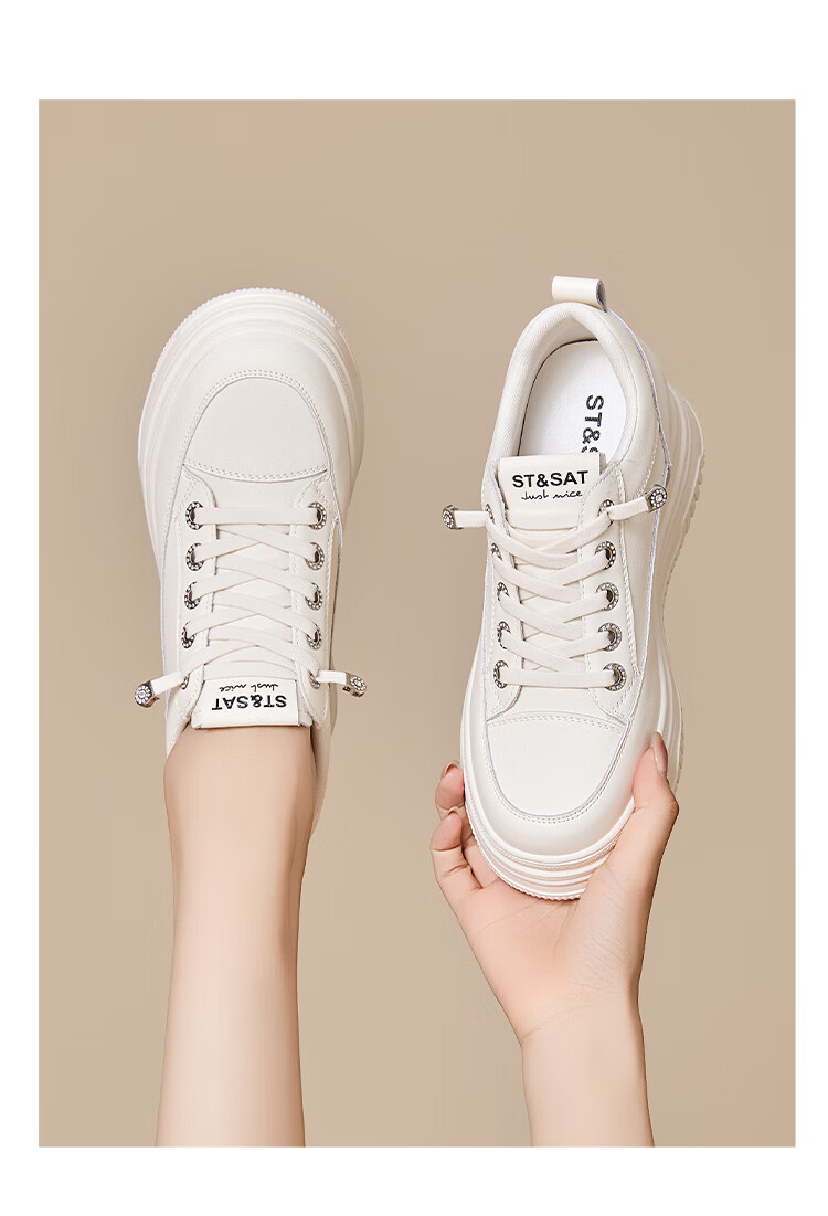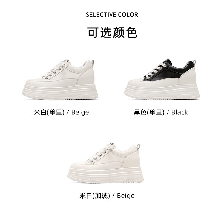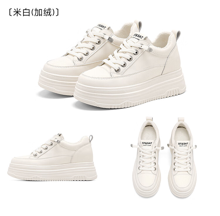 星期六厚底小白鞋女款2025新款冬季加绒女鞋经典百搭软底运动板鞋 米白 38