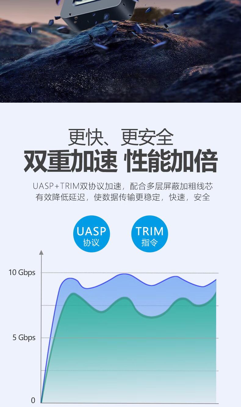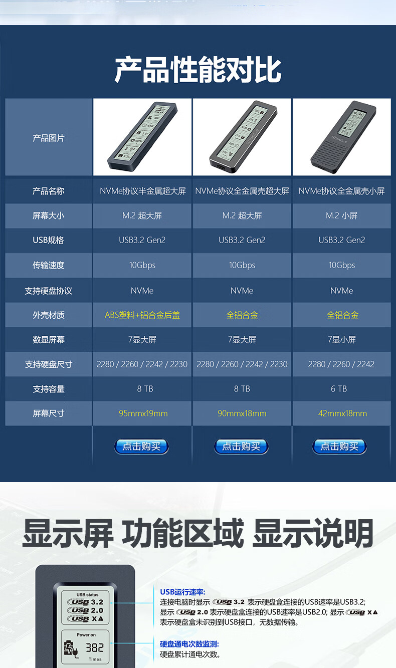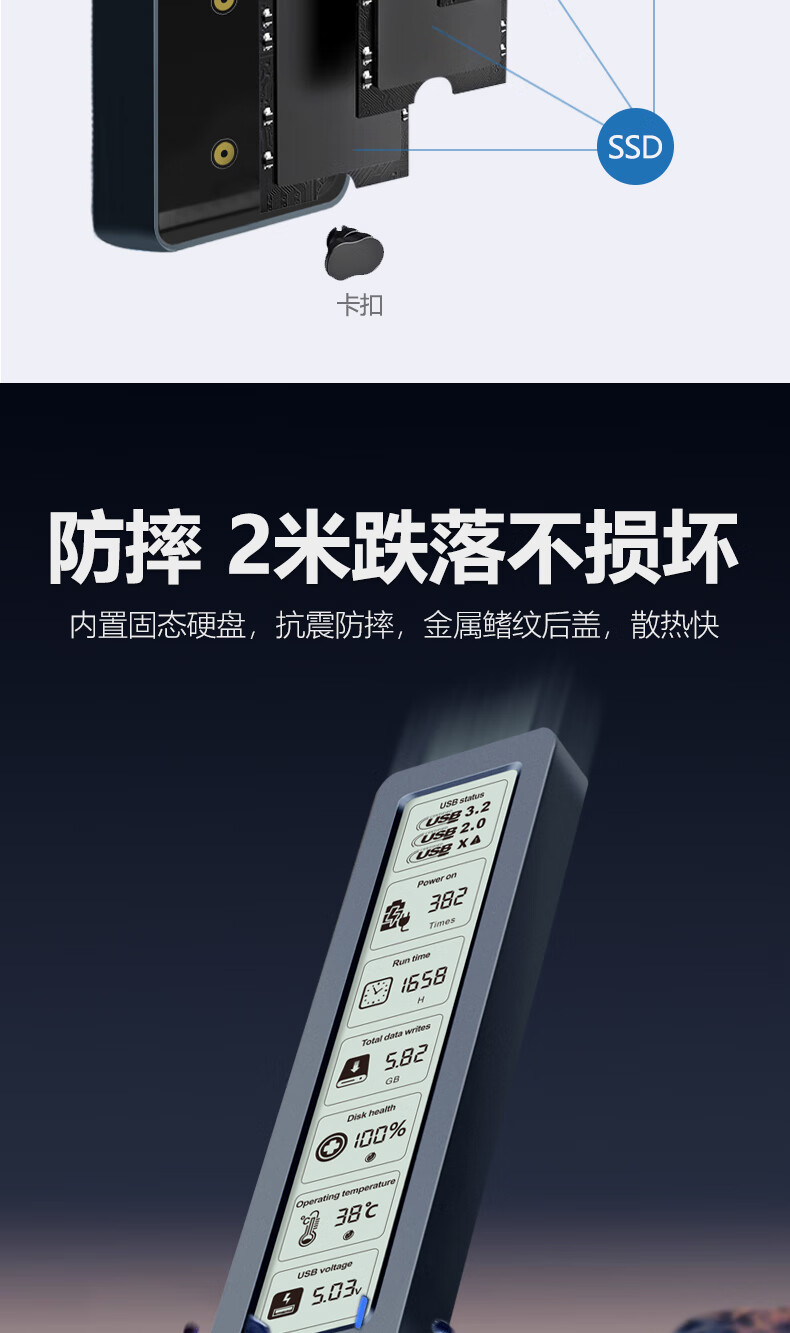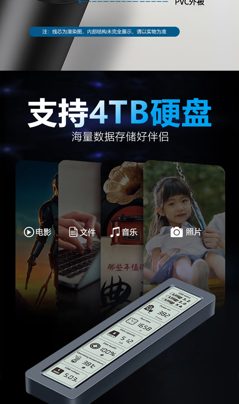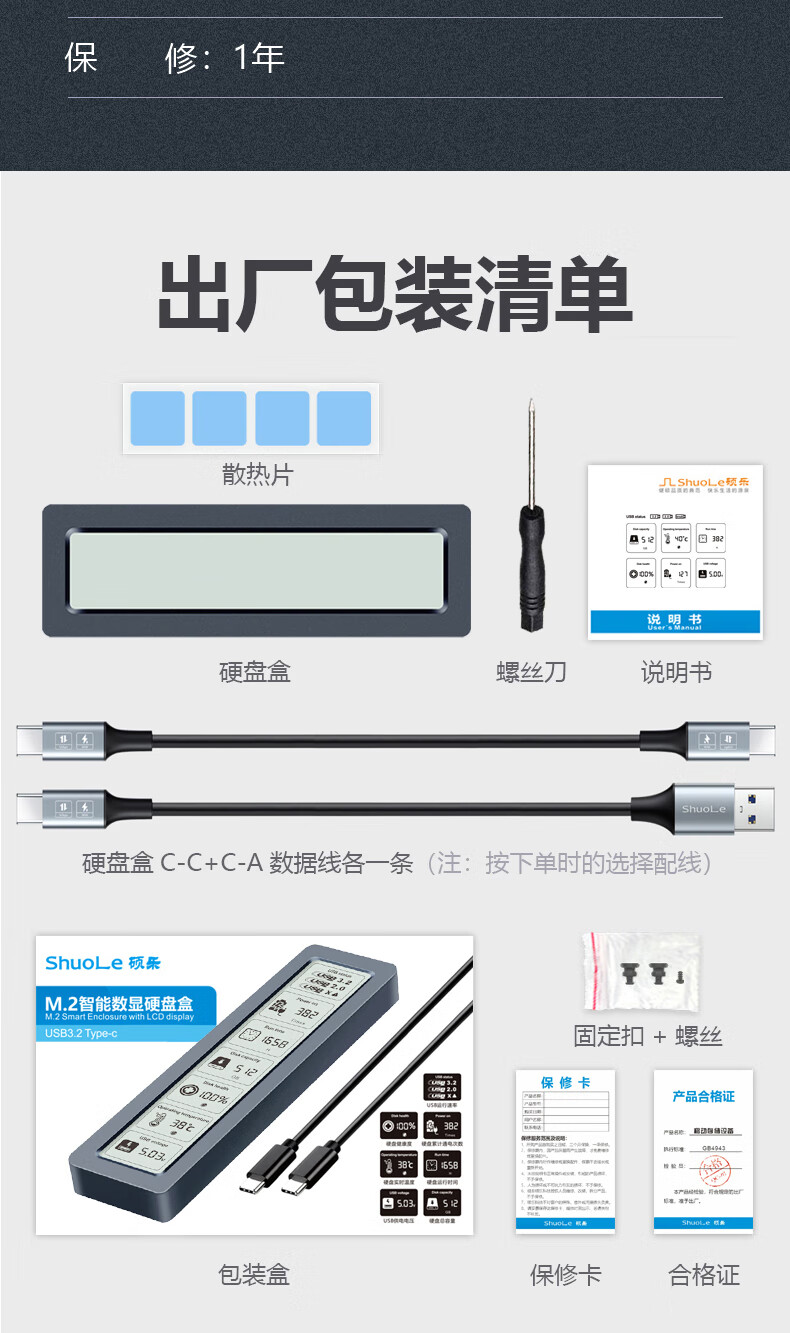 硕乐智能数显m.2固态SSD硬盘盒m2笔记本NVME协议SATA转接 单NVME协议10Gbps+双数据线