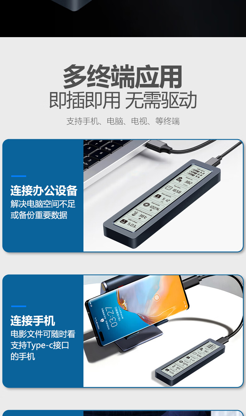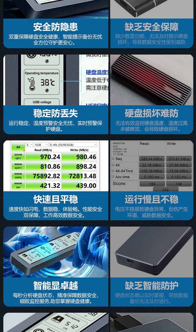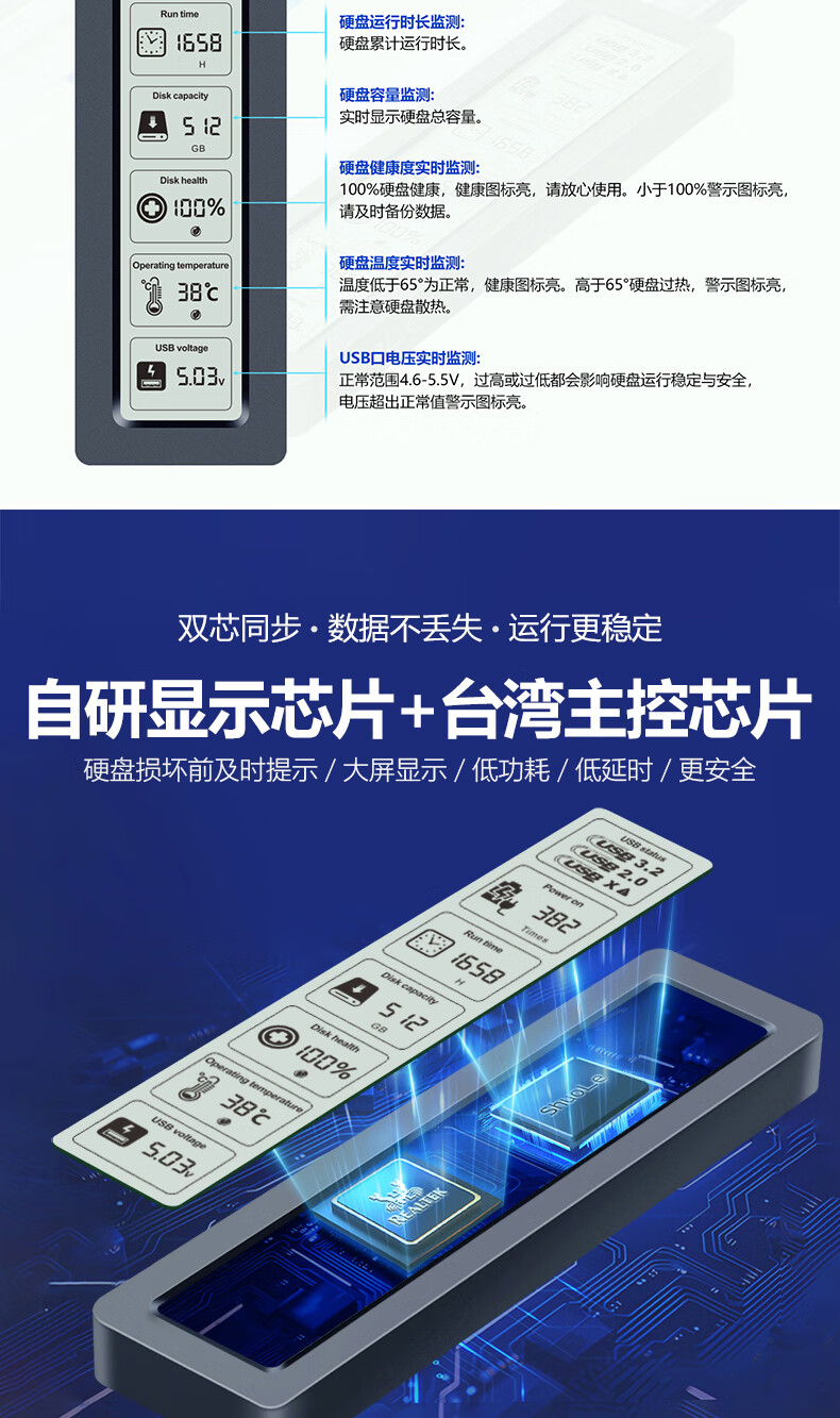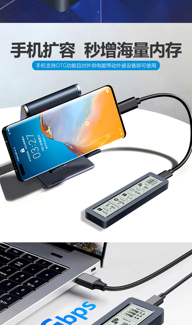 硕乐智能数显m.2固态SSD硬盘盒m2笔记本NVME协议SATA转接 单NVME协议10Gbps+双数据线