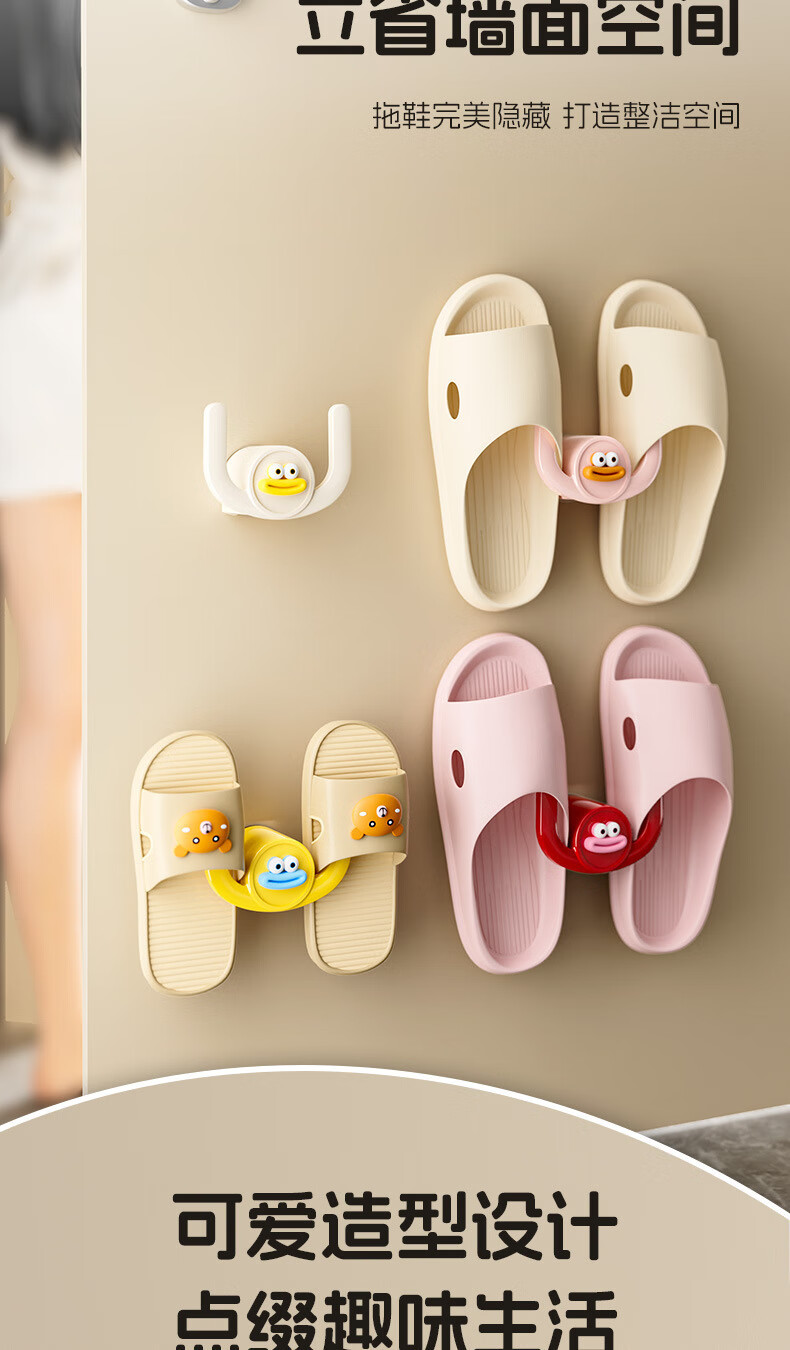 可爱浴室拖鞋架壁挂式架免打孔鞋子卫生间厕所收纳沥水置物架挂钩 白色一个