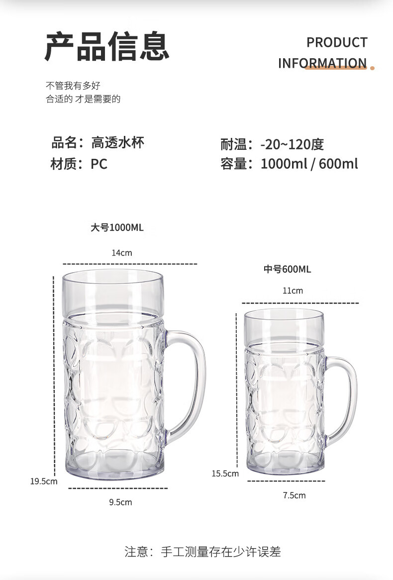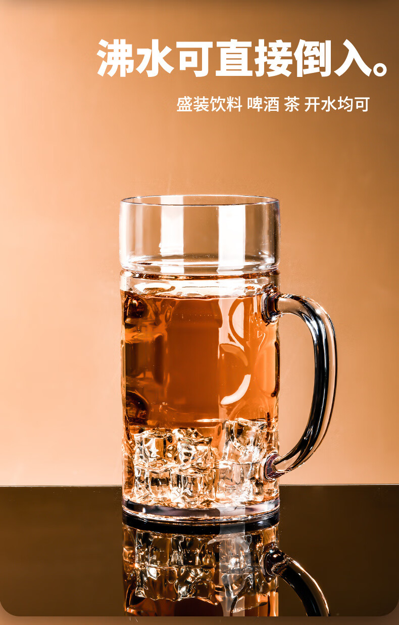 【严选好物】亚克力扎啤杯塑料啤酒杯大容量英雄杯菠萝杯防摔商用 1000ml PC材质耐温-20-120°