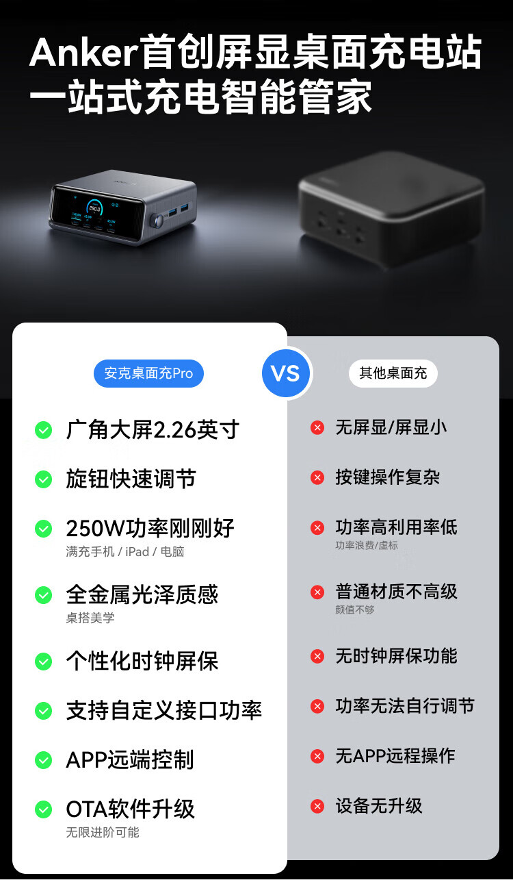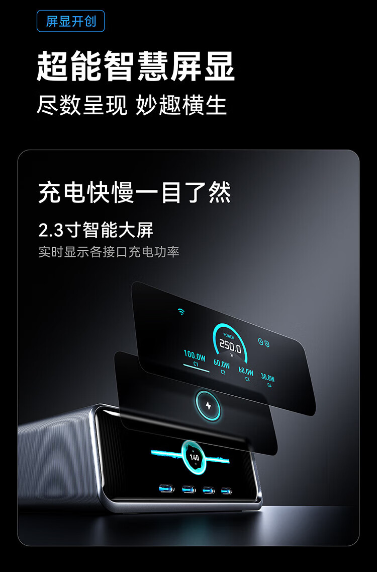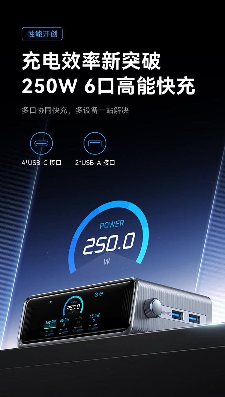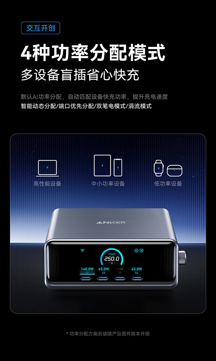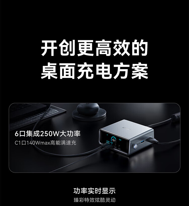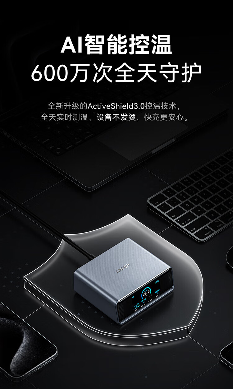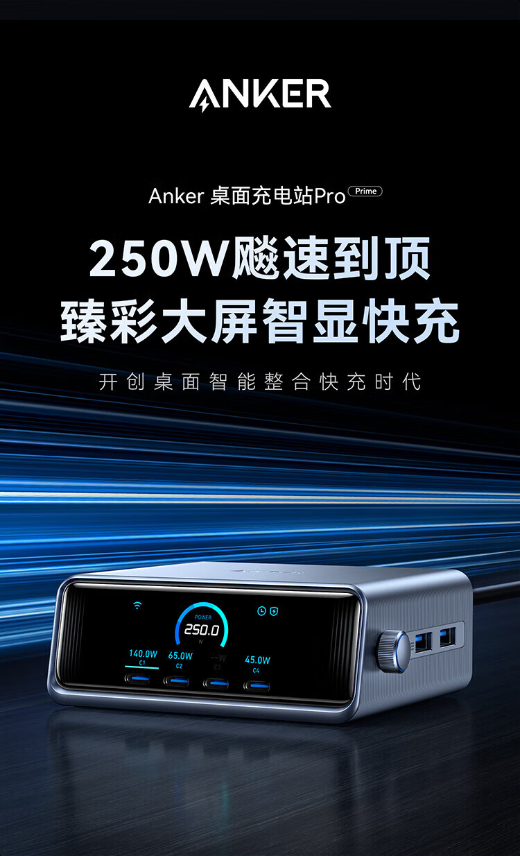 ANKER【苹果17上市】安克桌面充pro250W屏显桌面充电站Prime氮化镓type-c多口快充头适用iphone17笔记本 【250W氮化镓】智能屏显六合一|超级桌面充电站
