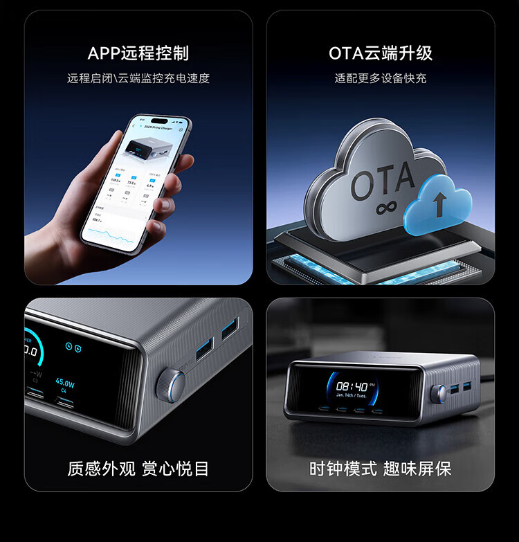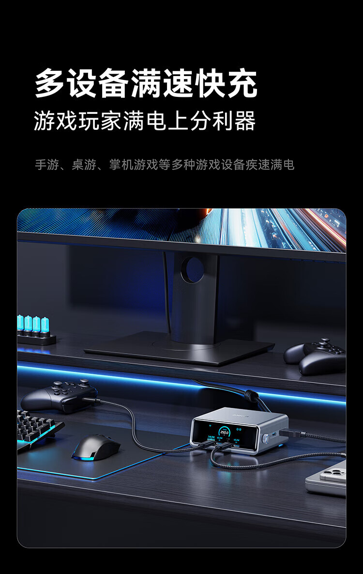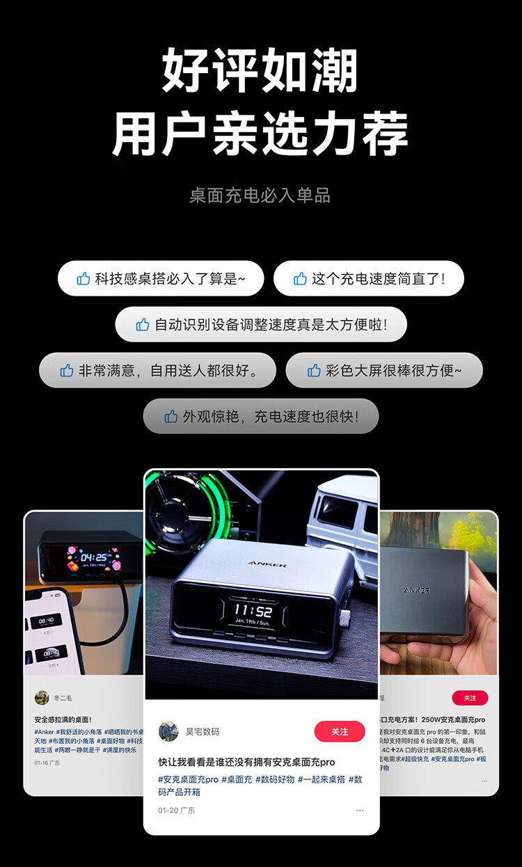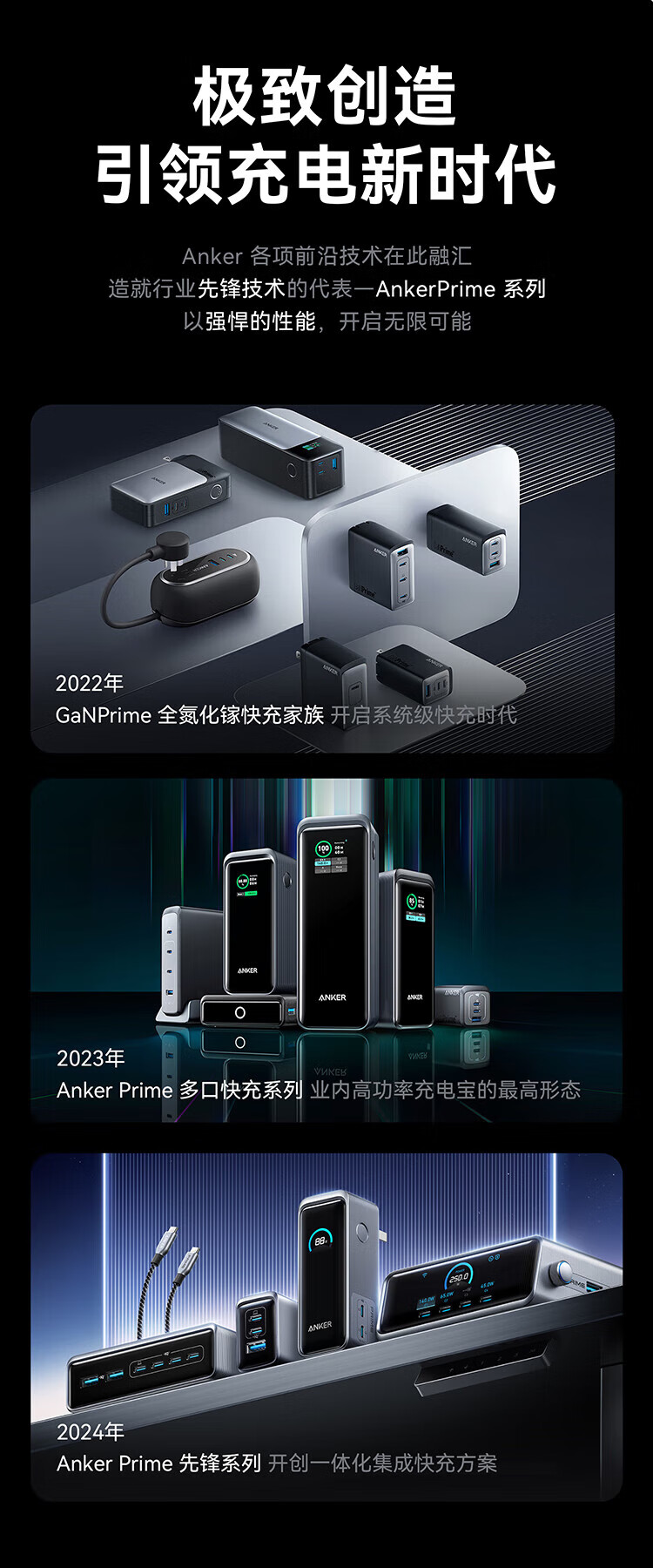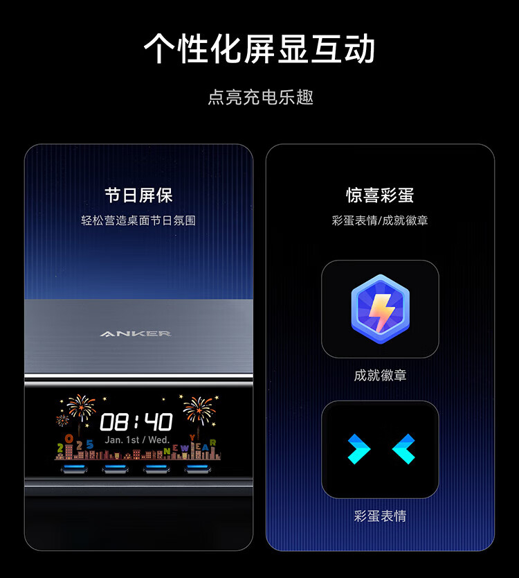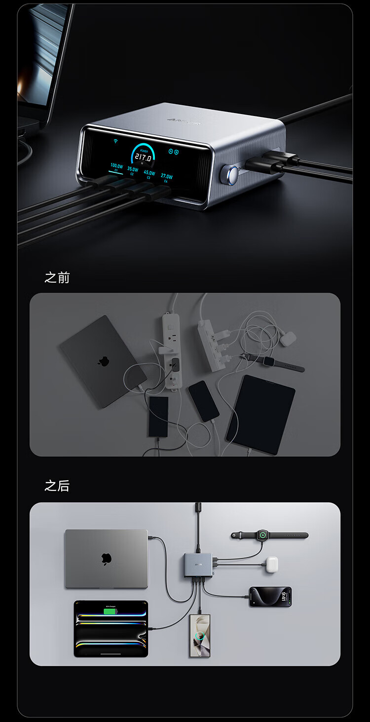 ANKER【苹果17上市】安克桌面充pro250W屏显桌面充电站Prime氮化镓type-c多口快充头适用iphone17笔记本 【250W氮化镓】智能屏显六合一|超级桌面充电站