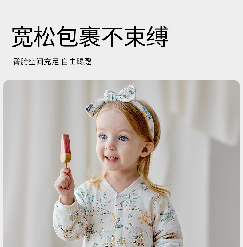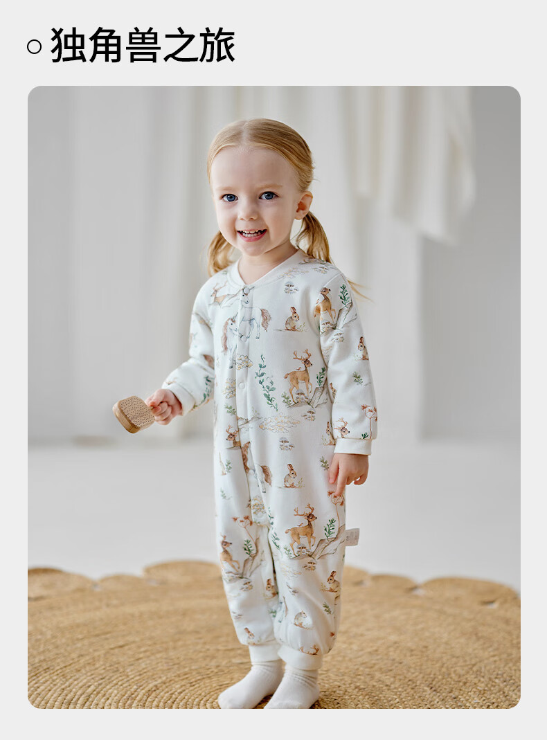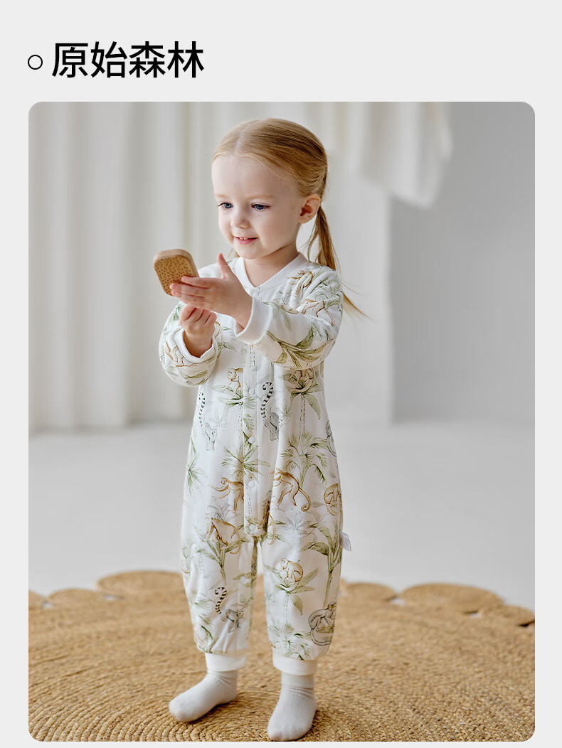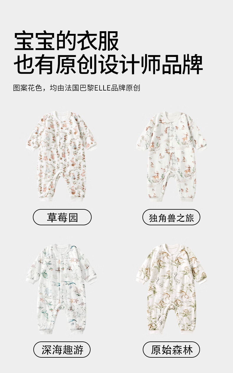 ELLE BABY新生儿襁褓夹棉哈衣新生儿连体衣秋冬加厚儿童宝宝爬服初生儿 原始森林 66cm 【推荐身高59cm-66cm】