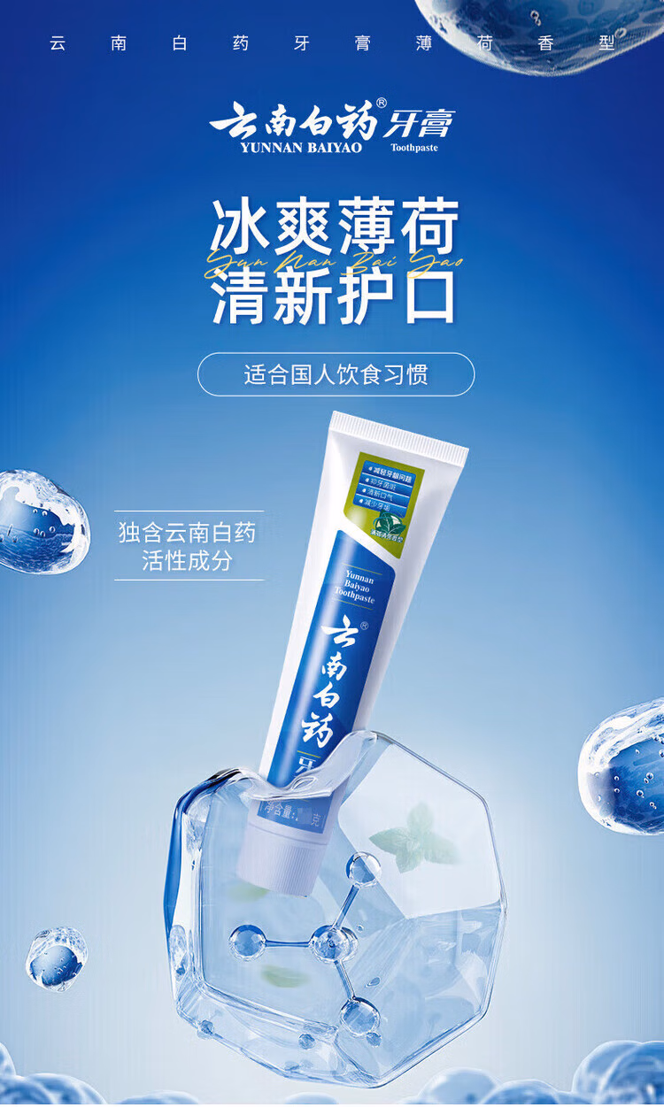 云南白药牙膏护龈洁齿留兰香215薄荷230清新口气去黄亮白牙齿 留兰香型215*4