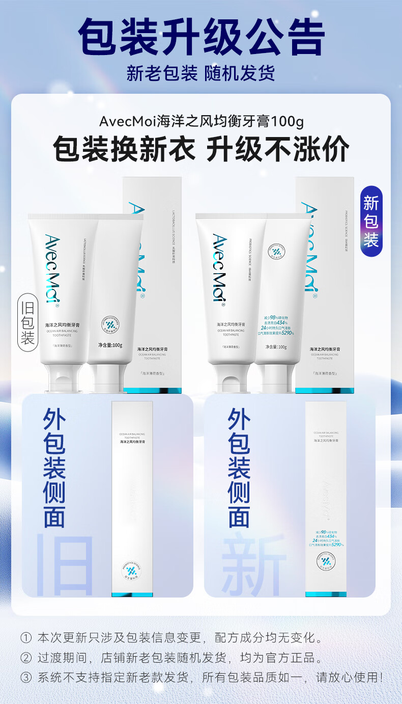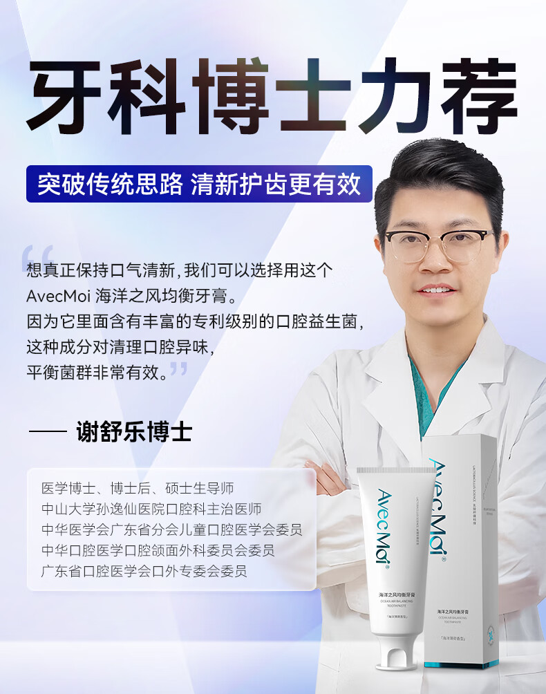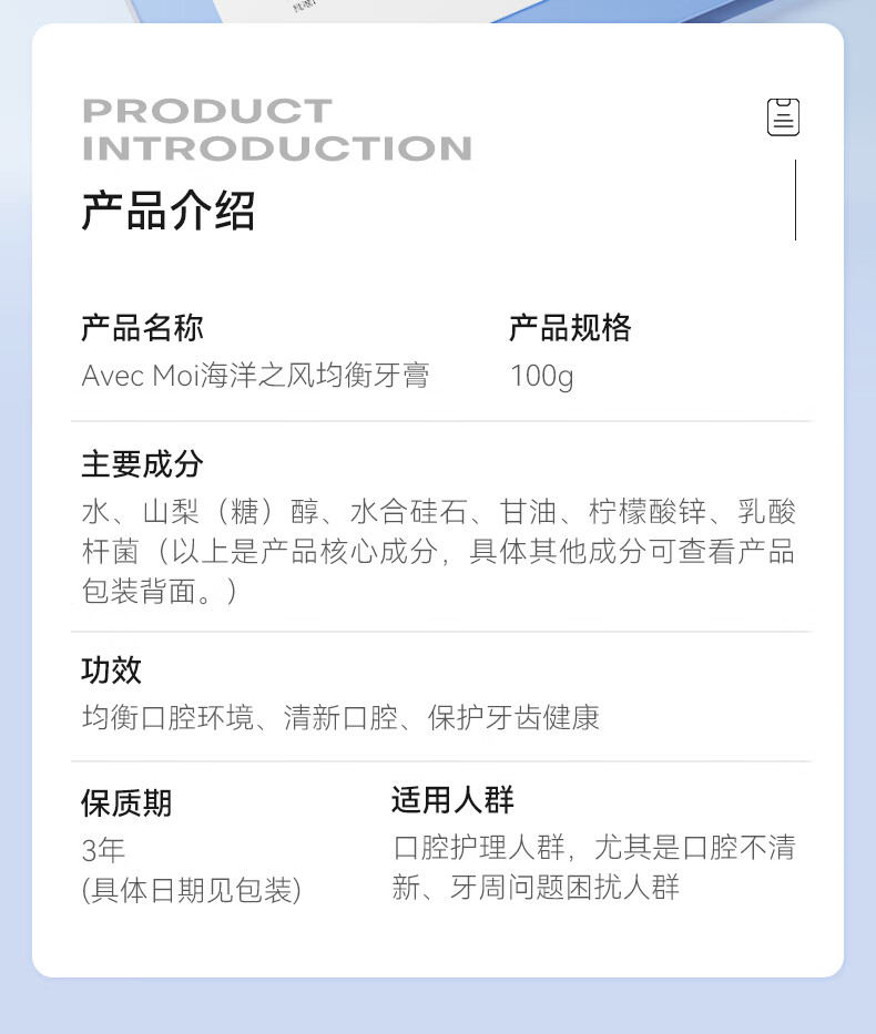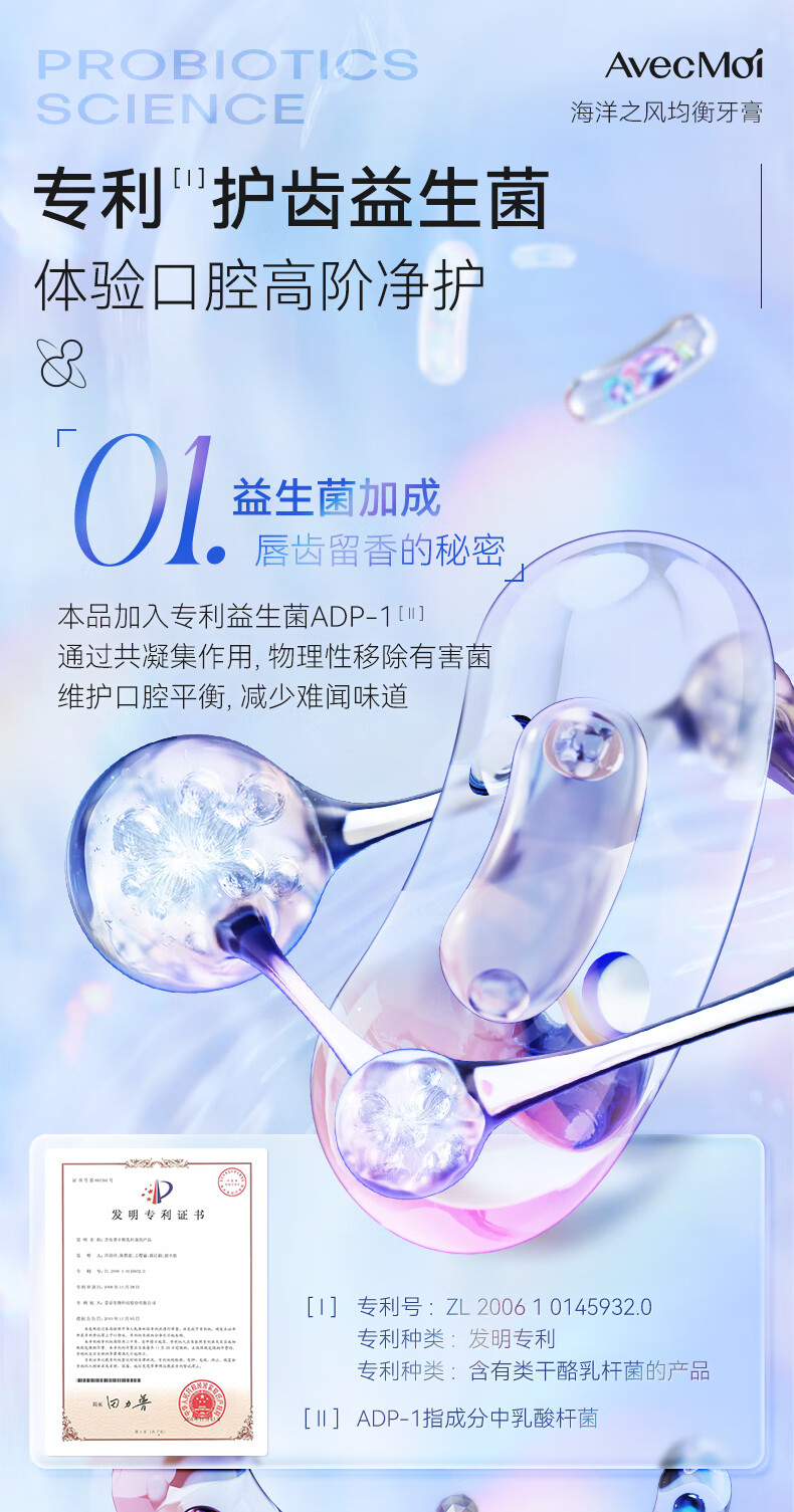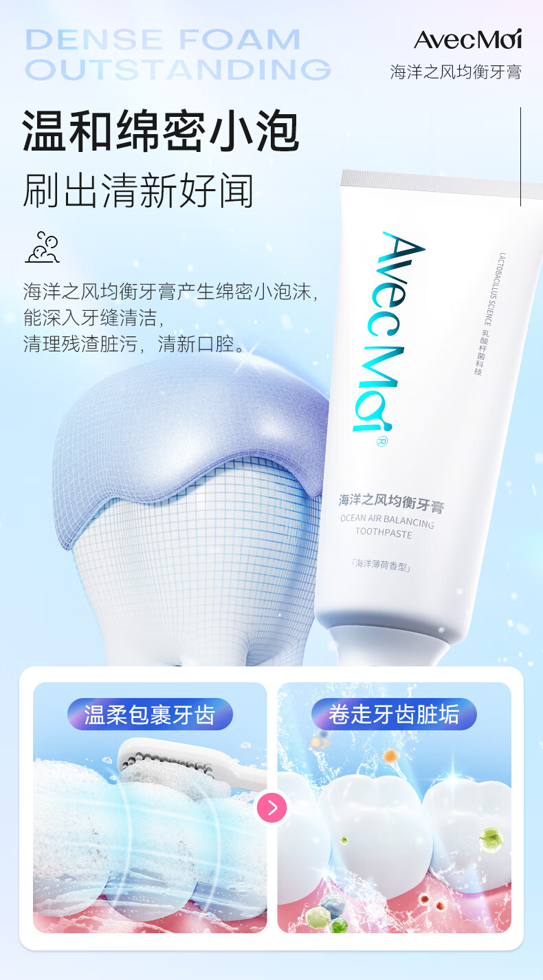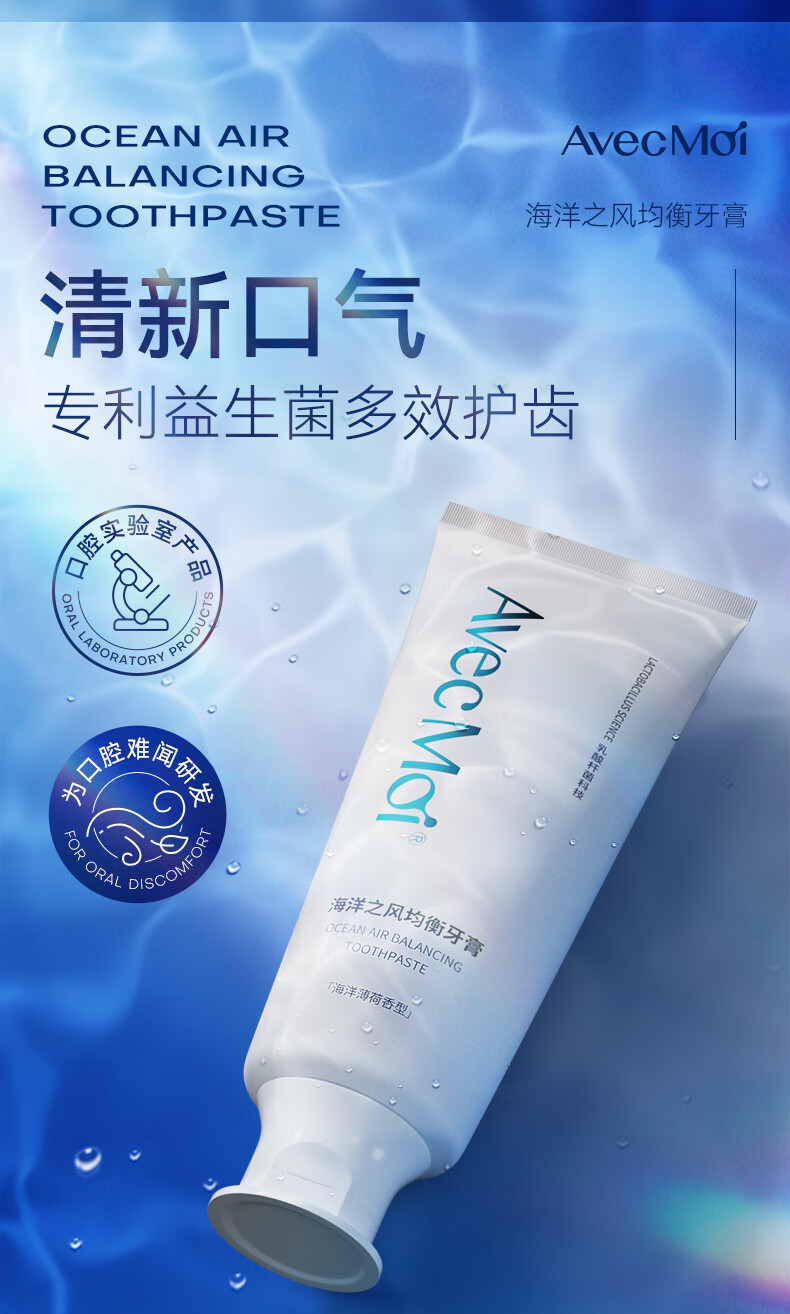 Avec Moi牙膏 海洋之风 益生菌均衡靓白口腔护理 100g/支