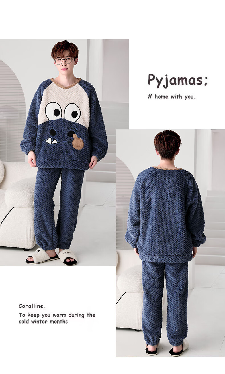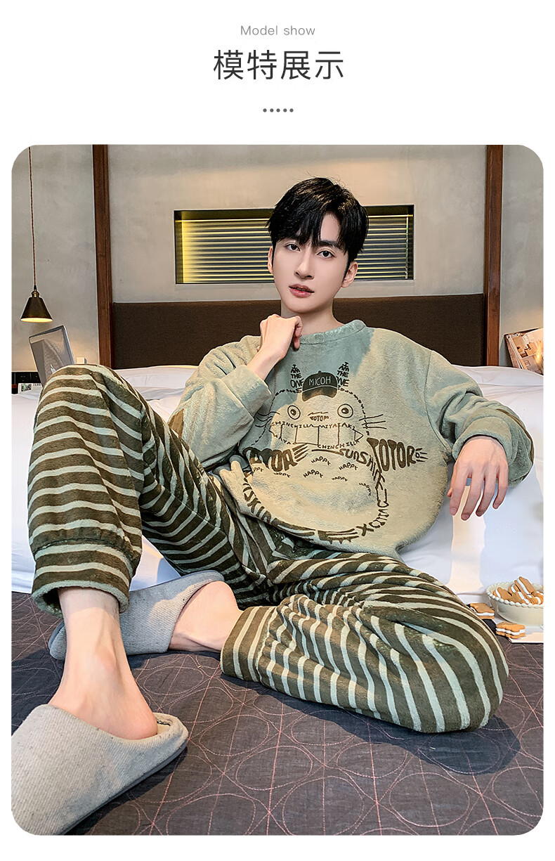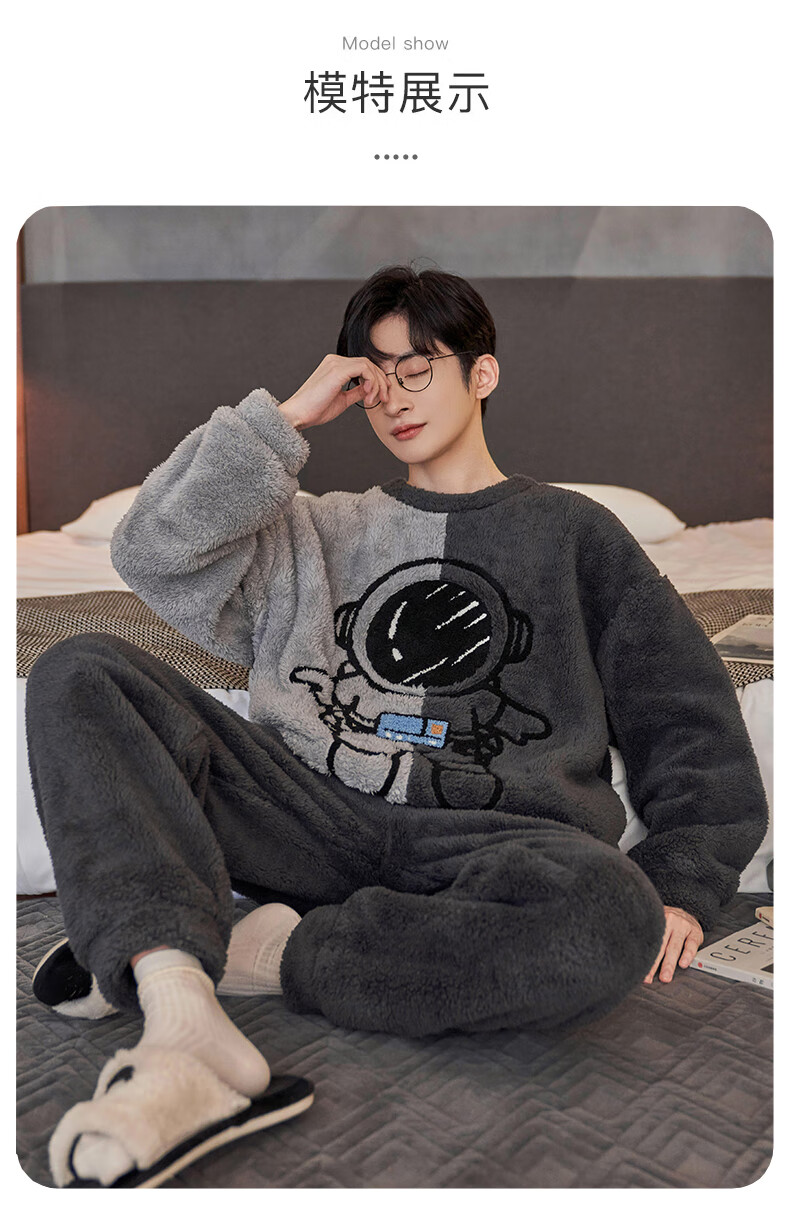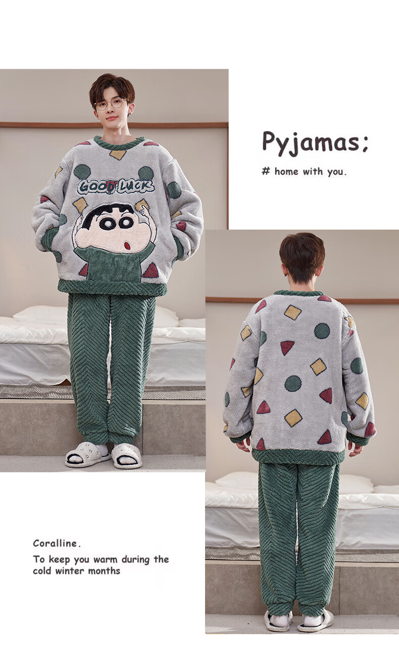 萧淑妃睡衣男冬季加厚保暖法兰绒加大码青少年学生原创卡通珊瑚绒家居服 蜡笔小新 5XL