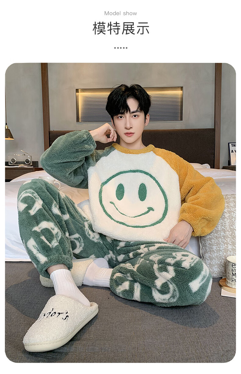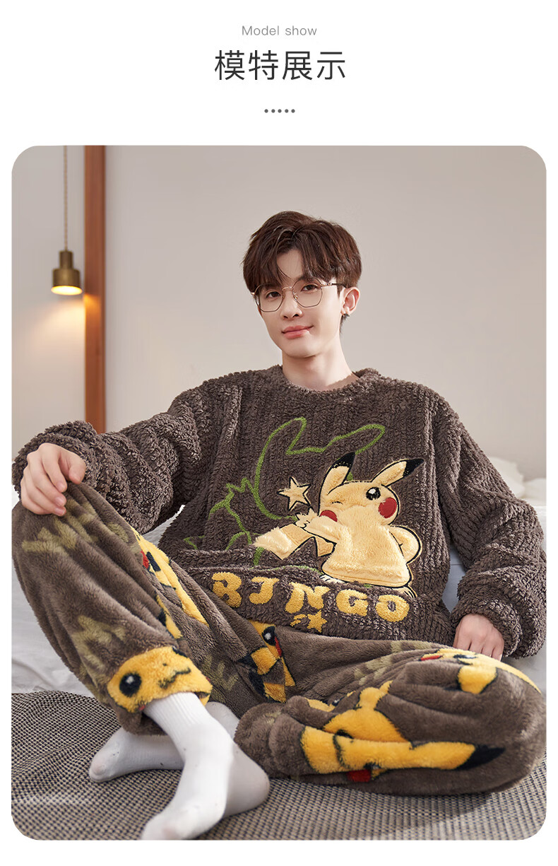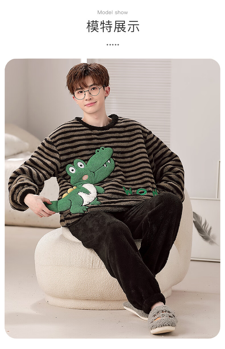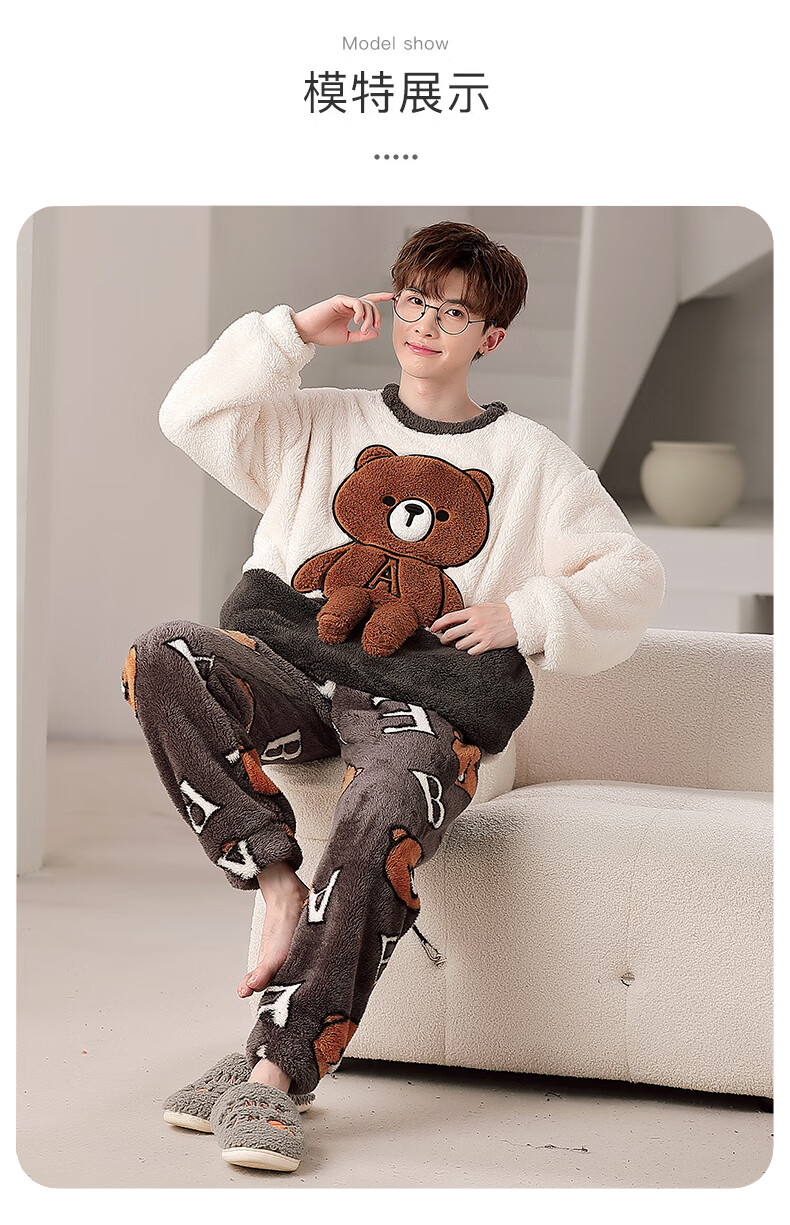 萧淑妃睡衣男冬季加厚保暖法兰绒加大码青少年学生原创卡通珊瑚绒家居服 蜡笔小新 5XL