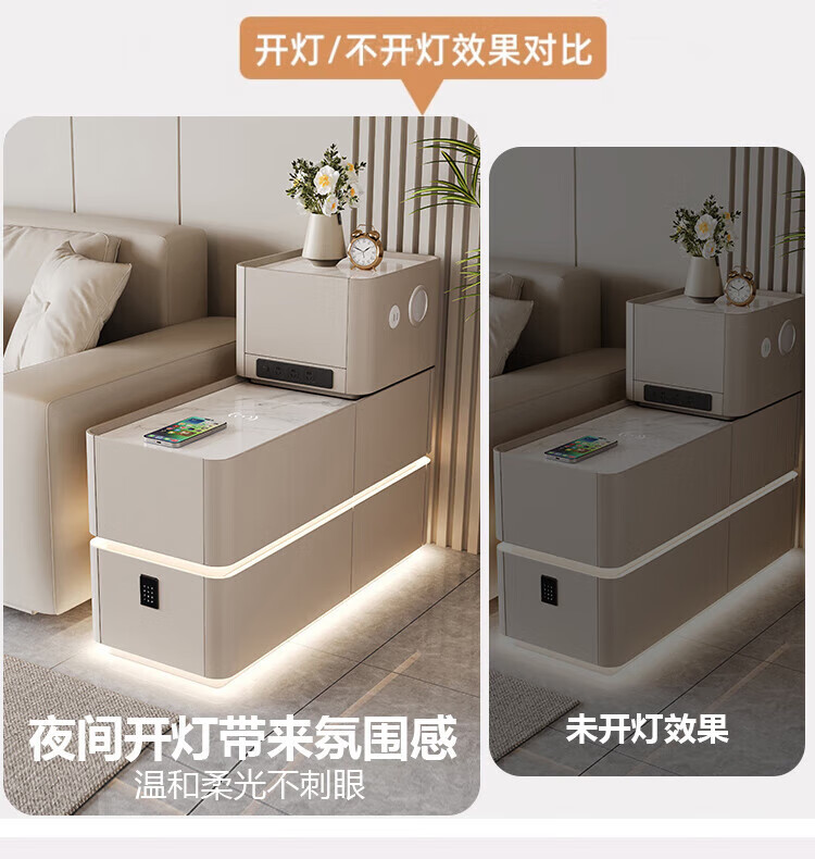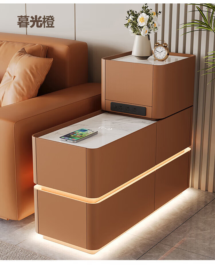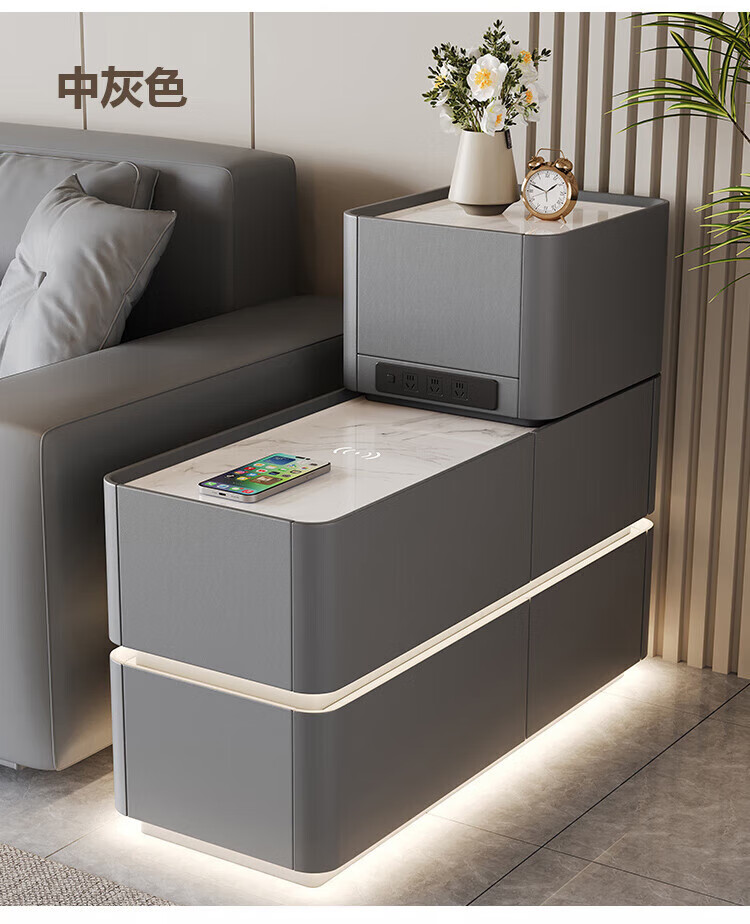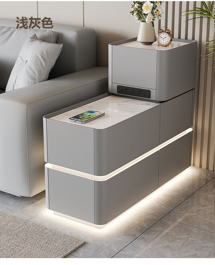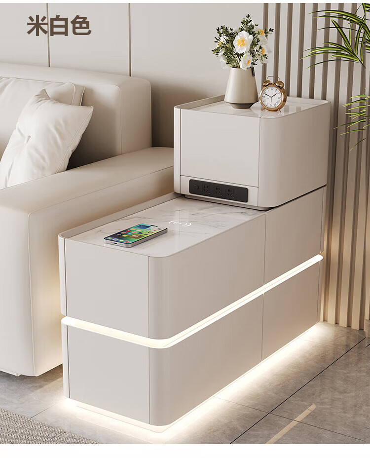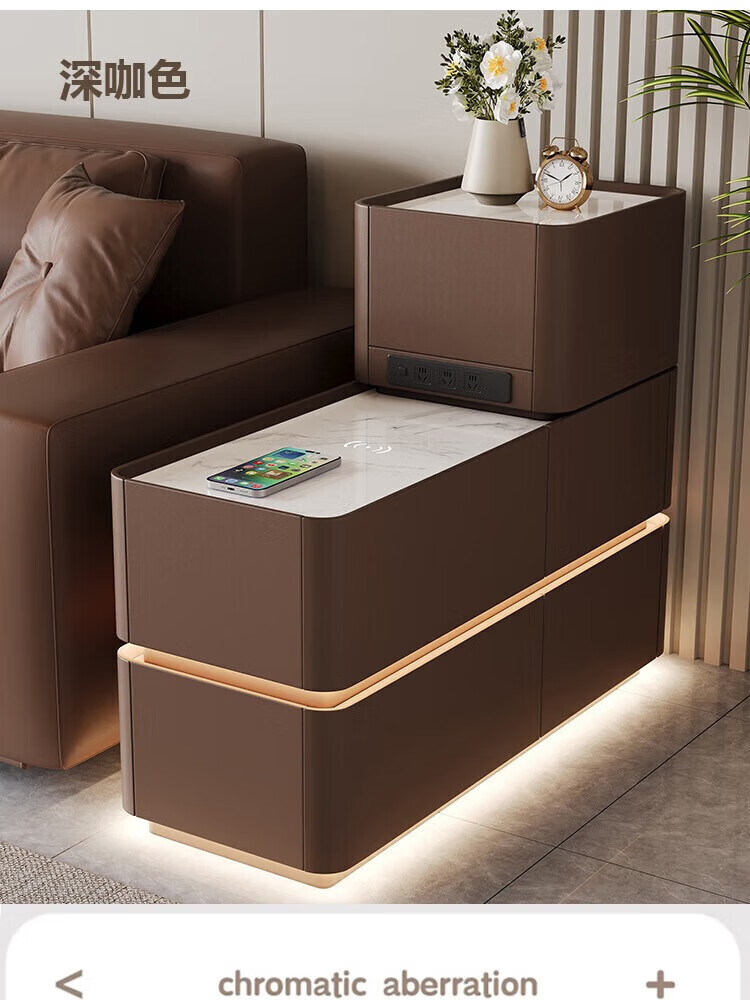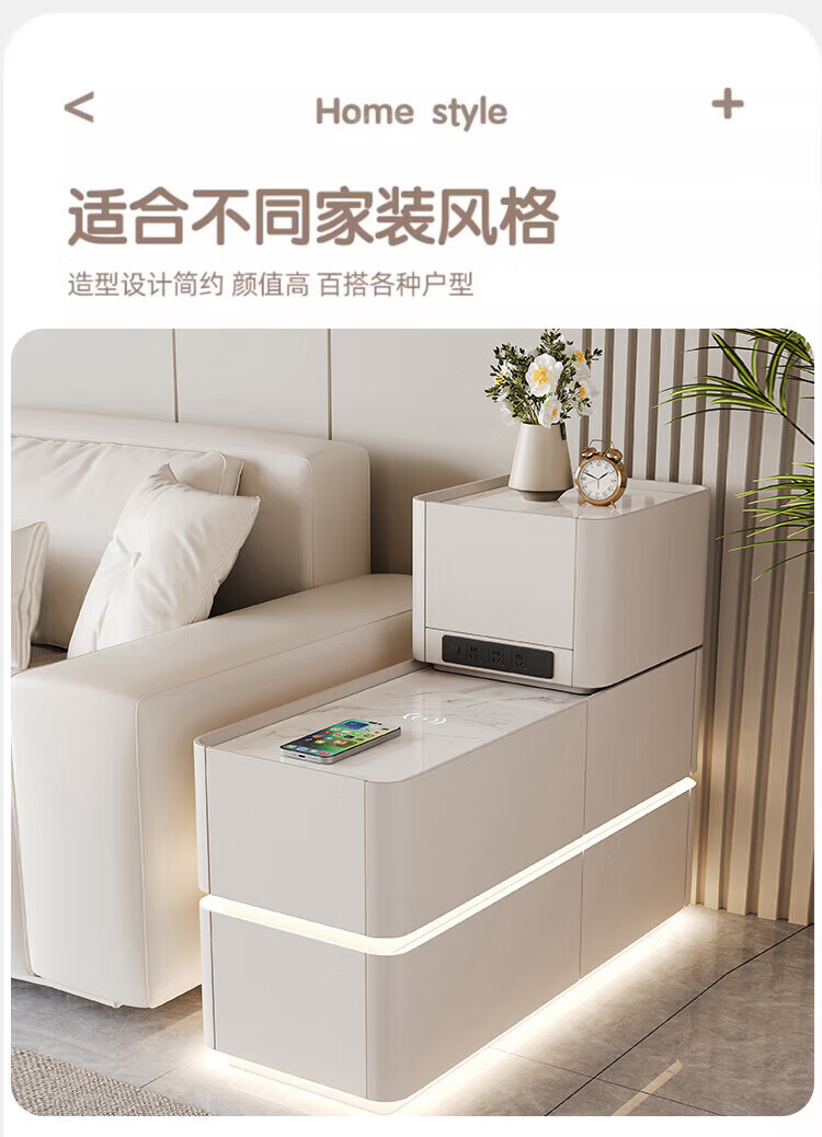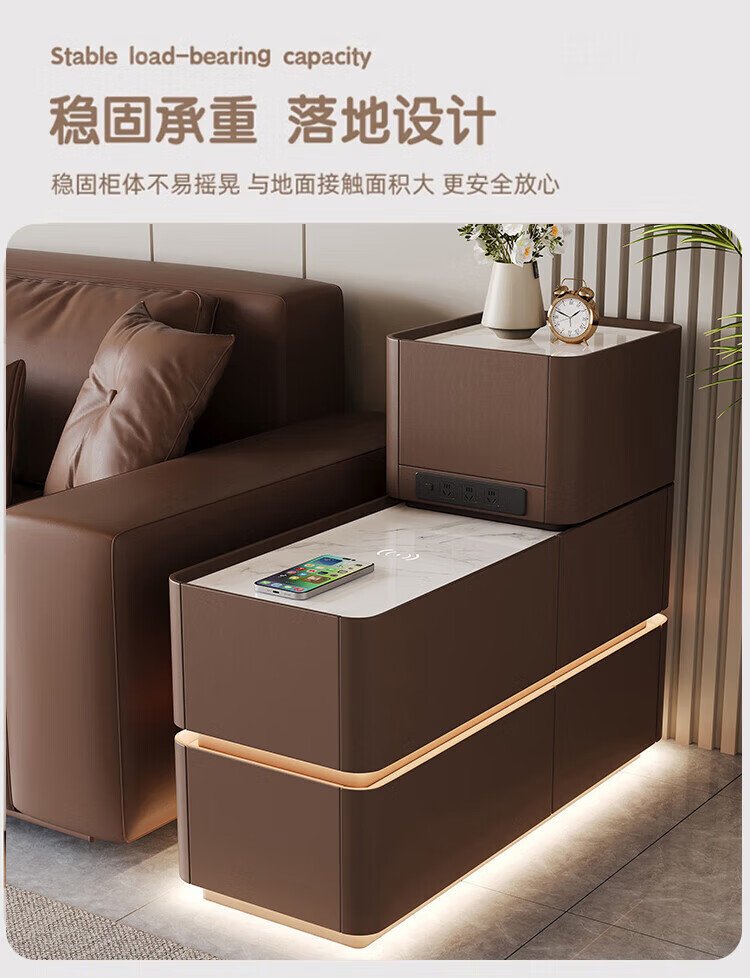轻奢智能沙发边柜客厅高级感边几新款实木侧边柜简约置物柜收纳柜 钢化玻璃台面+公牛插座+语音灯 宽40*深90*高85-侧边抽屉方向备注