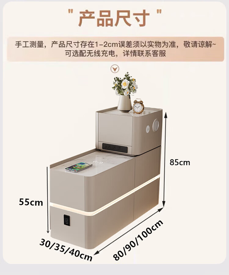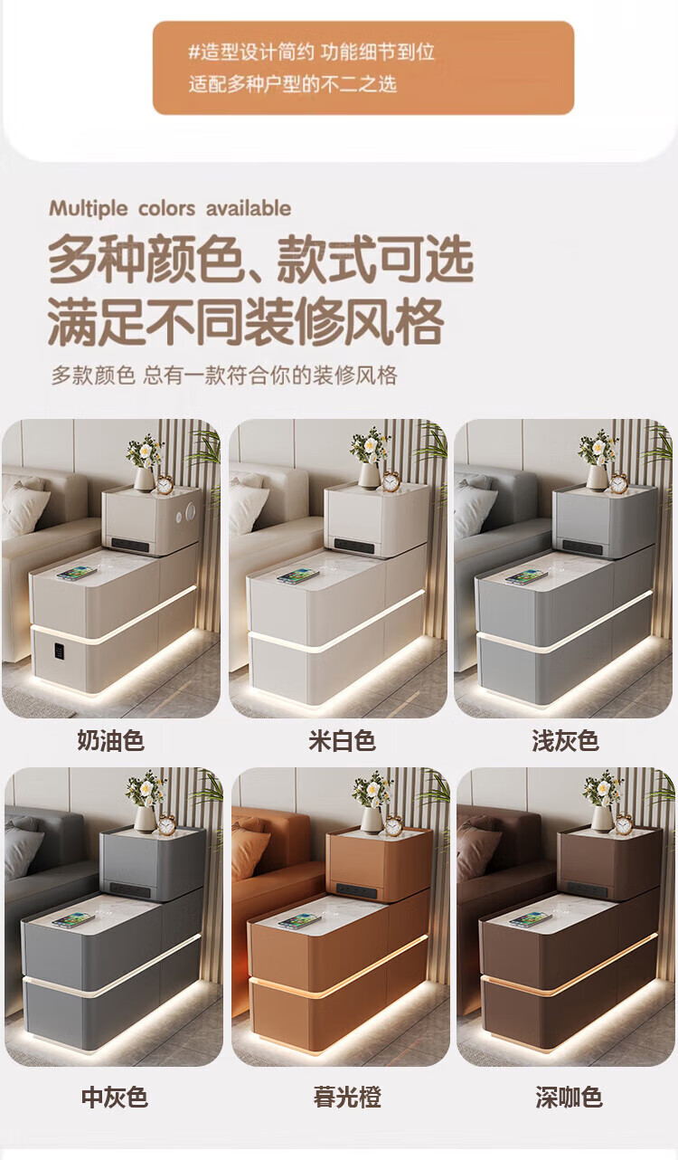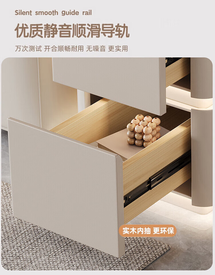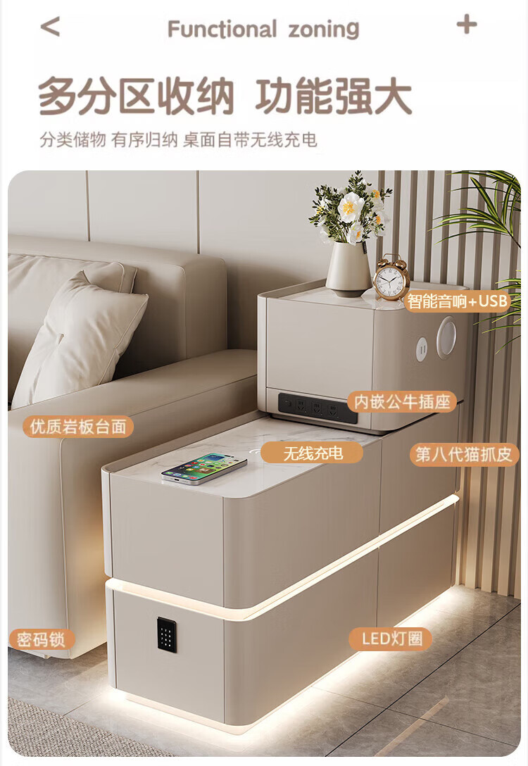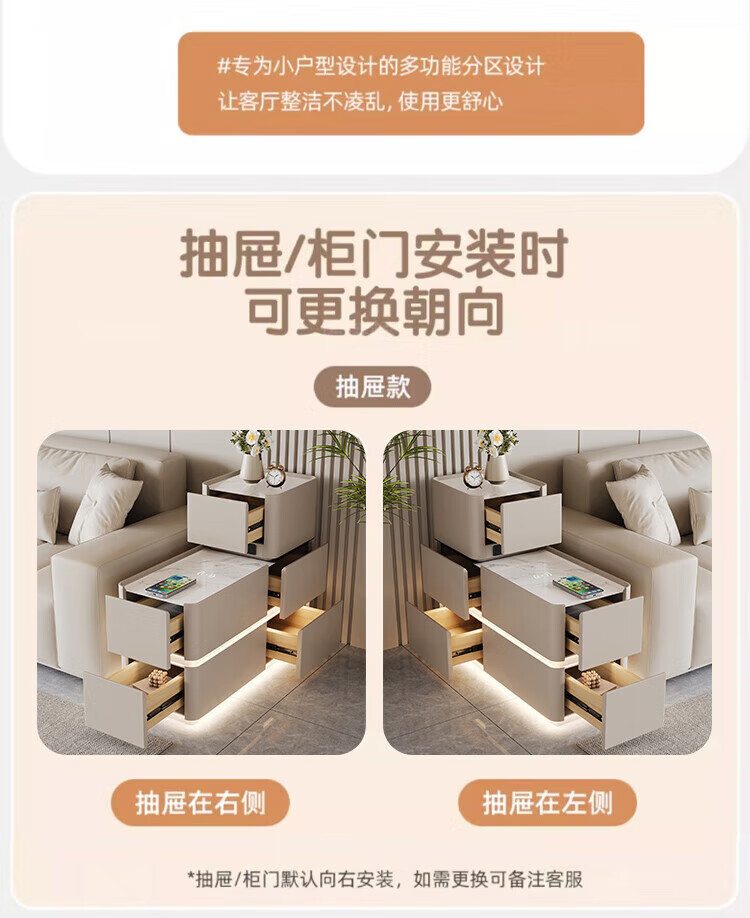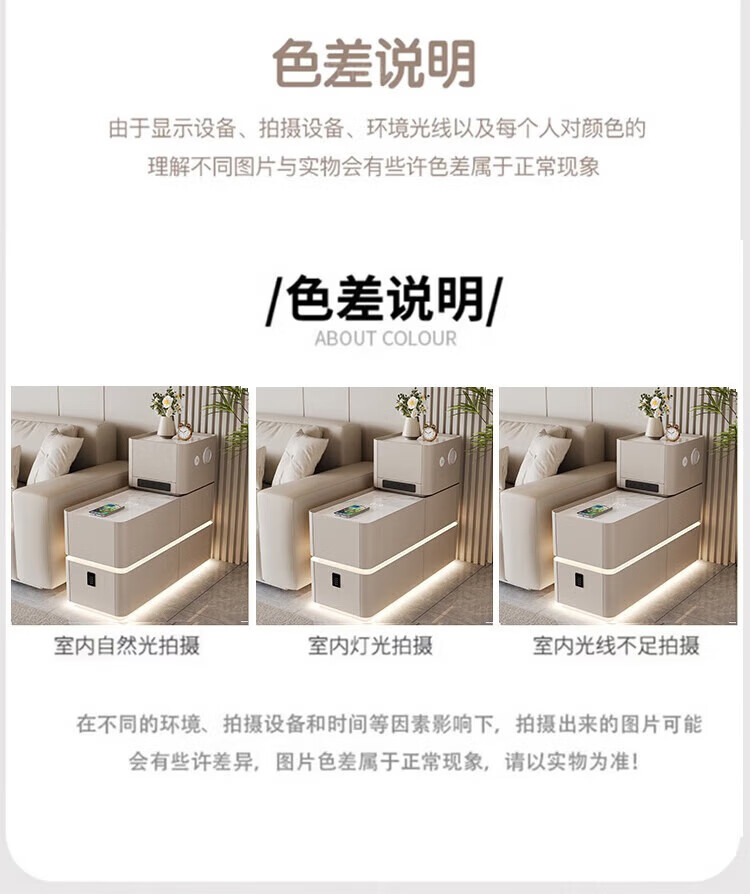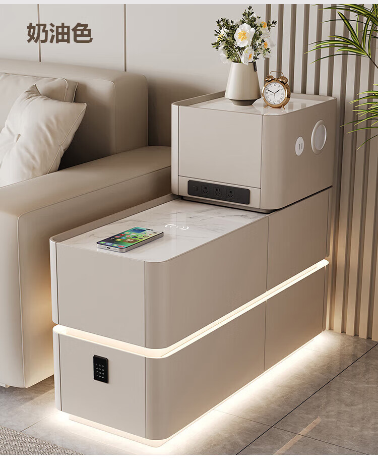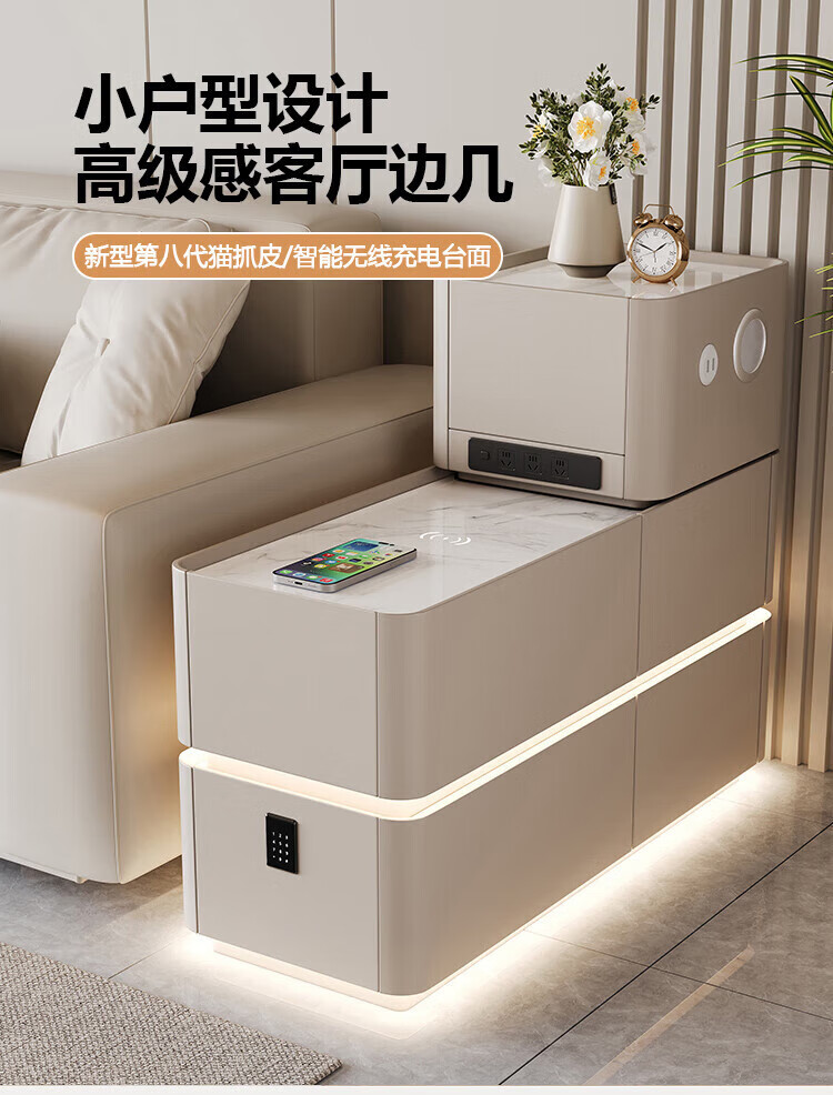 轻奢智能沙发边柜客厅高级感边几新款实木侧边柜简约置物柜收纳柜 钢化玻璃台面+公牛插座+语音灯 宽40*深90*高85-侧边抽屉方向备注