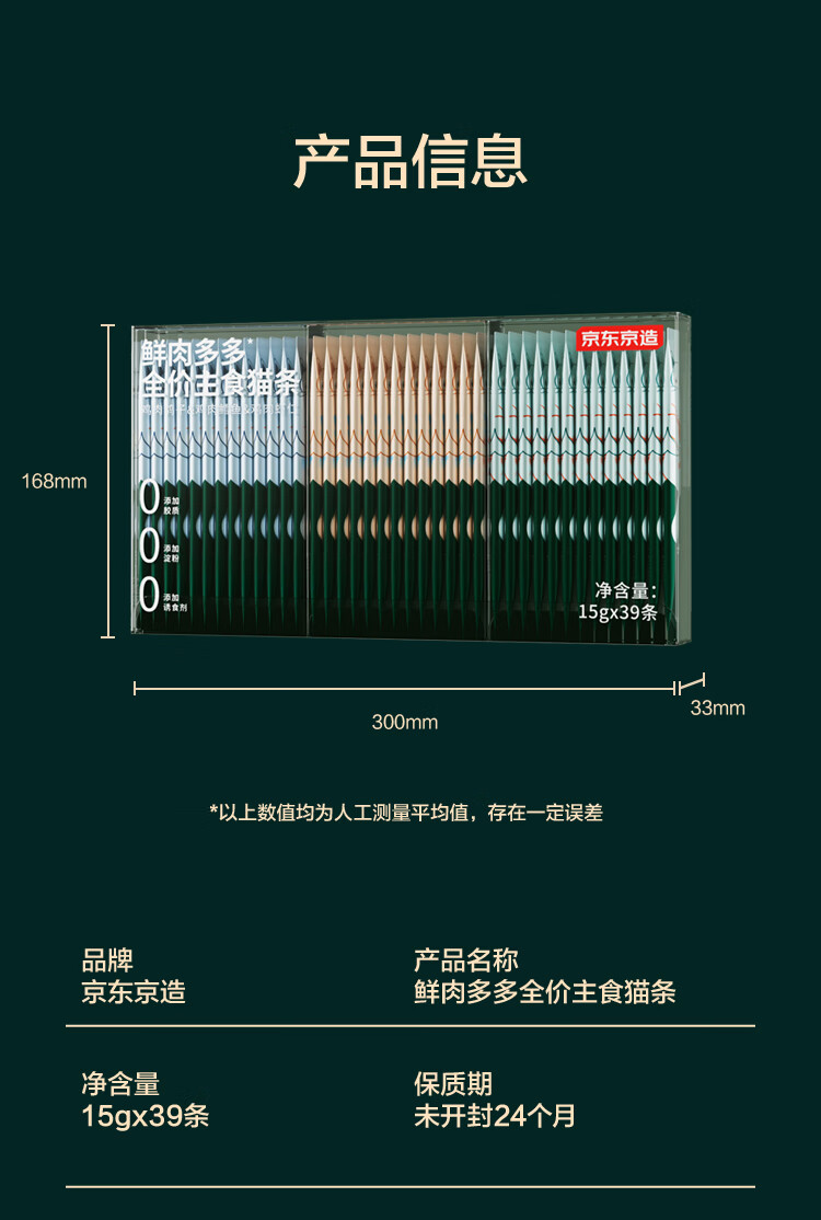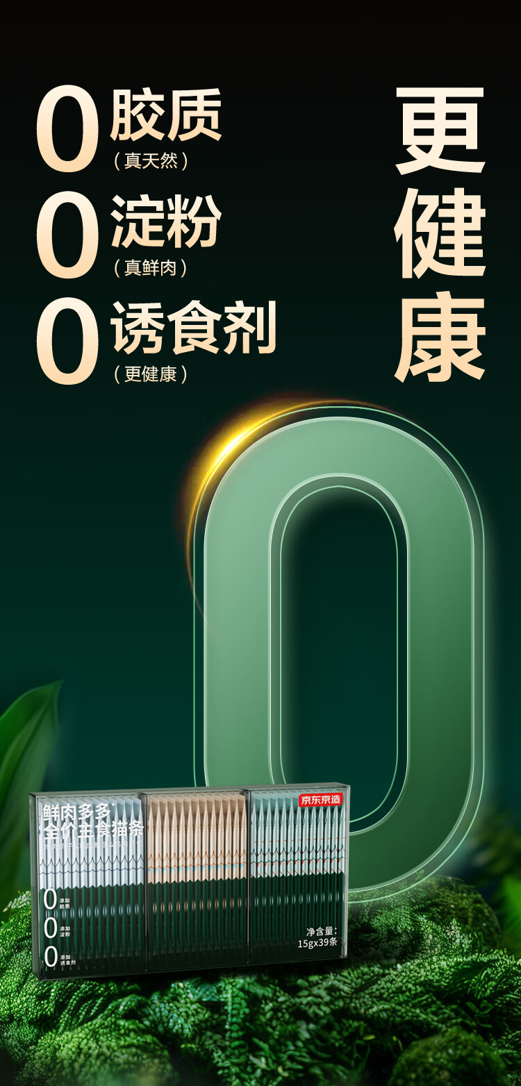 京东京造 鲜肉多多全价主食猫条15g*39支 3拼猫零食补水鸡肉鱼油美毛0添加