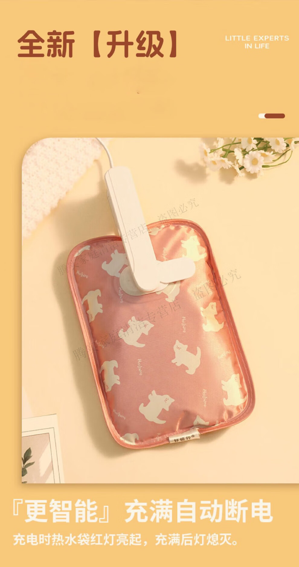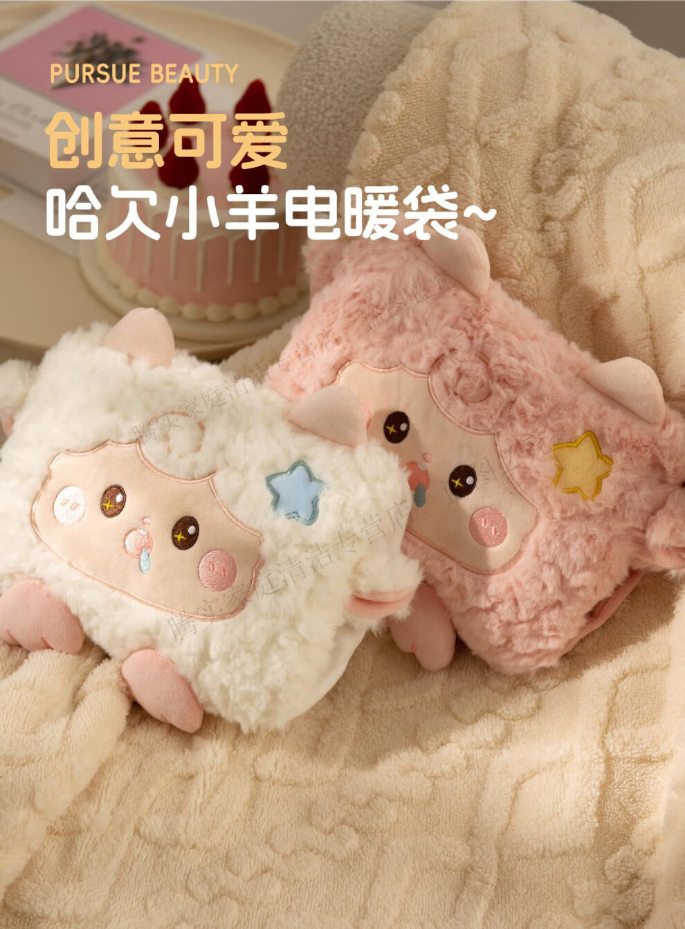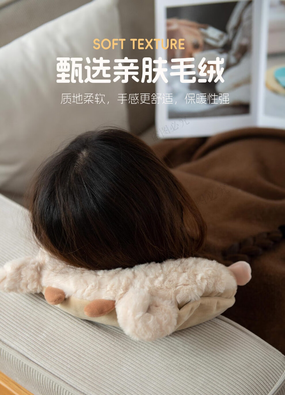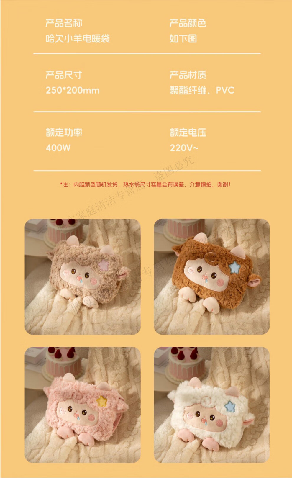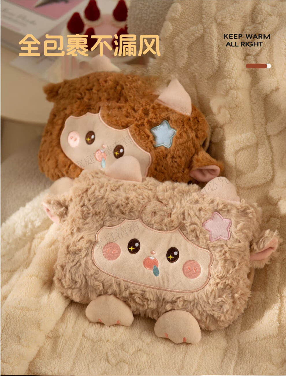 南极人电热水袋充电防爆热敷暖宫插电毛绒可爱热宝暖水袋暖宝宝送女友 卡其小羊可拆洗智能防爆