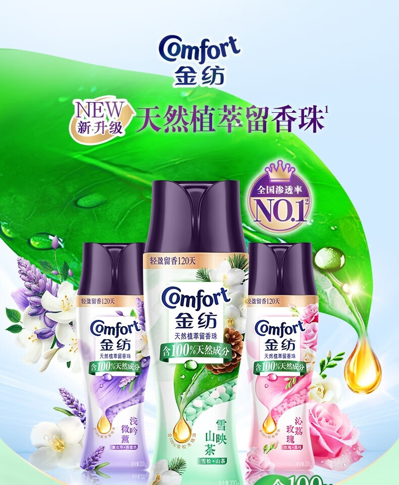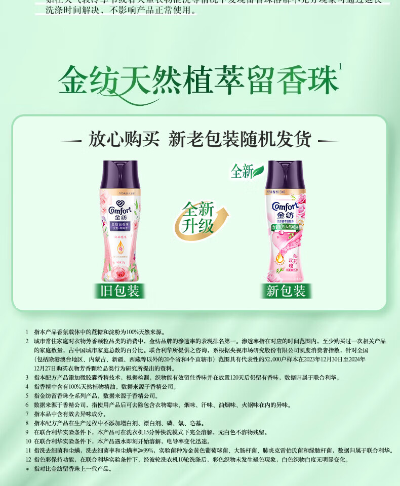 金纺留香珠护衣持久留香99%除菌除螨旅行装洗衣液伴侣香水护理剂男女 【经典薰衣草】柔顺剂400g*1袋