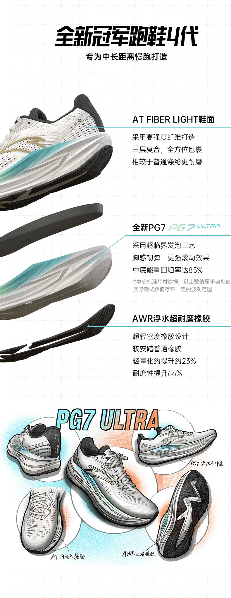 安踏PG7丨冠军跑鞋4代跑步鞋男鞋缓震回弹跑鞋运动鞋112535562 【冠军4PLUS】净瓷白-4 42 (男8.5)