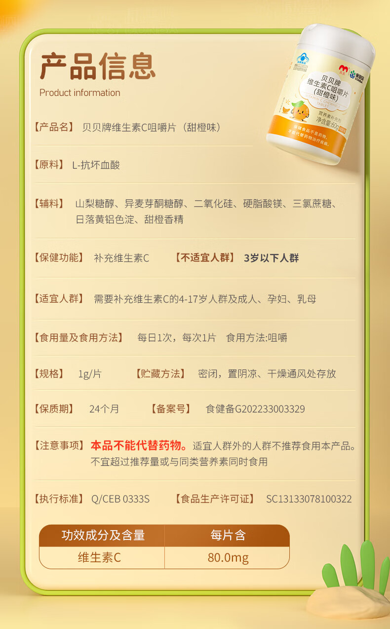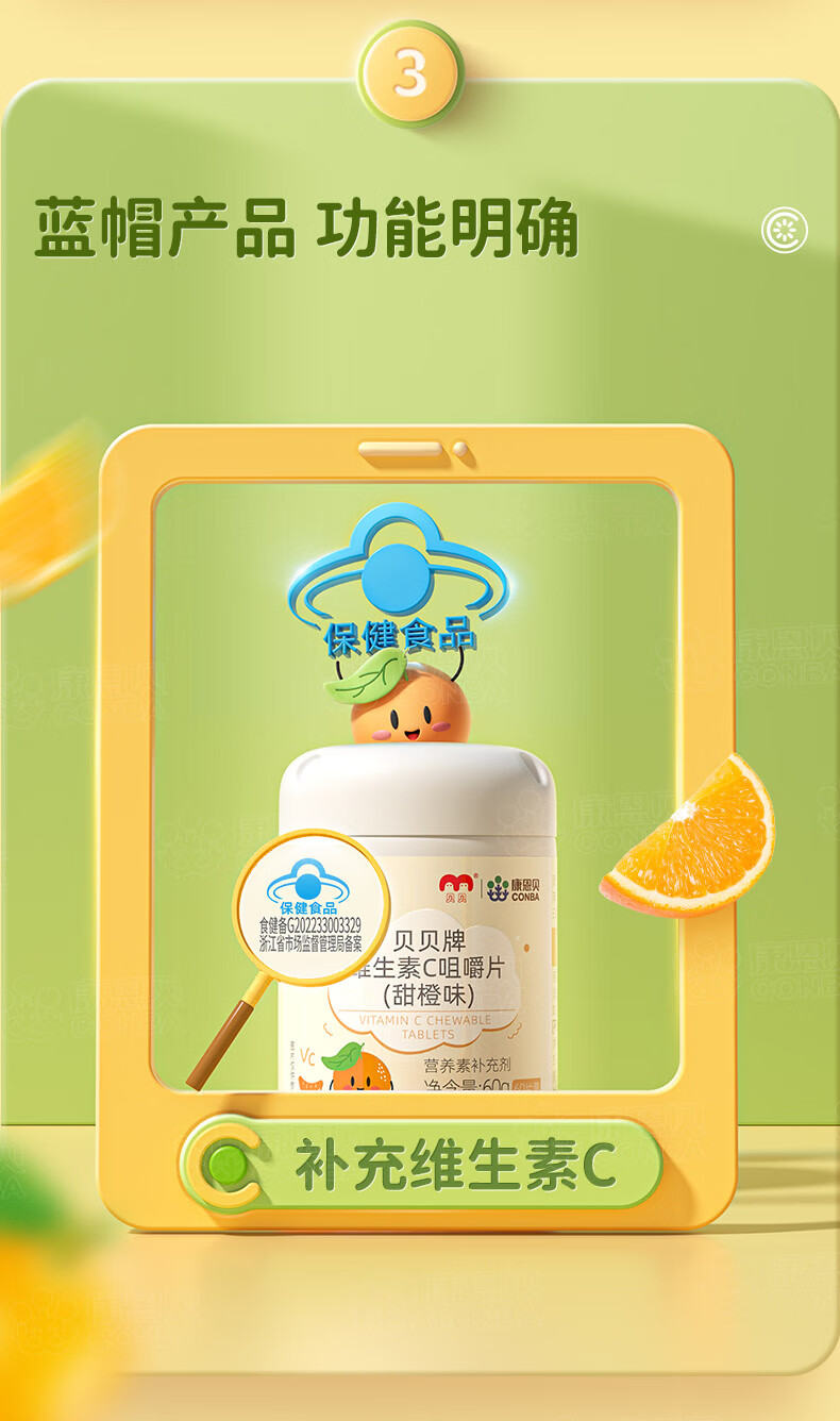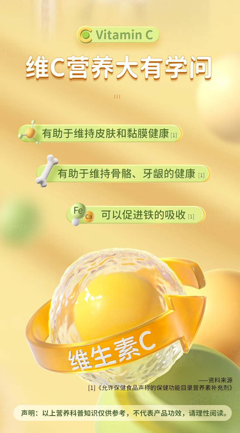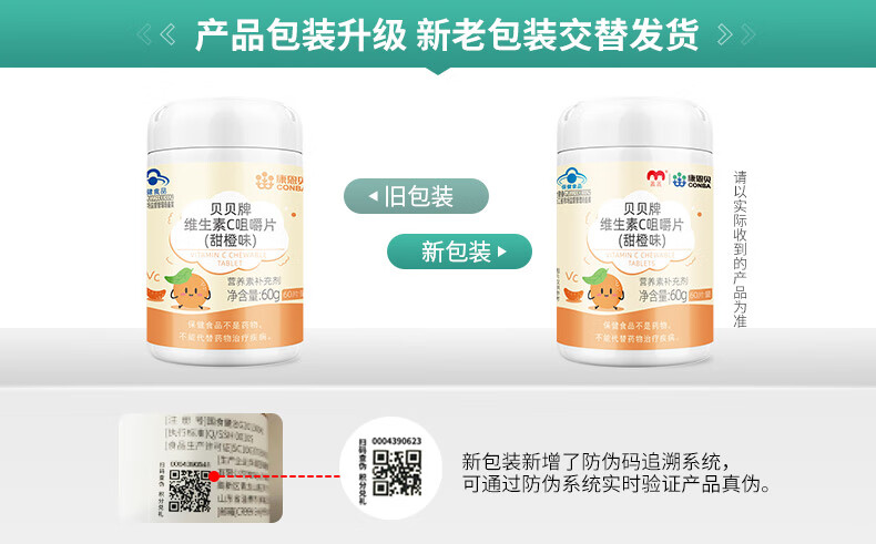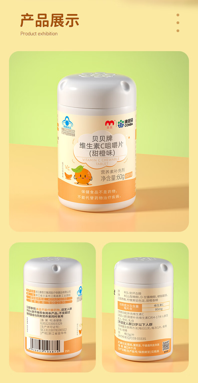 康恩贝维生素c咀嚼片60片维cvc片咀嚼片儿童学生4岁-17岁及成人孕妇乳母