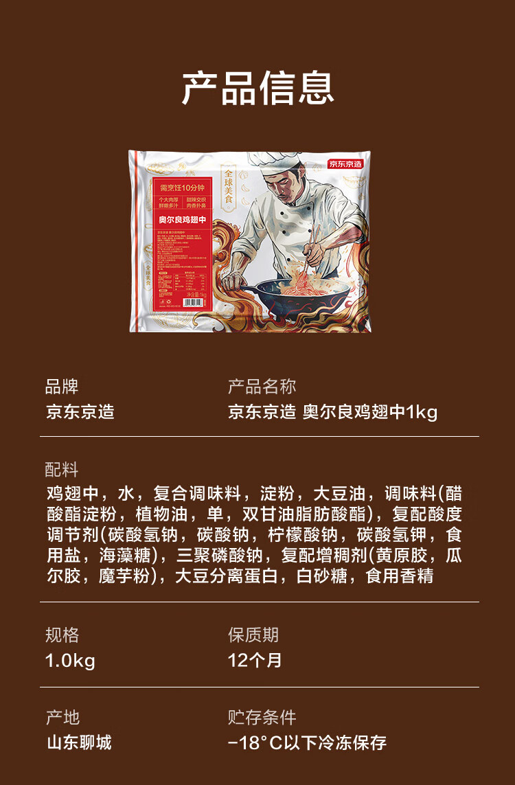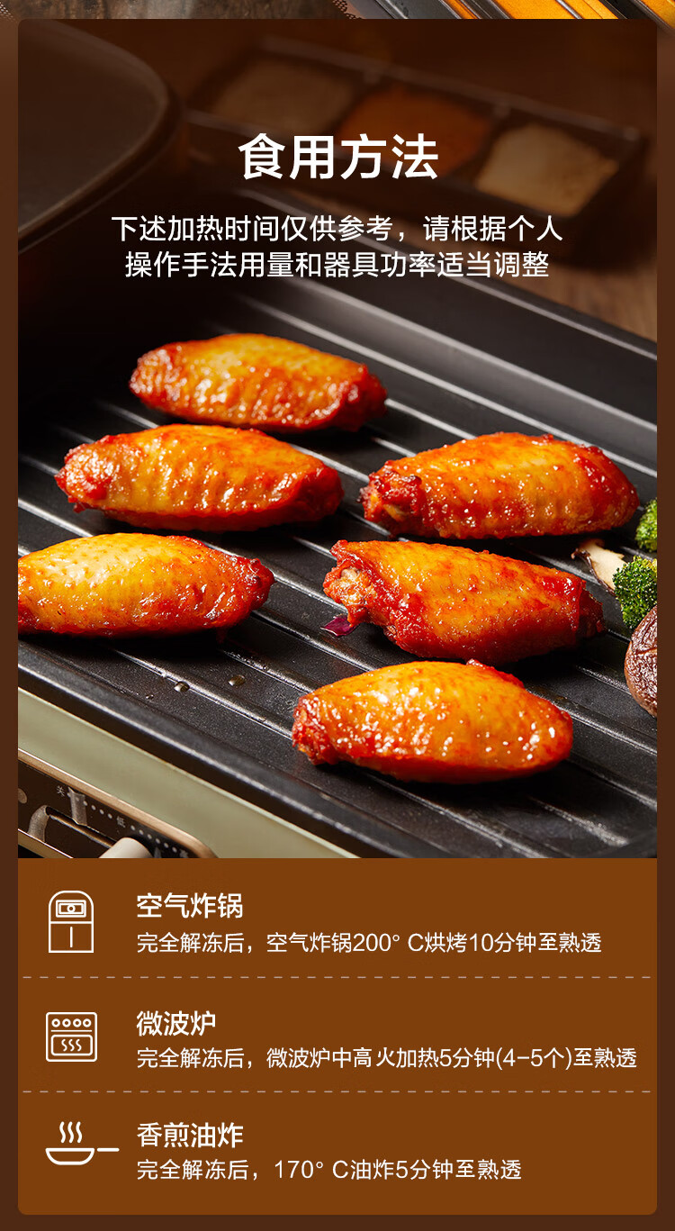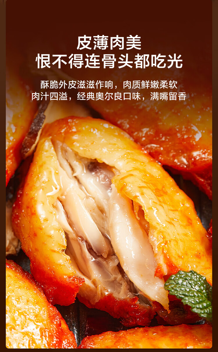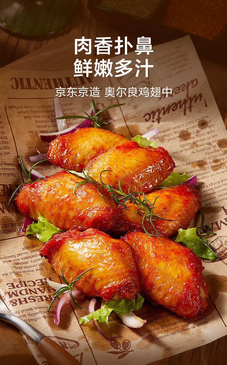 京东京造奥尔良鸡翅中1kg 烧烤油炸鸡翅膀冷冻半成品生鲜空气炸锅鸡肉