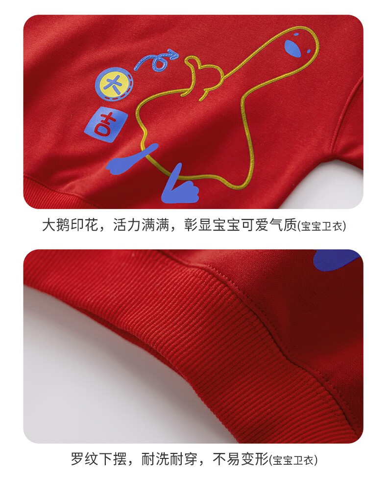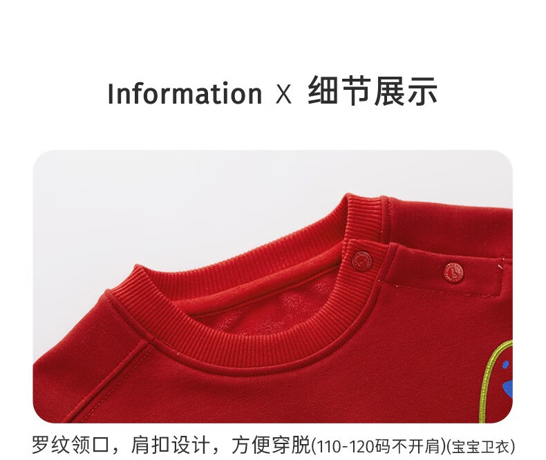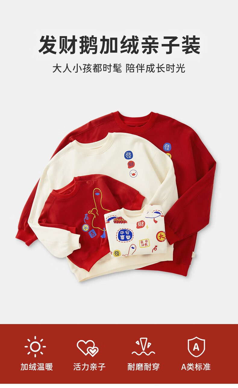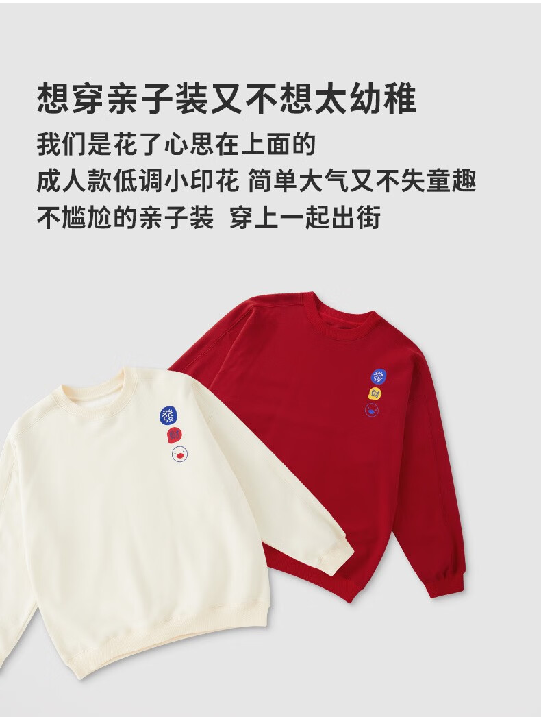 博睿恩(Pureborn)【亲子装】宝宝加绒卫衣秋冬一家三口男孩拜年服儿童新年衣服 米白-卫衣 100