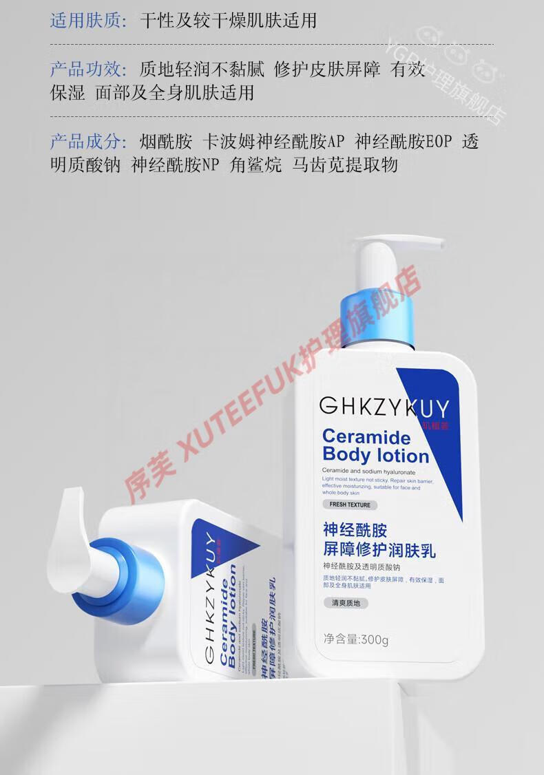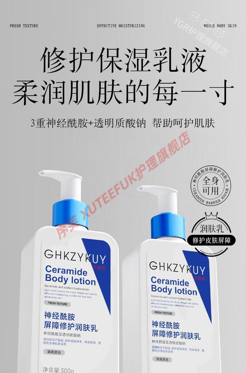 序芙 XUTEEFUK神经酰胺屏障修护润肤乳提亮肤色补水滋润身体保湿防干裂 300m 神经酰胺屏障修护润肤乳3瓶
